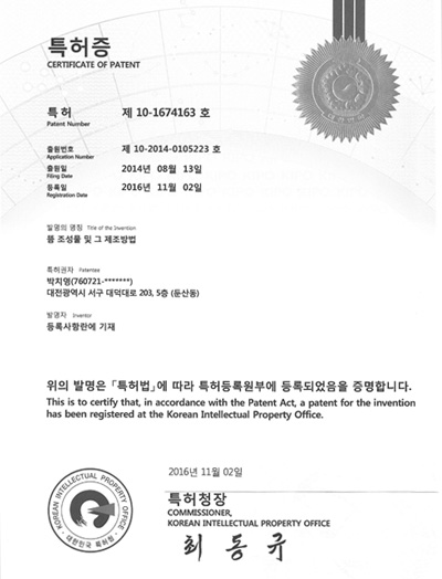 사마귀 전용 “뜸” 특허등록 제10-1674163호