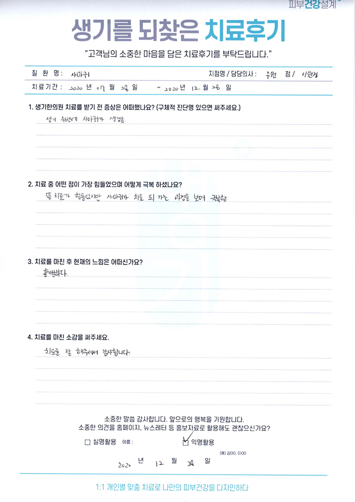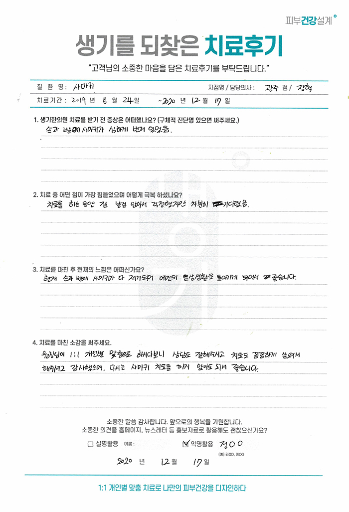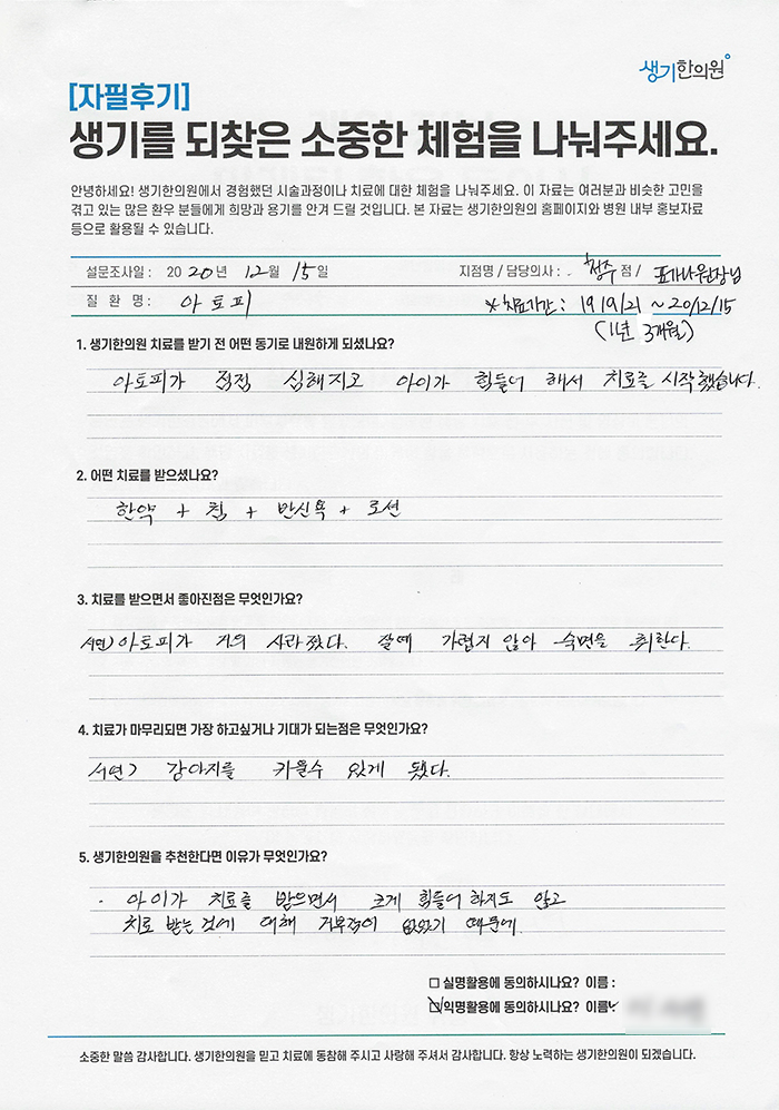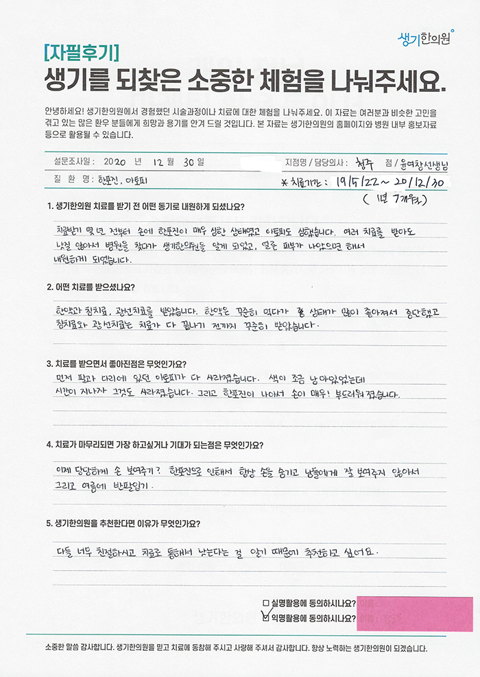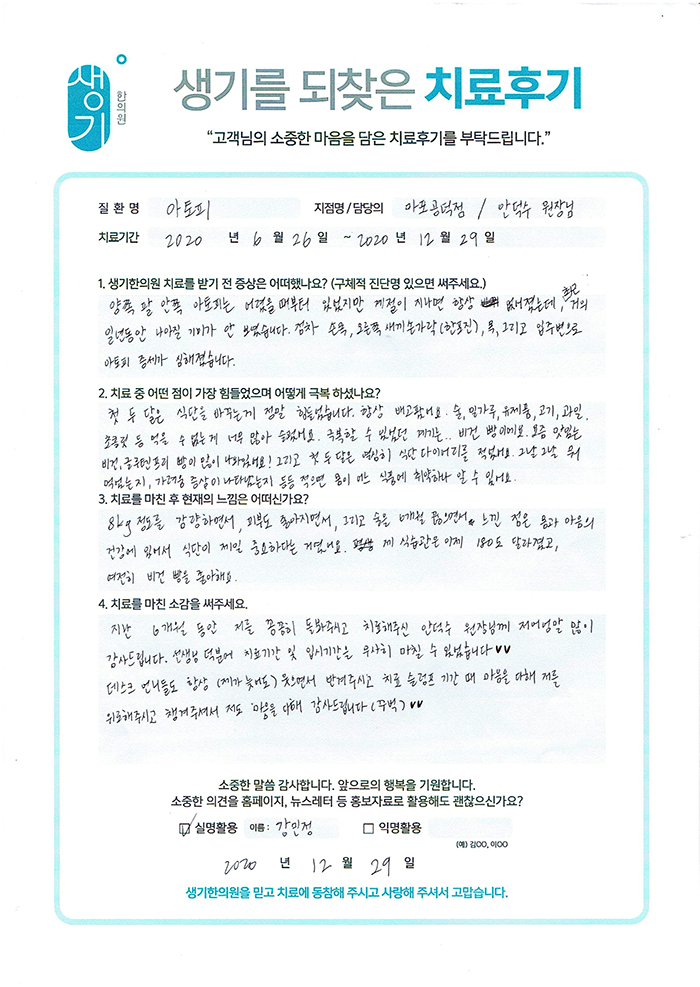 생기한의원과 함께하신 생생한 자필 및 영상 후기를 소개합니다.