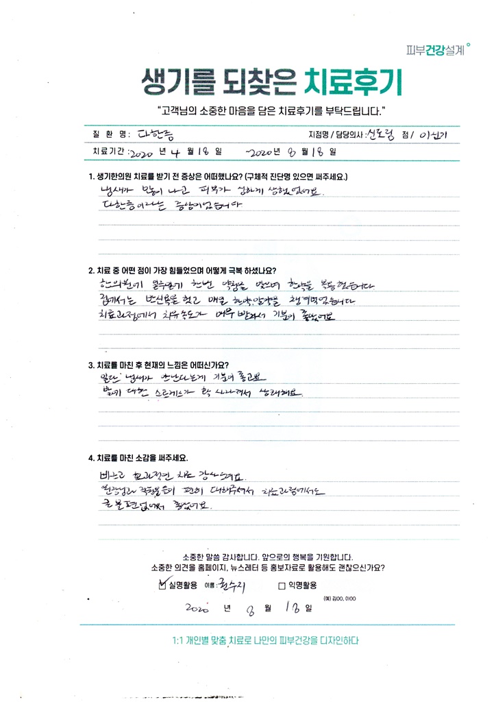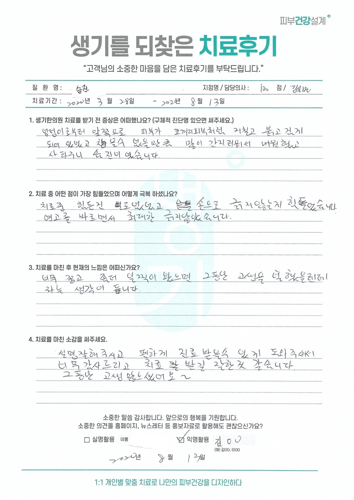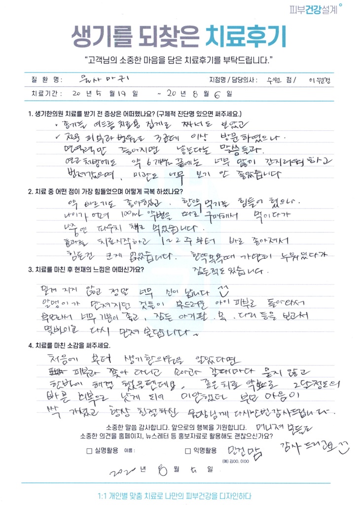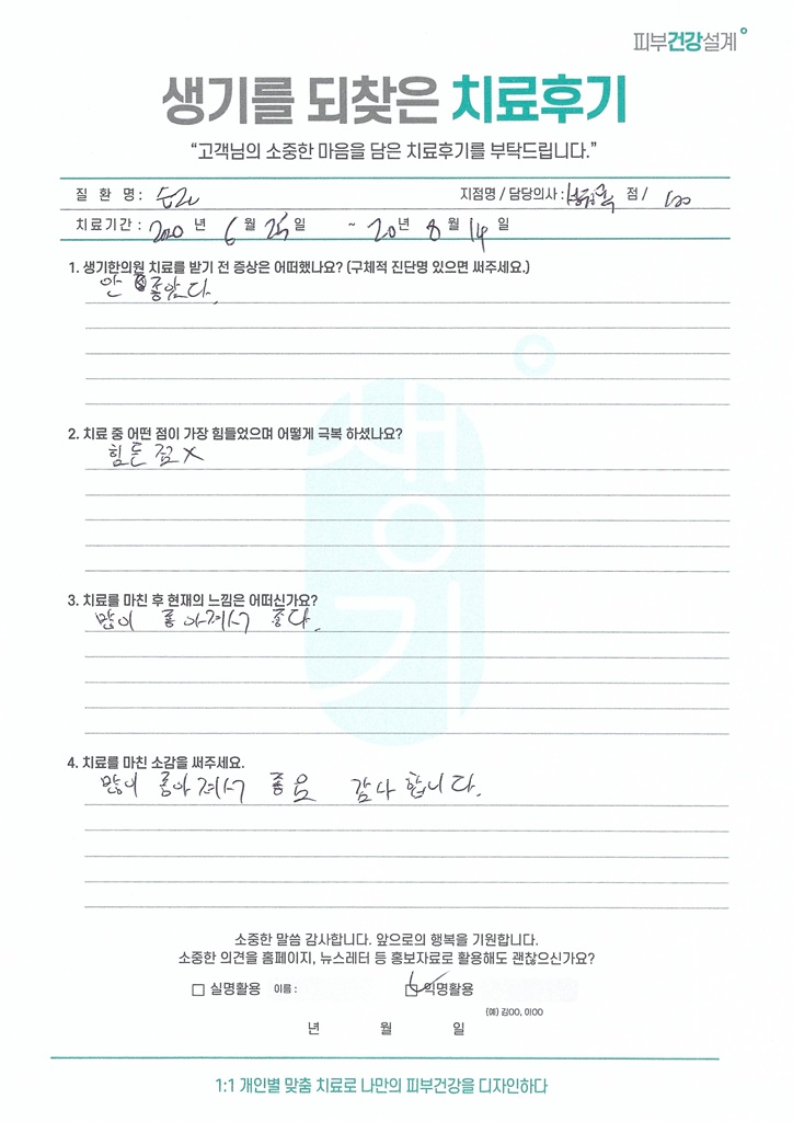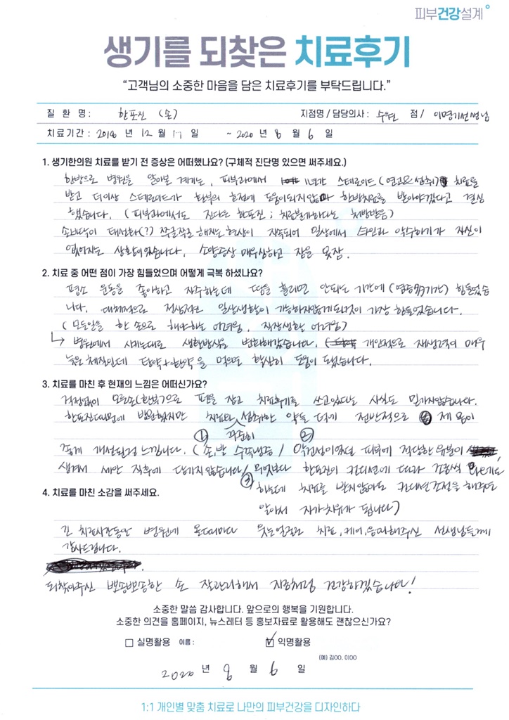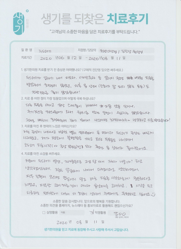 생기한의원과 함께하신 생생한 자필 및 영상 후기를 소개합니다.