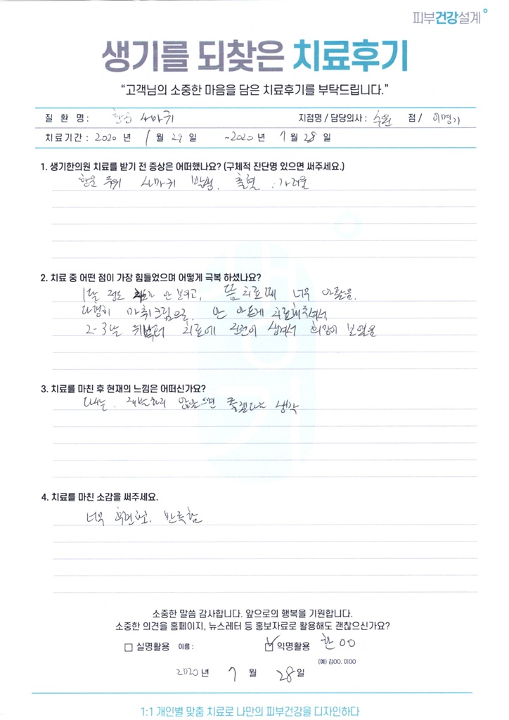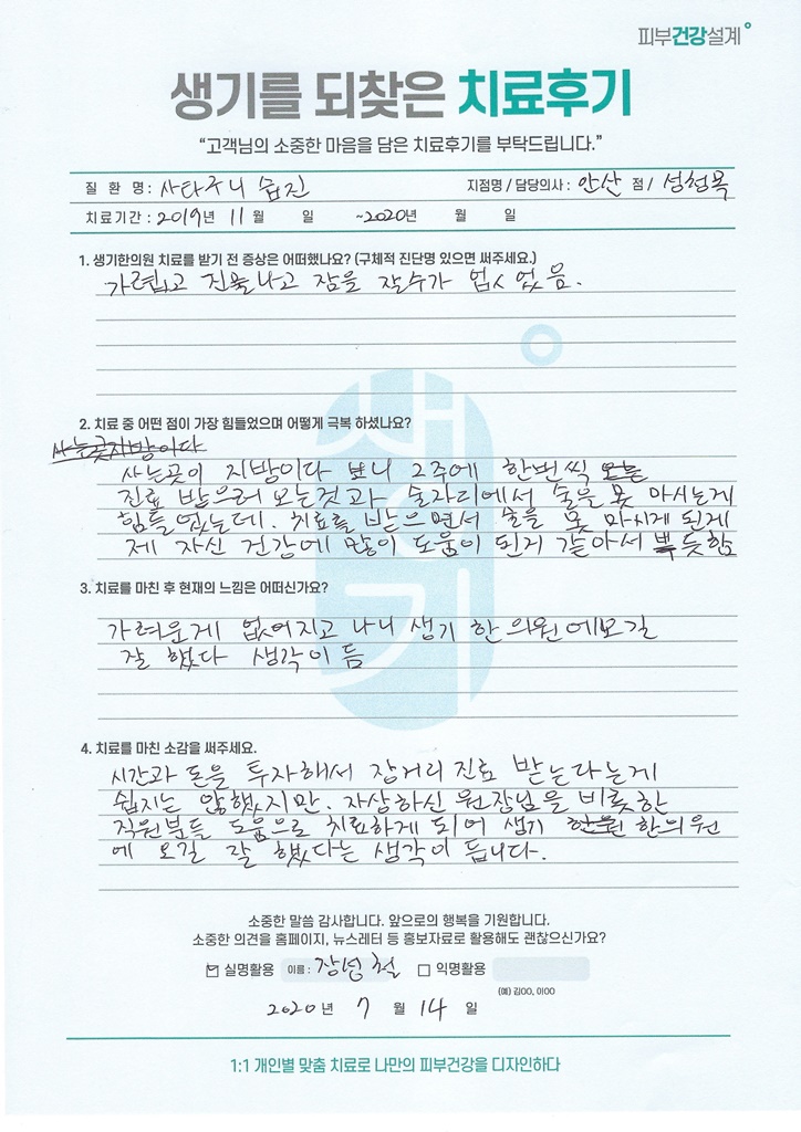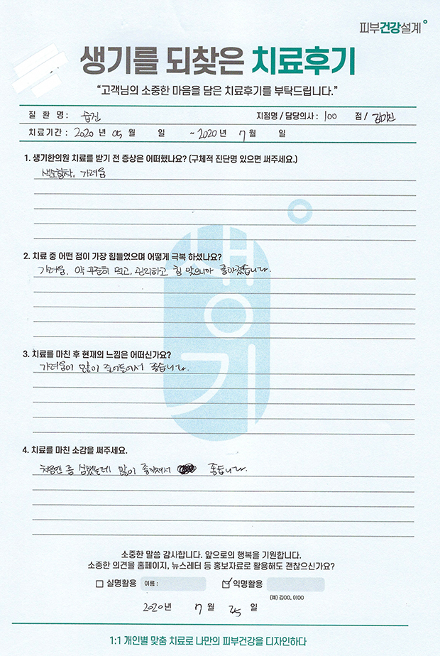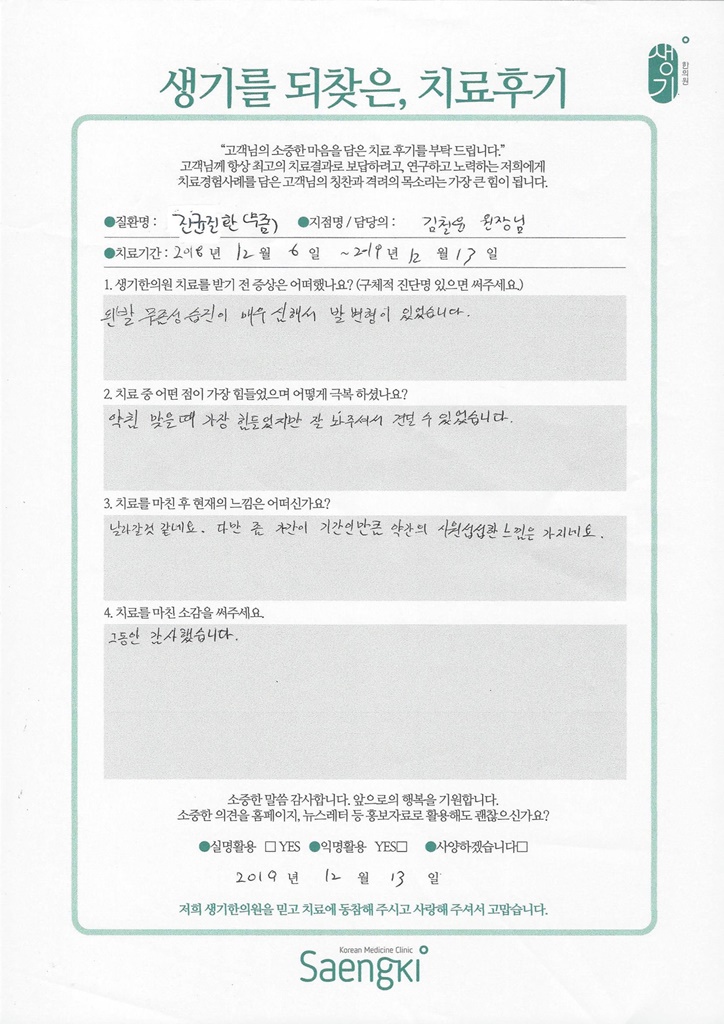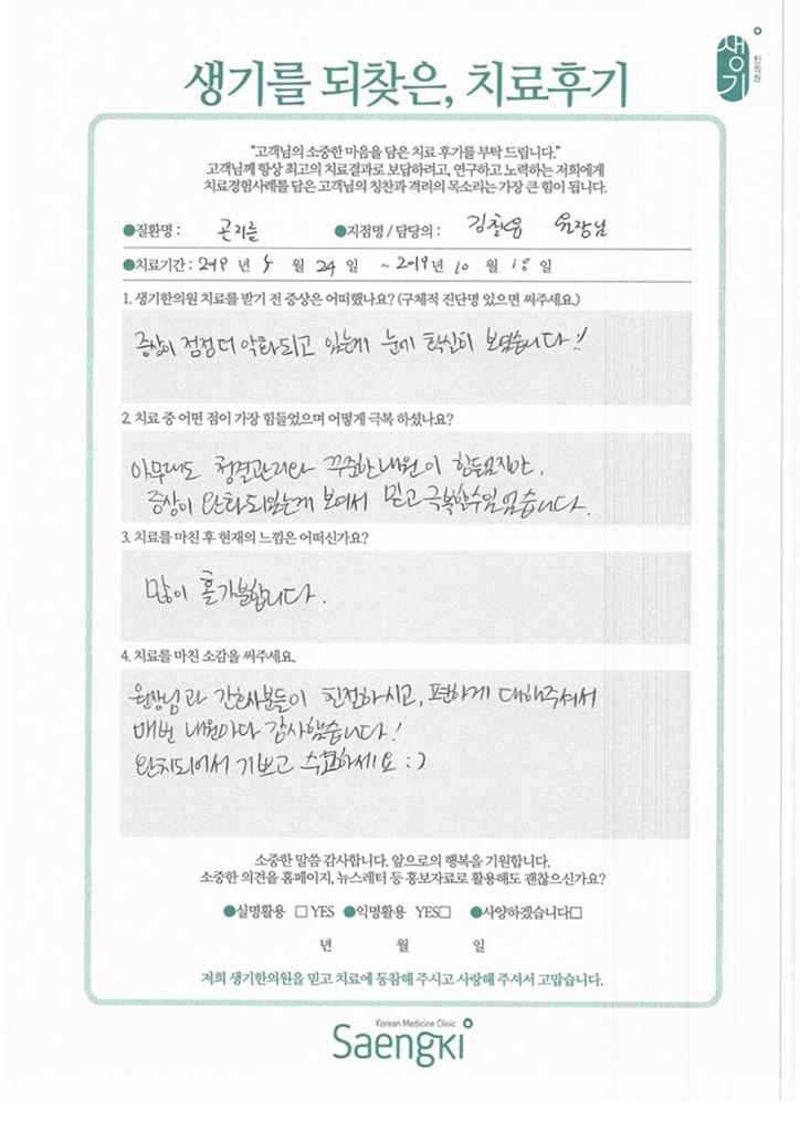 생기한의원과 함께하신 생생한 자필 및 영상 후기를 소개합니다.