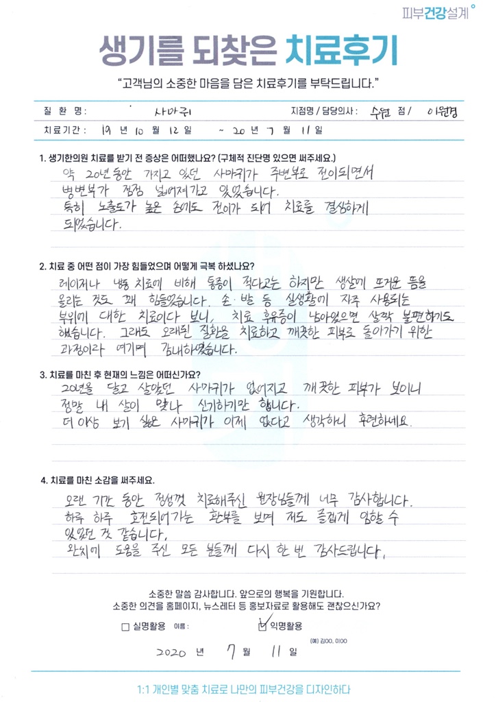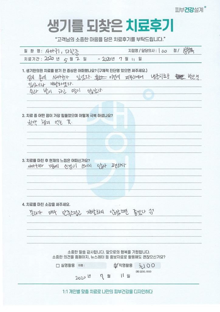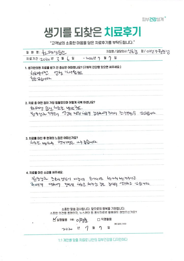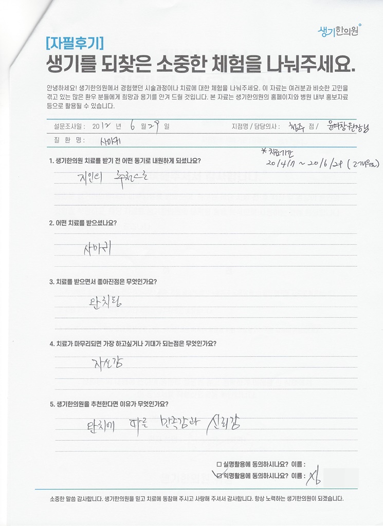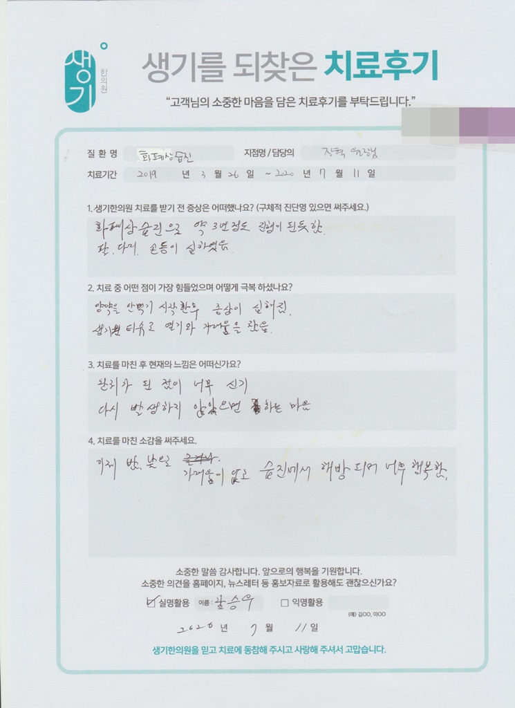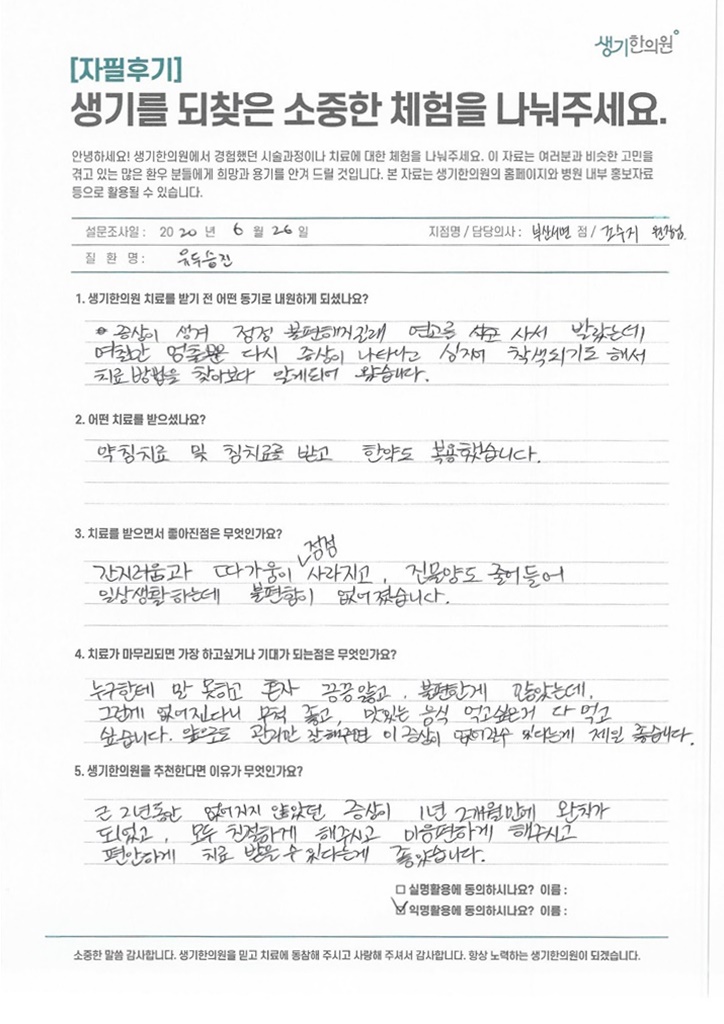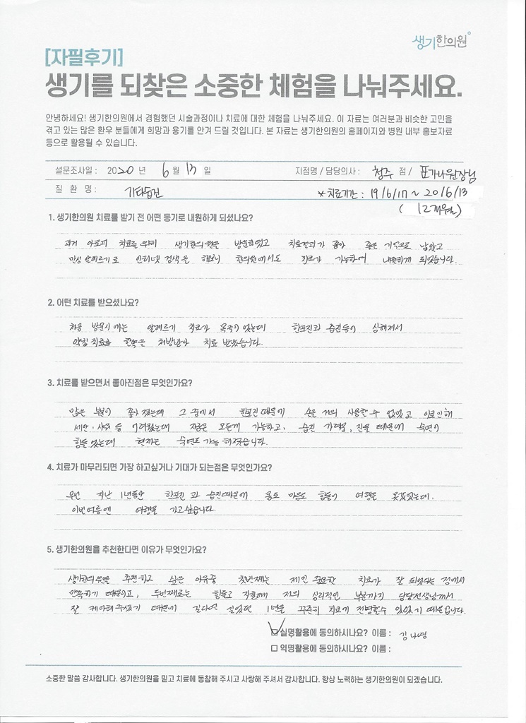 생기한의원과 함께하신 생생한 자필 및 영상 후기를 소개합니다.