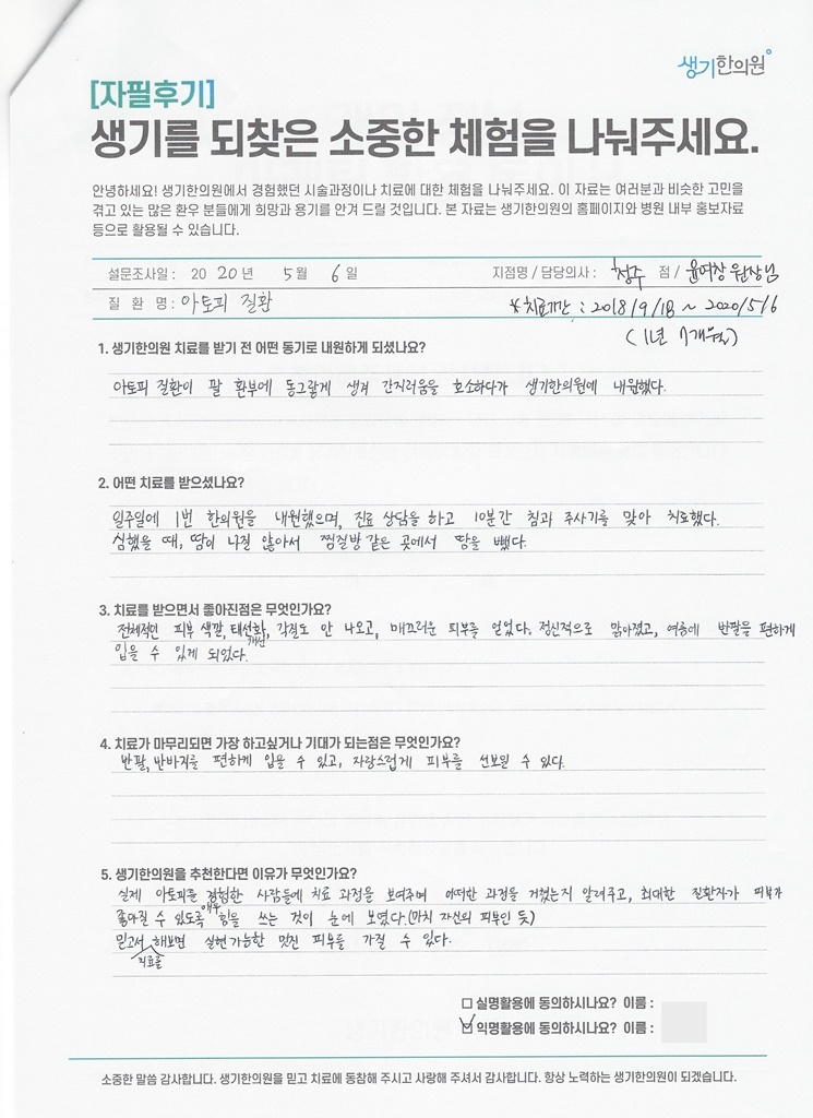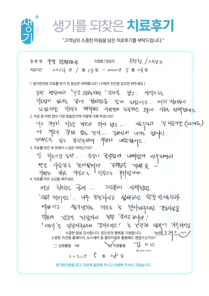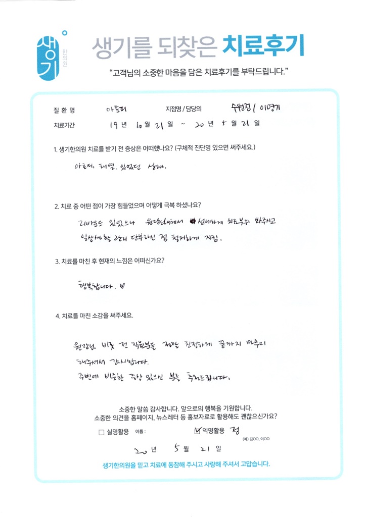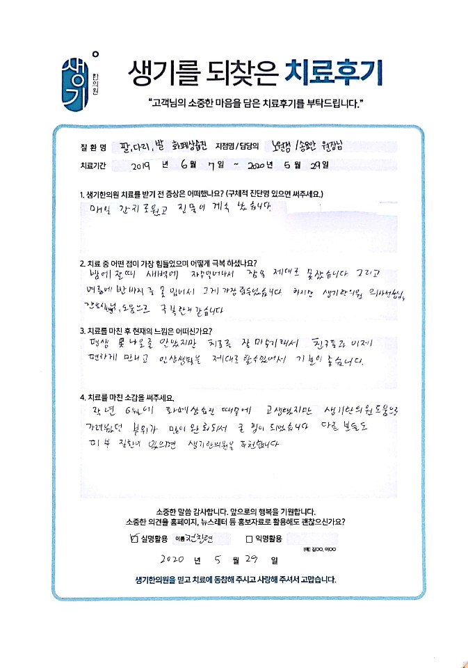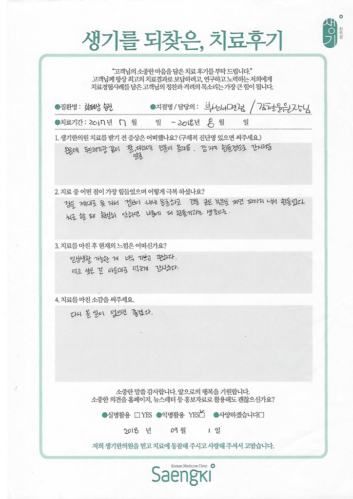 생기한의원과 함께하신 생생한 자필 및 영상 후기를 소개합니다.