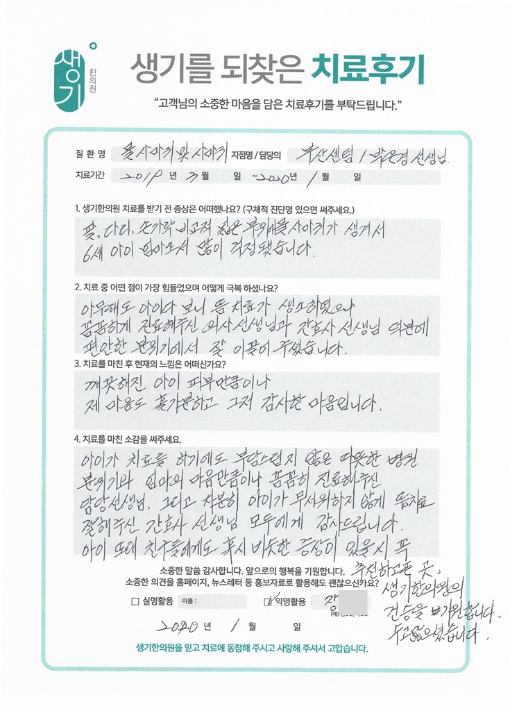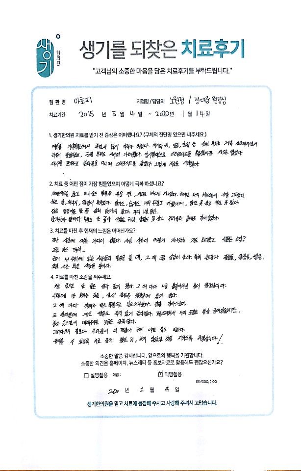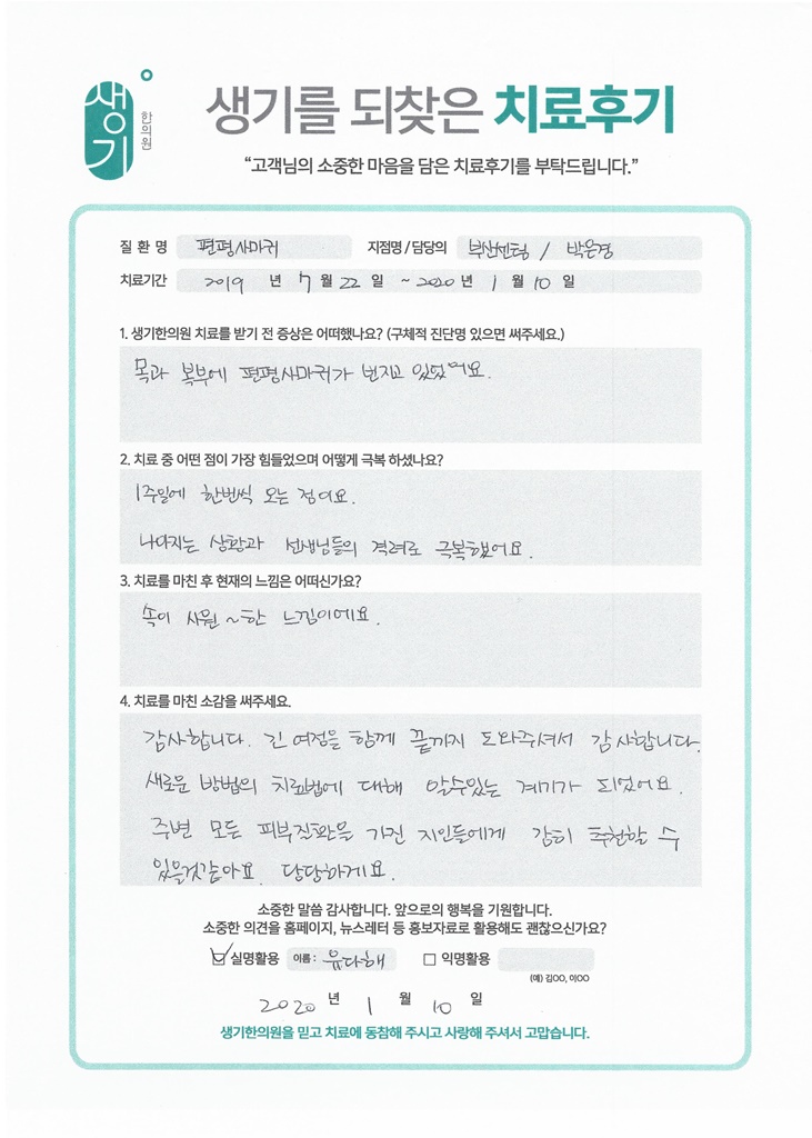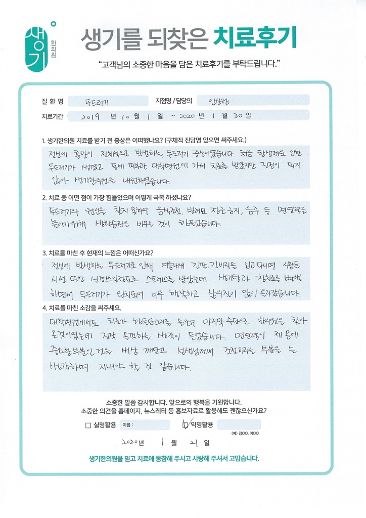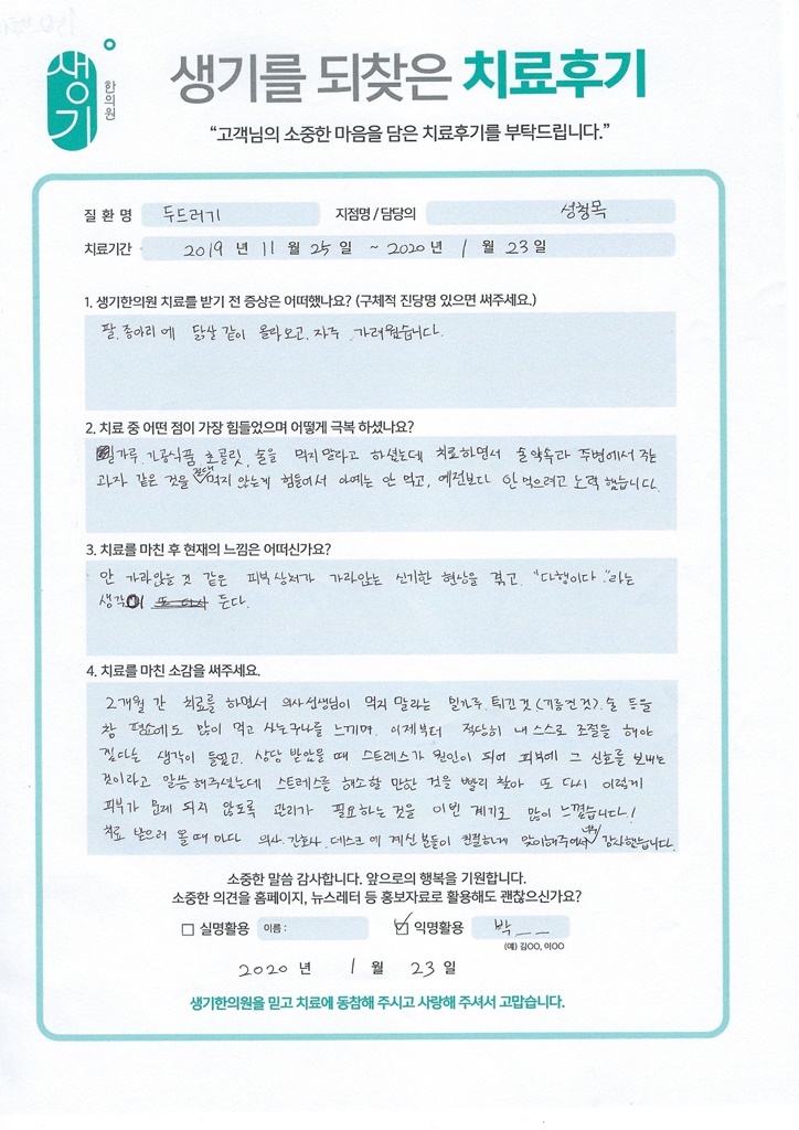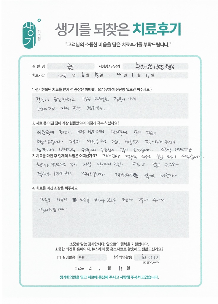 생기한의원과 함께하신 생생한 자필 및 영상 후기를 소개합니다.