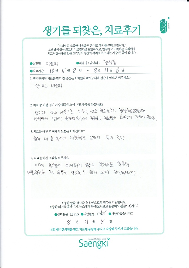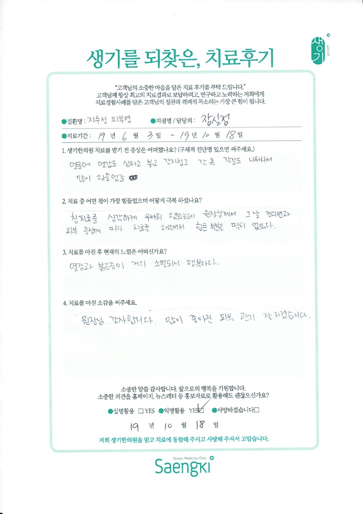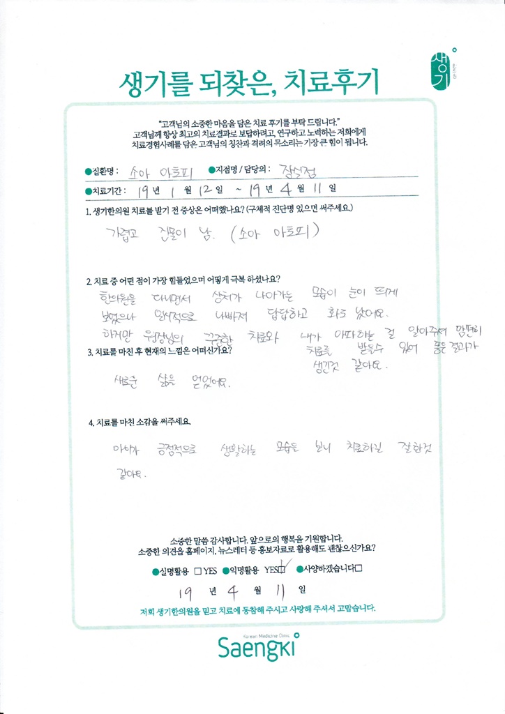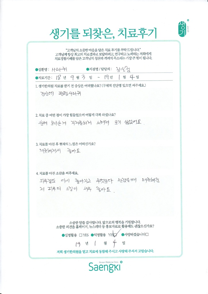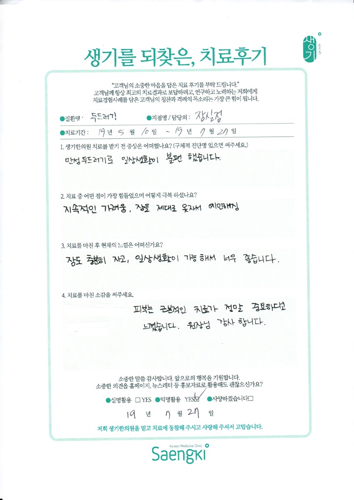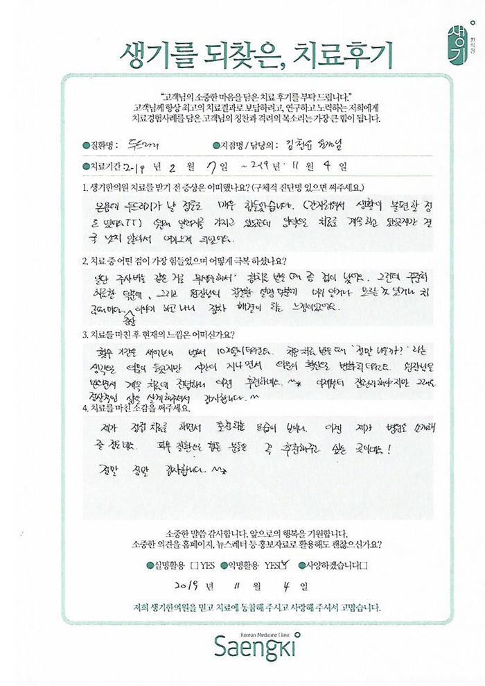 생기한의원과 함께하신 생생한 자필 및 영상 후기를 소개합니다.