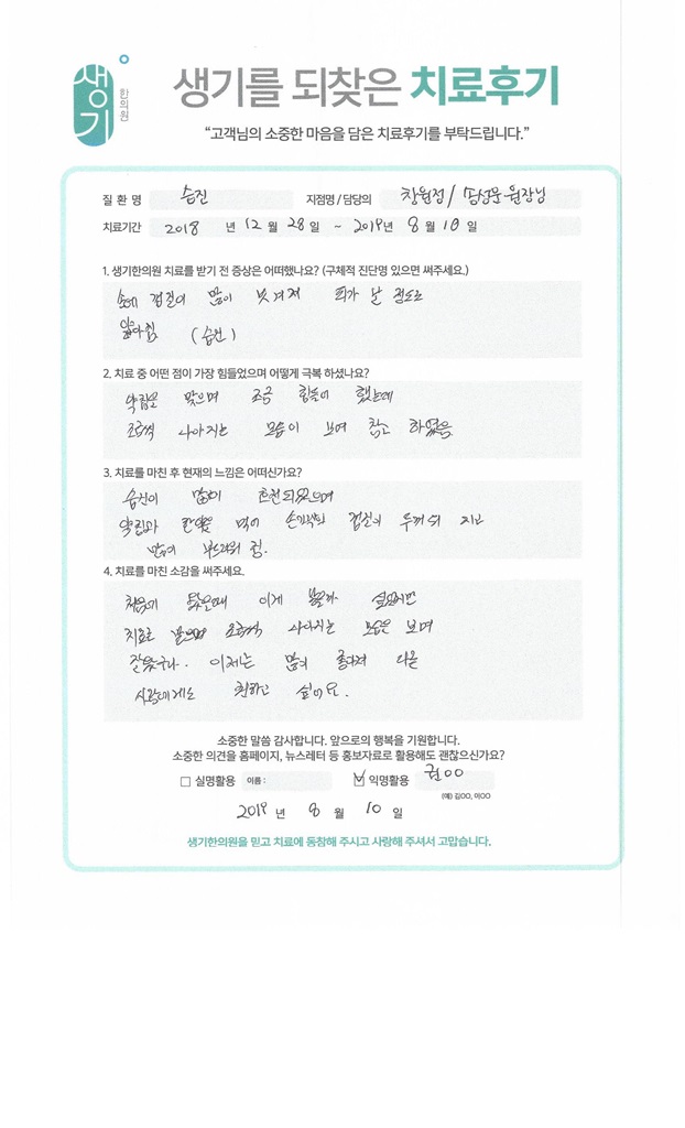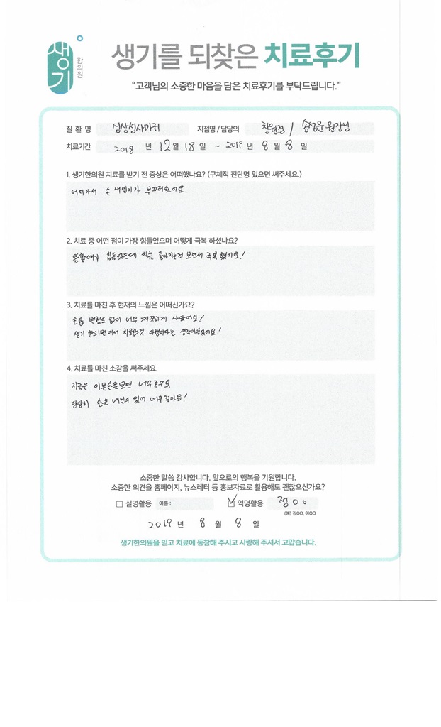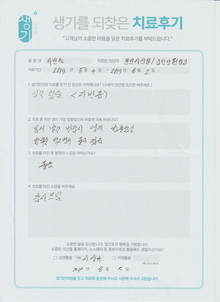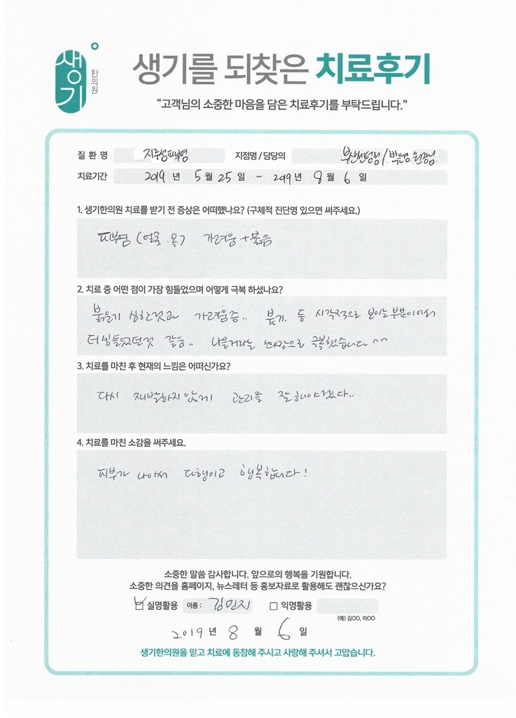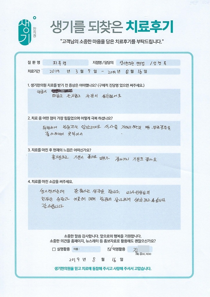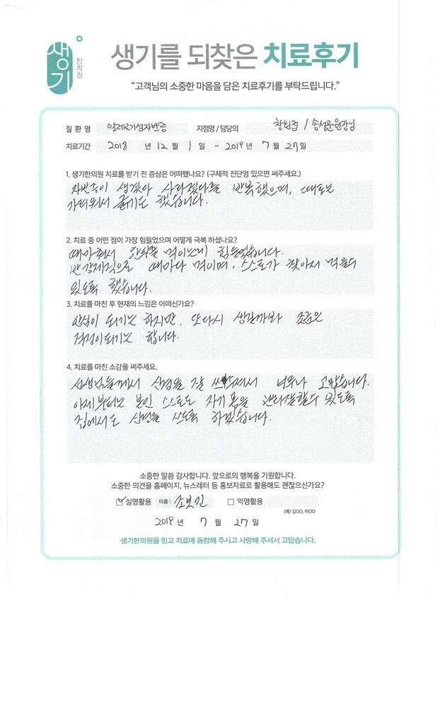 생기한의원과 함께하신 생생한 자필 및 영상 후기를 소개합니다.