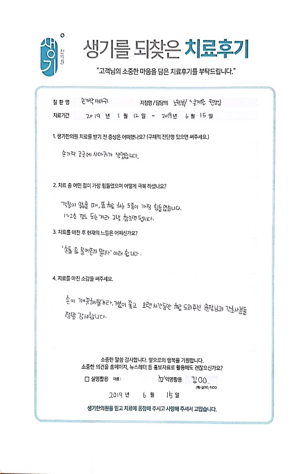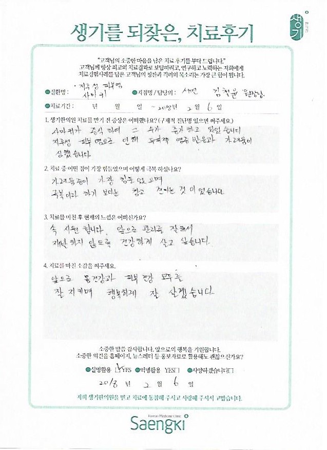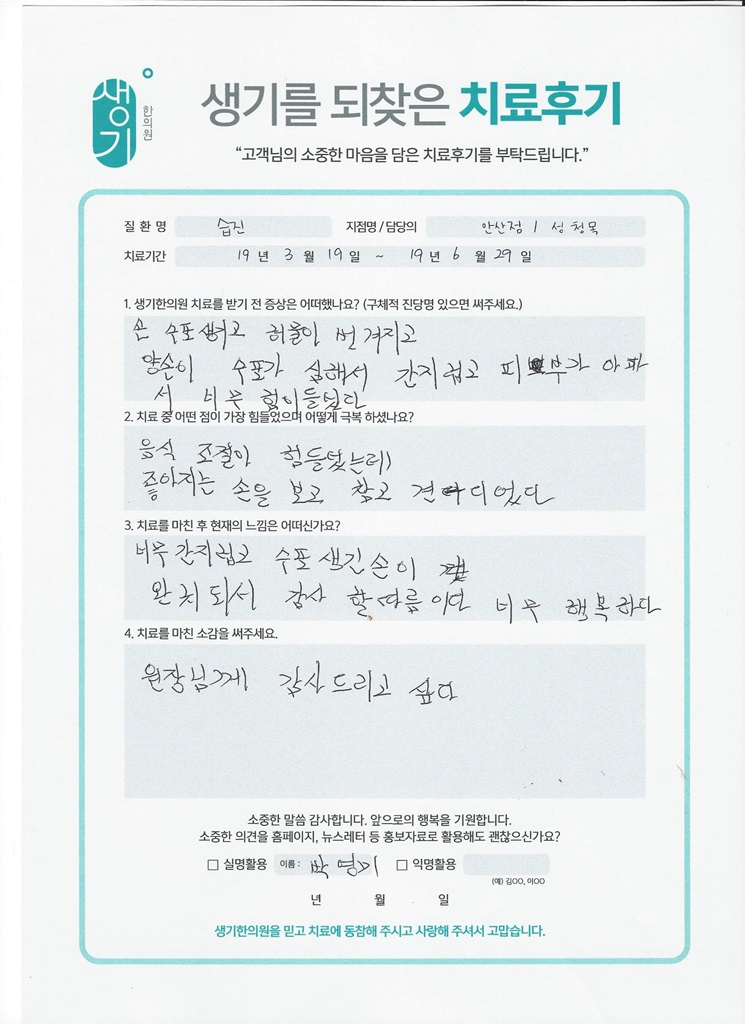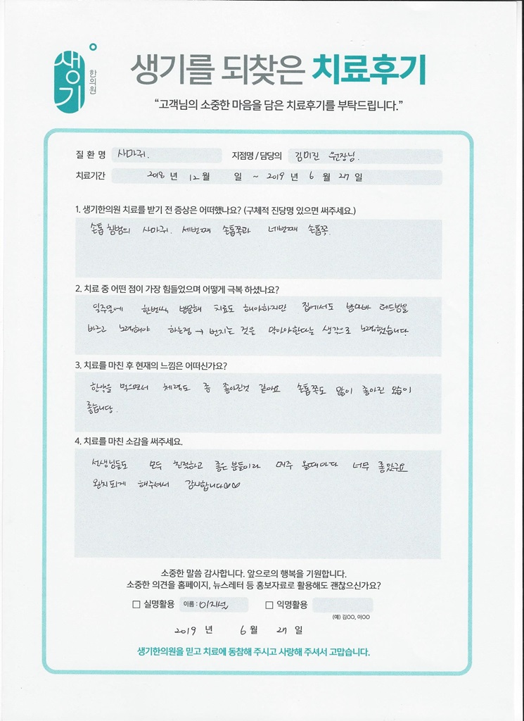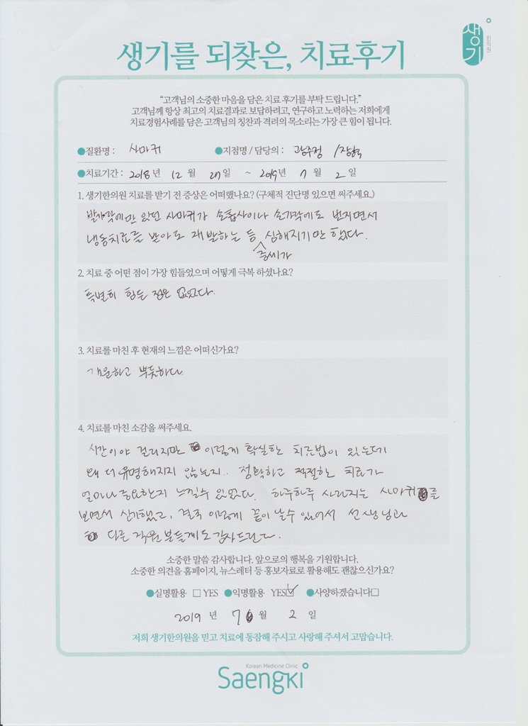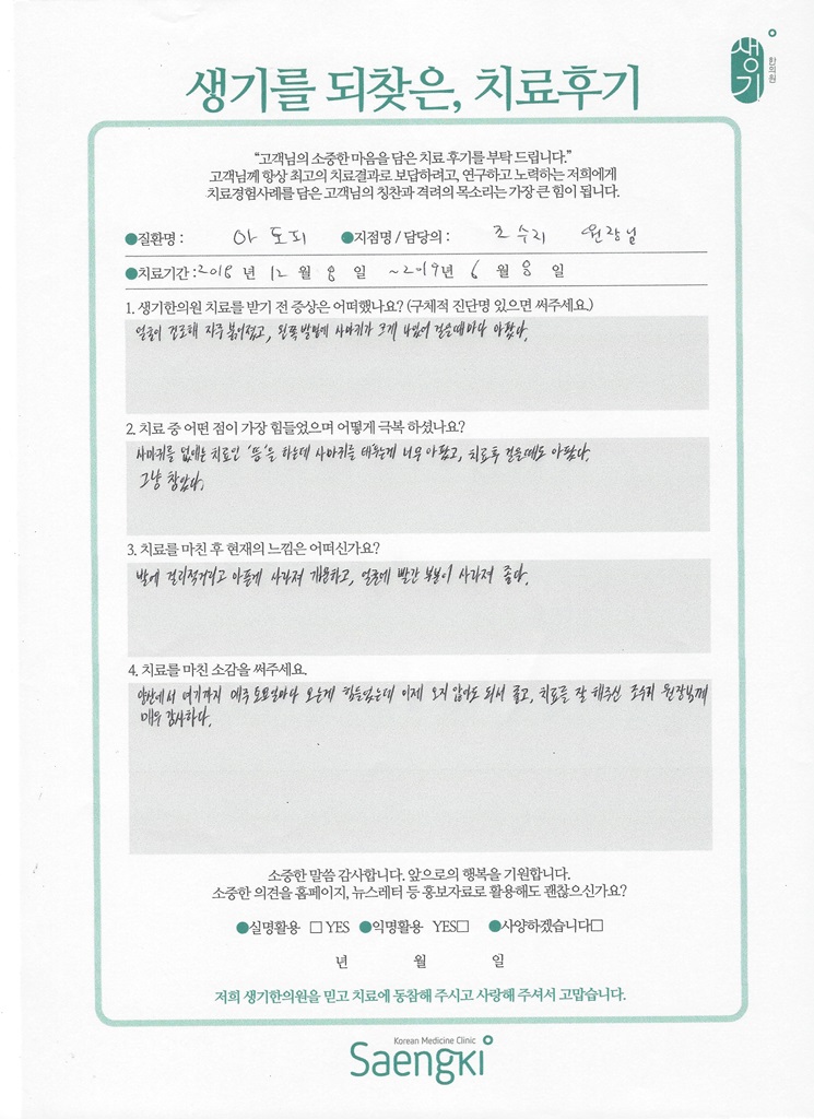 생기한의원과 함께하신 생생한 자필 및 영상 후기를 소개합니다.