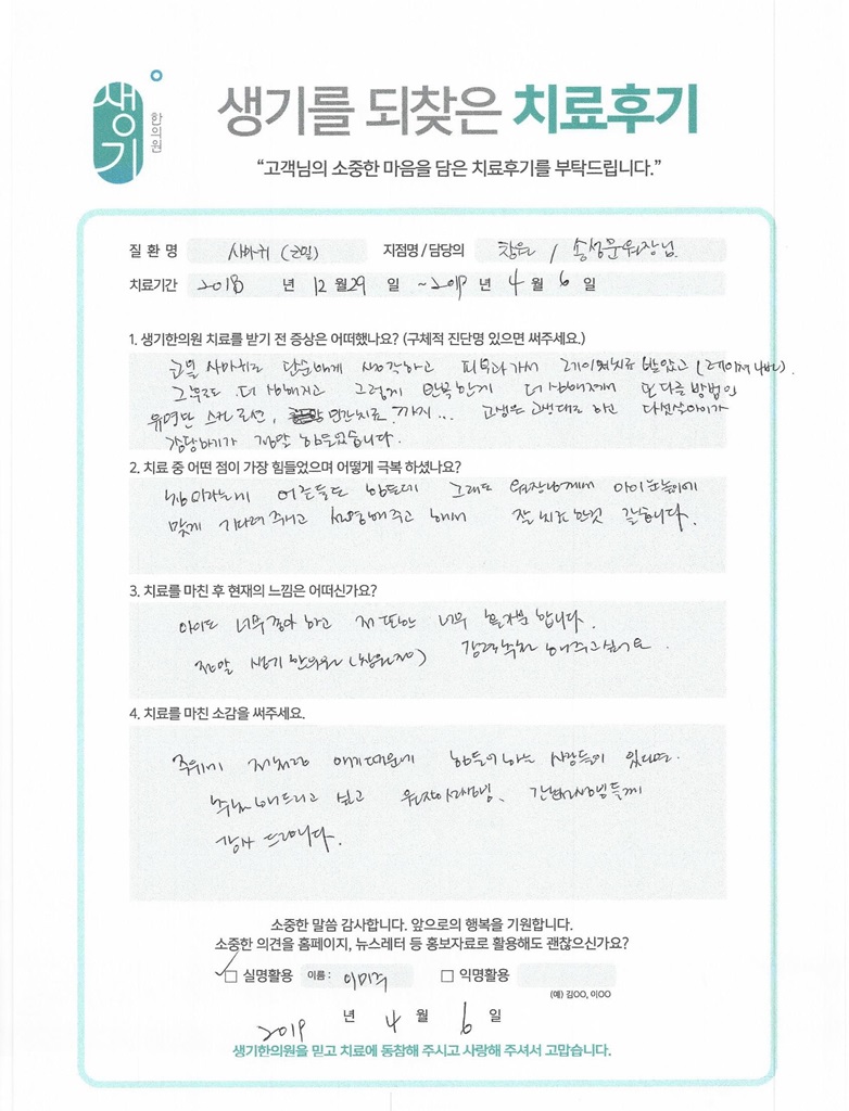 생기한의원과 함께하신 생생한 자필 및 영상 후기를 소개합니다.