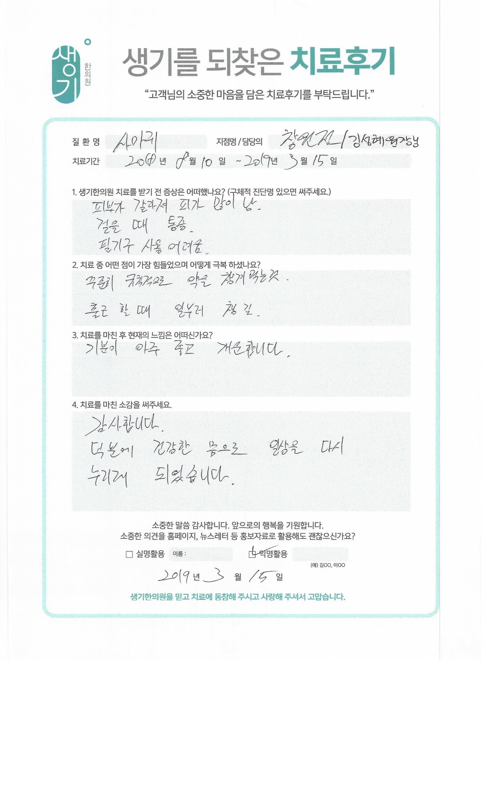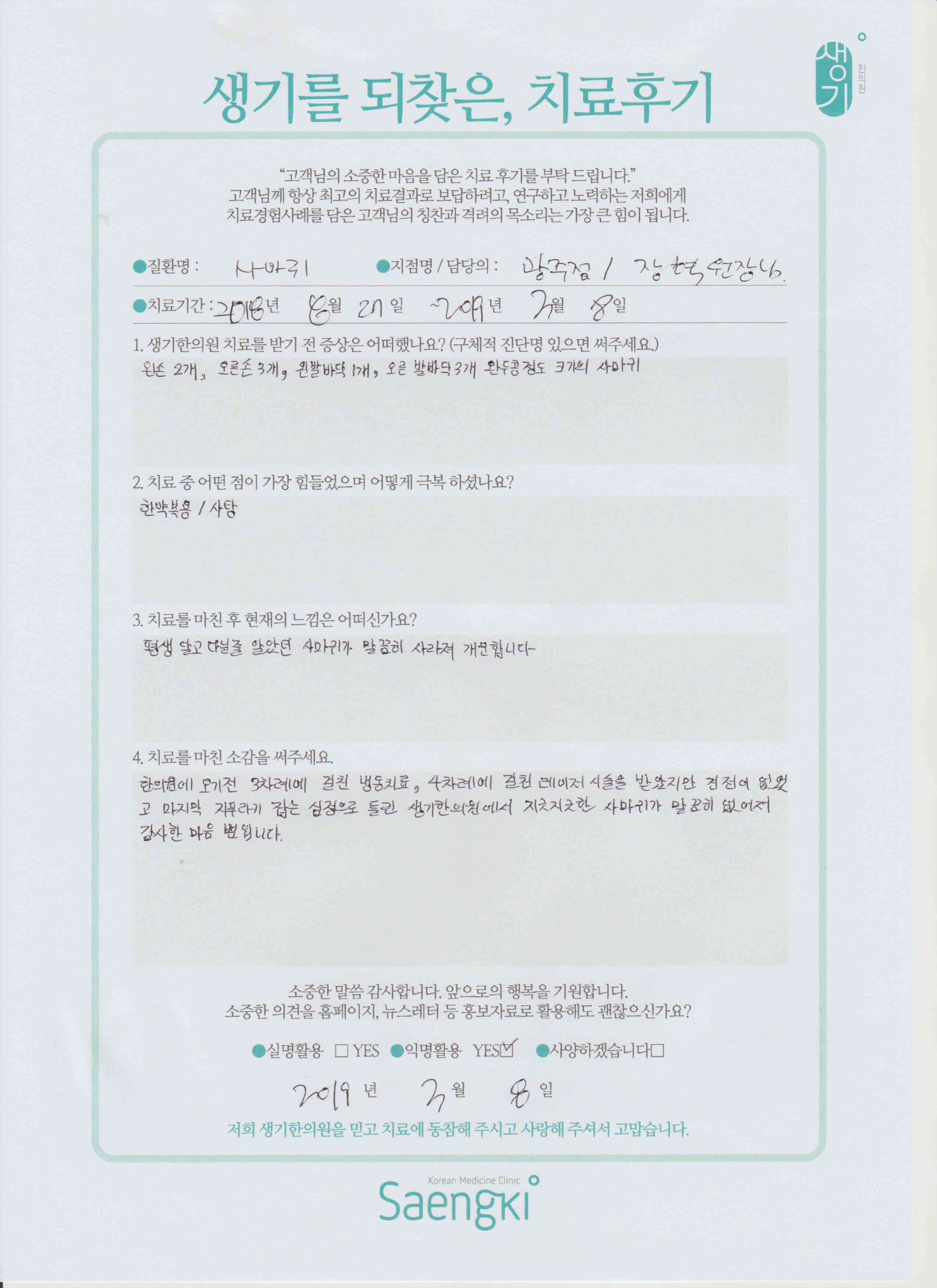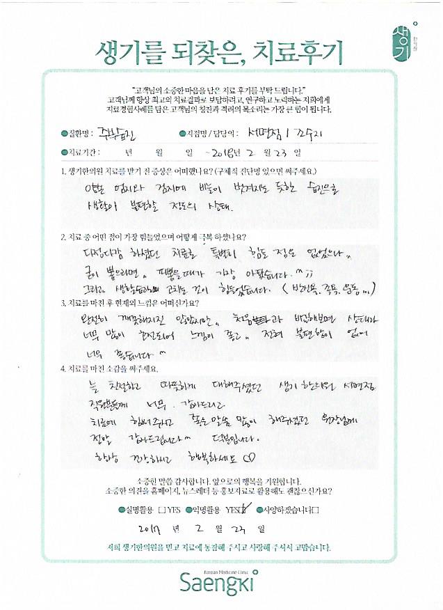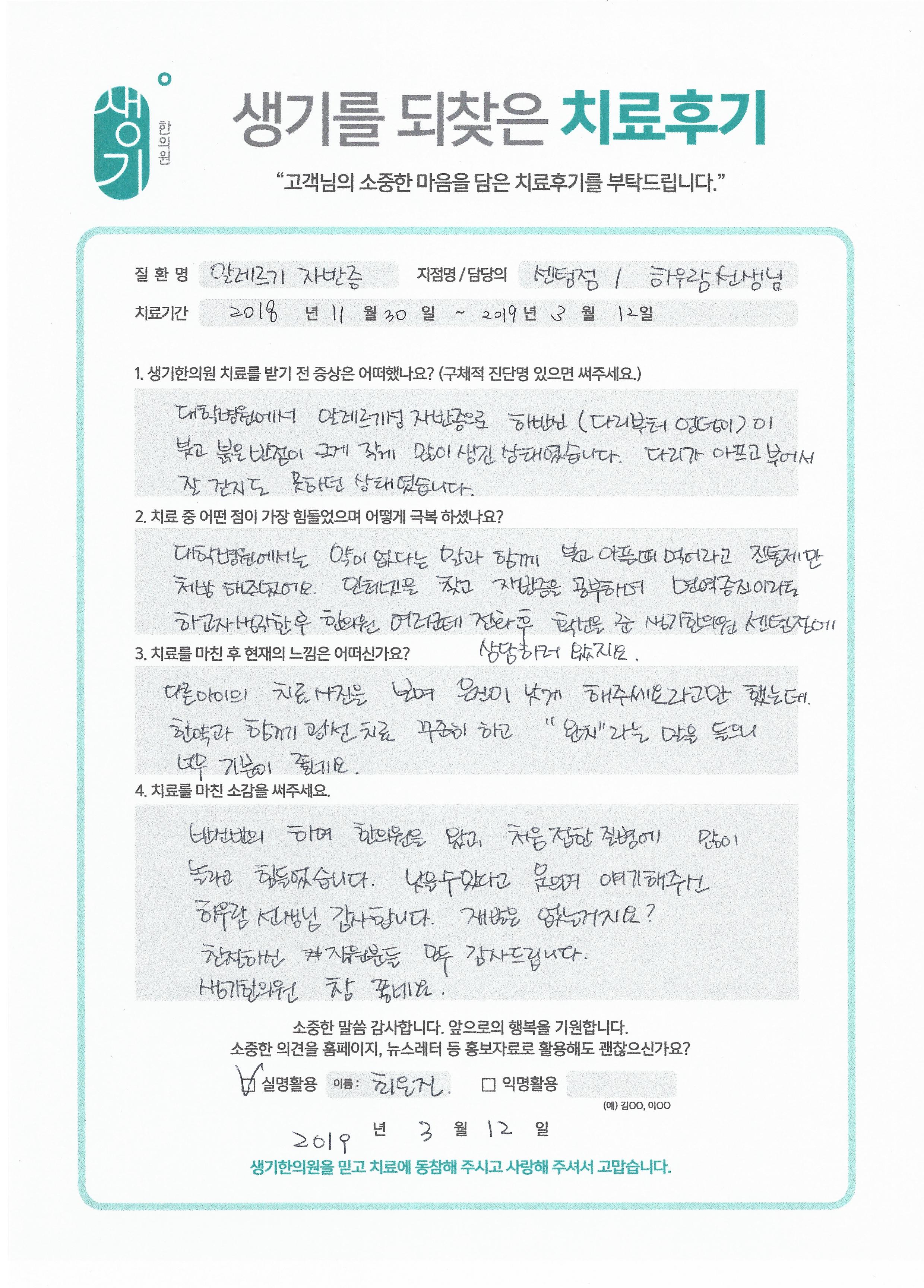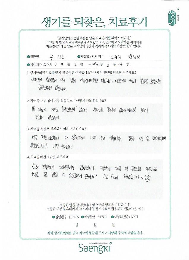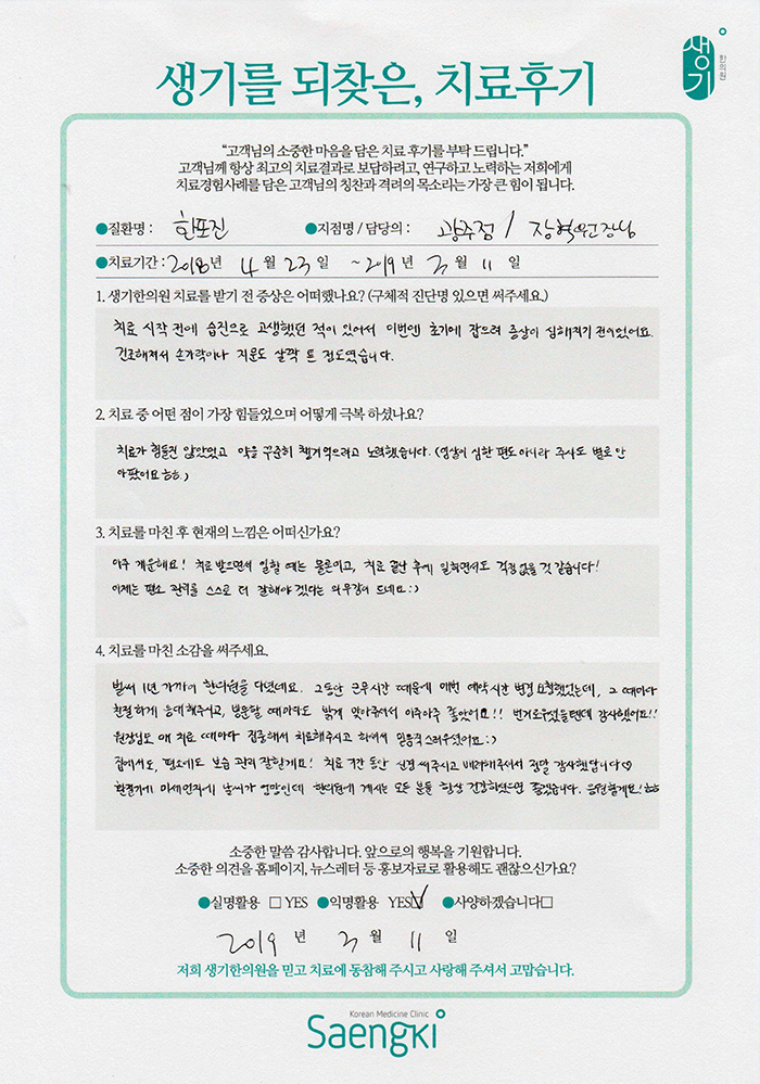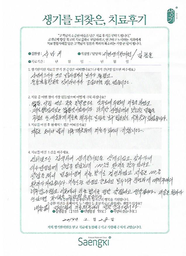 생기한의원과 함께하신 생생한 자필 및 영상 후기를 소개합니다.