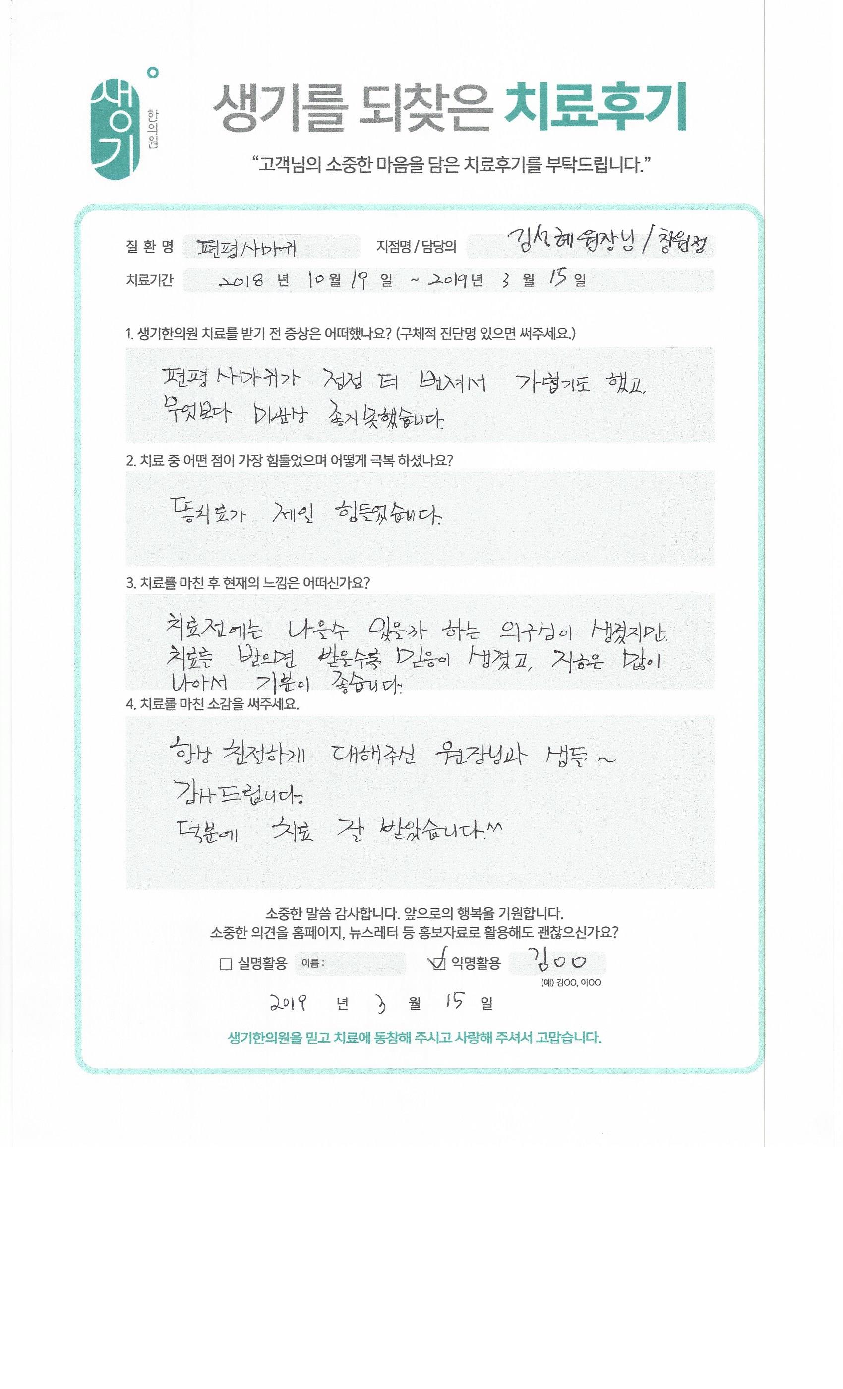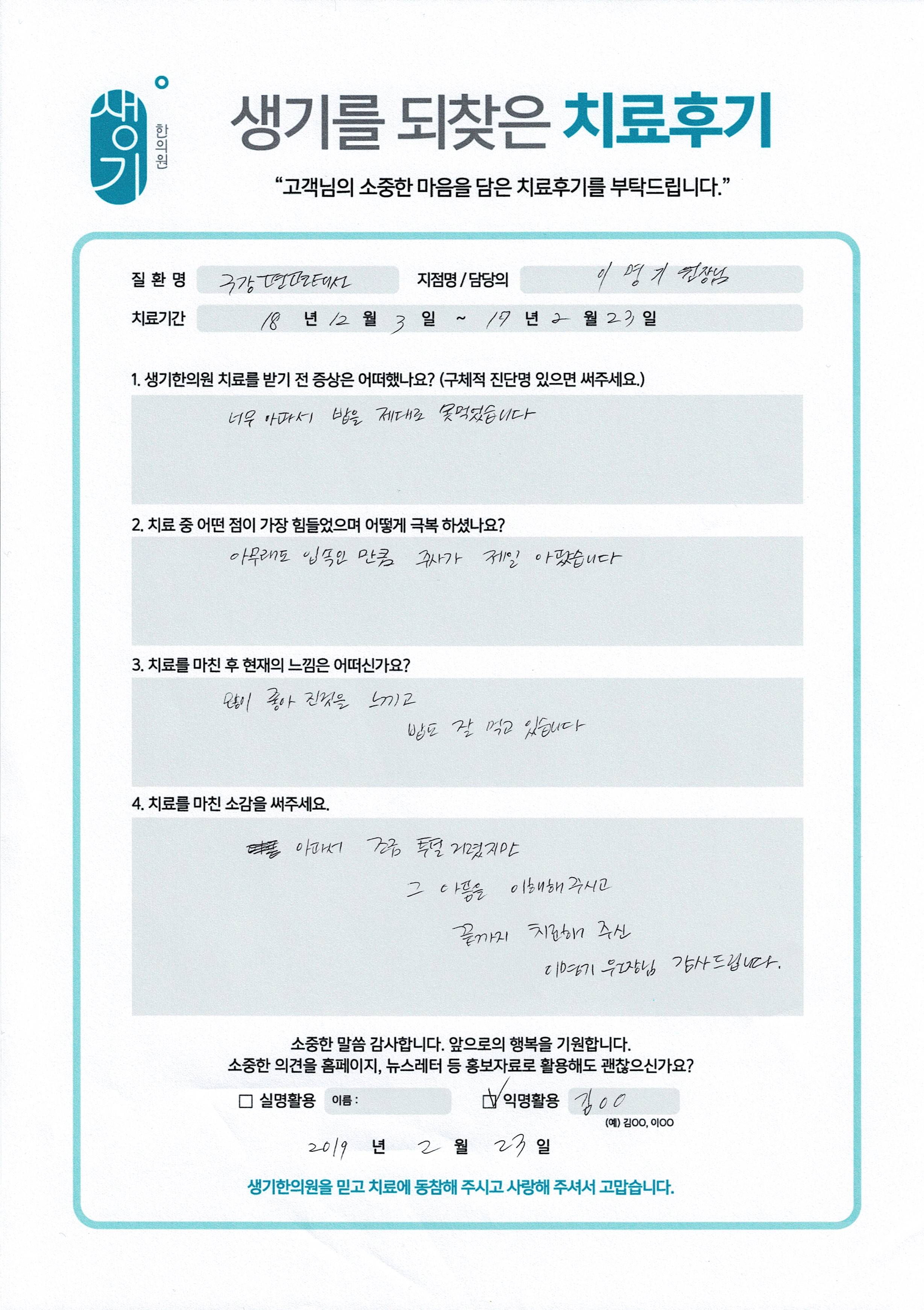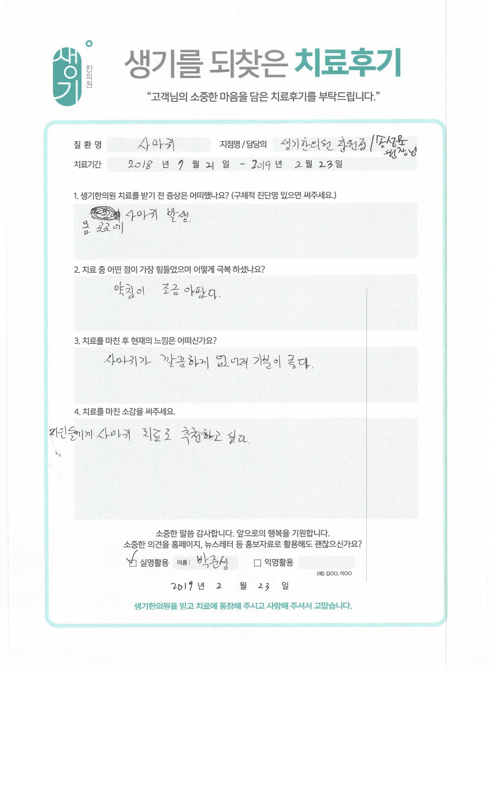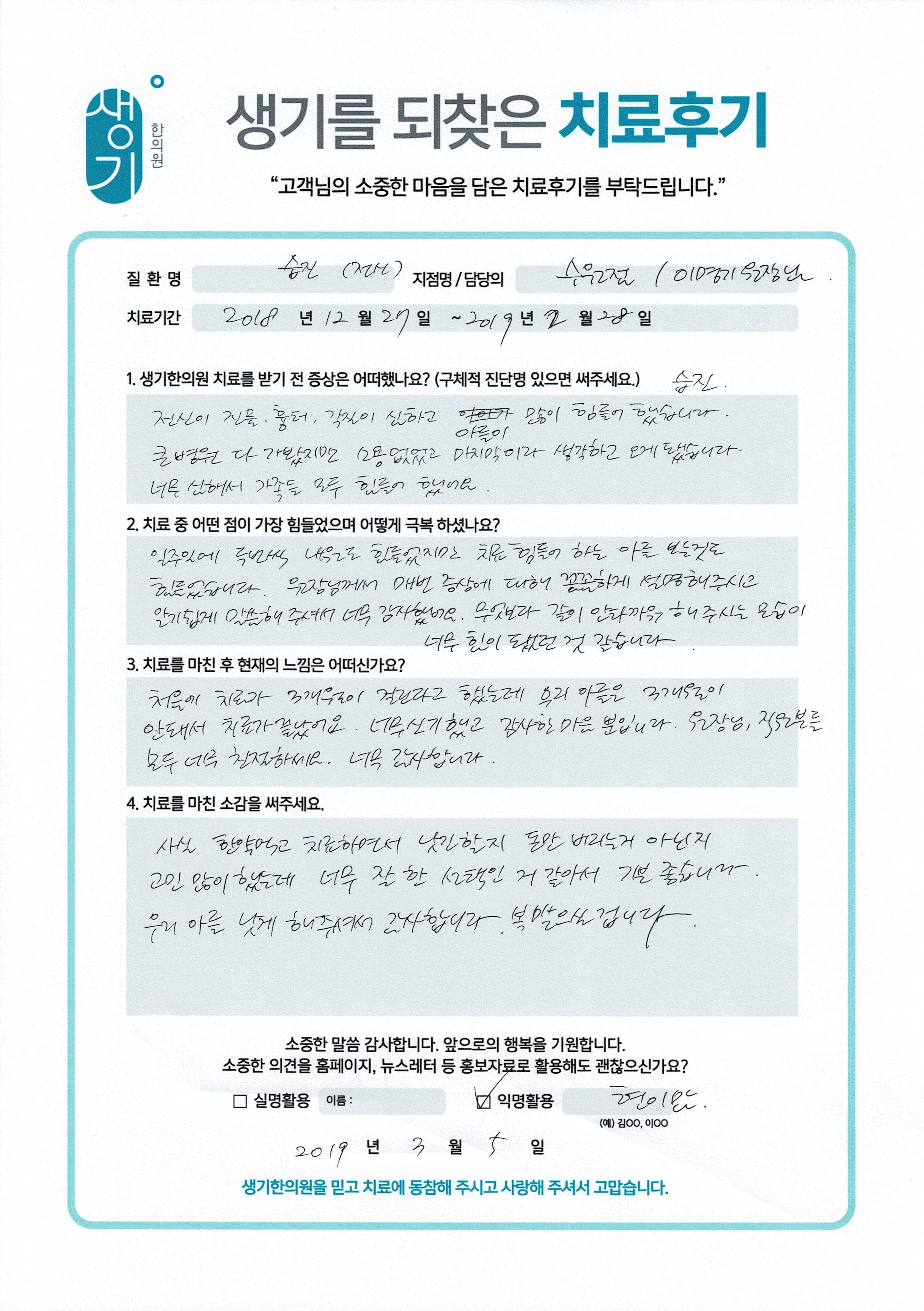 생기한의원과 함께하신 생생한 자필 및 영상 후기를 소개합니다.