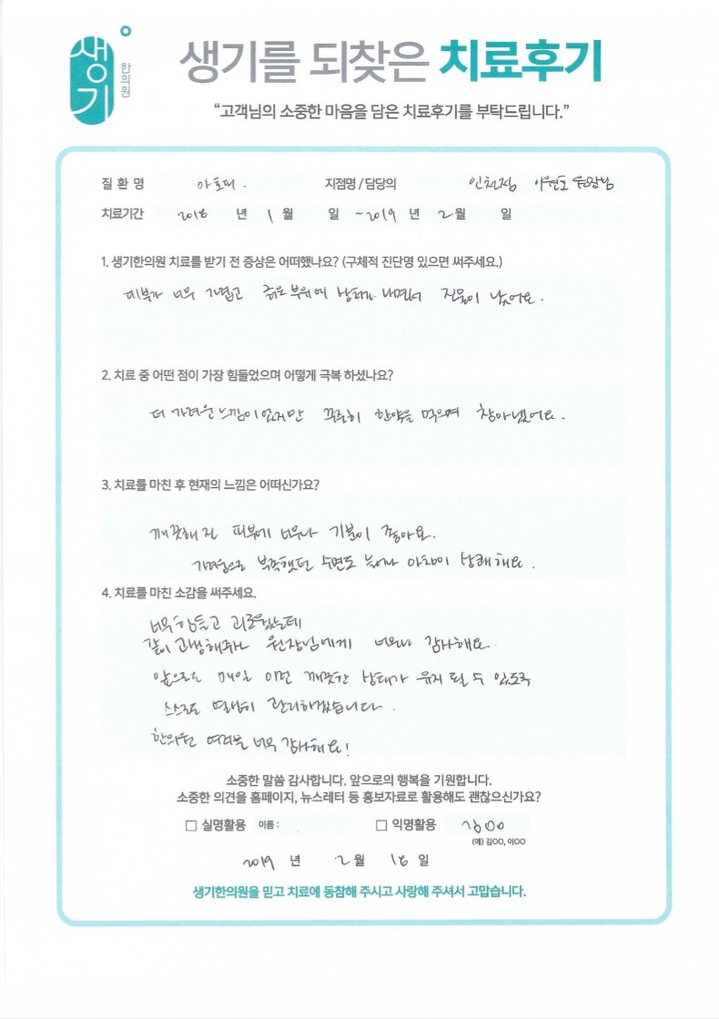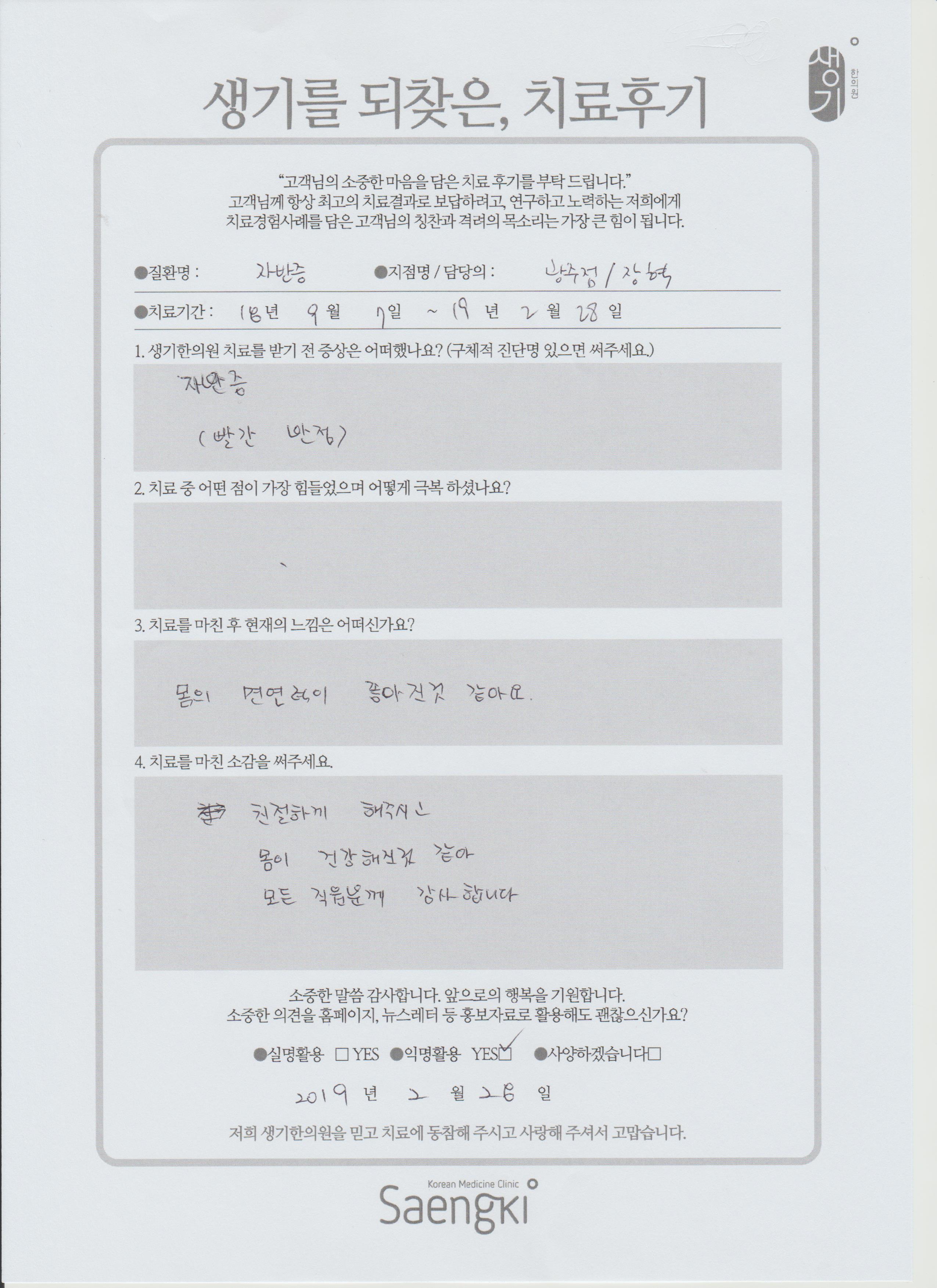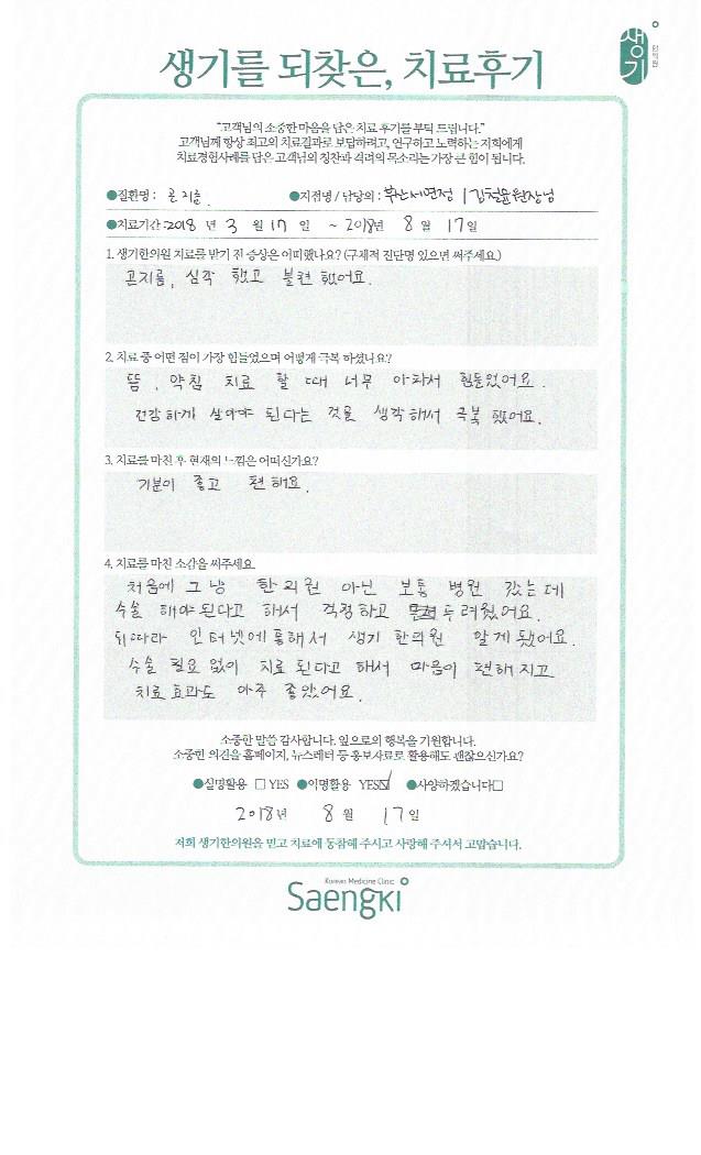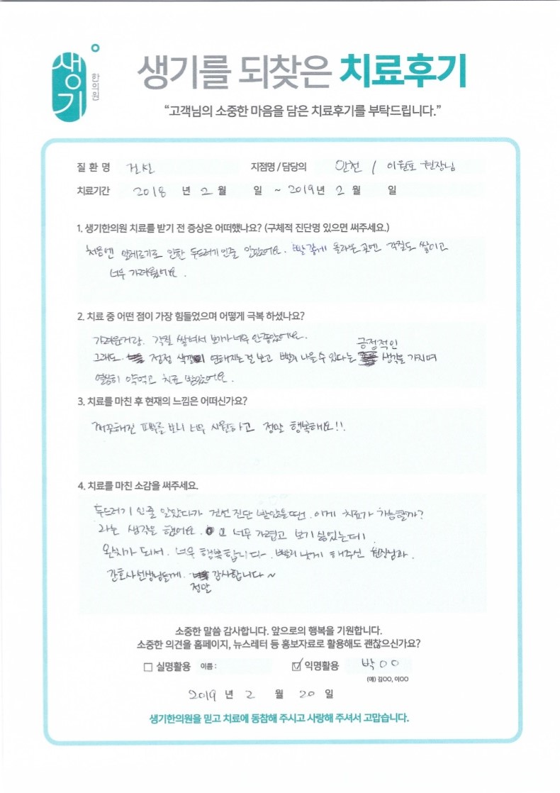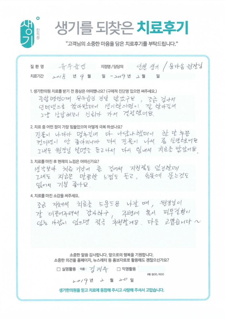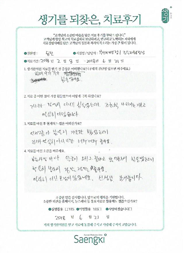 생기한의원과 함께하신 생생한 자필 및 영상 후기를 소개합니다.