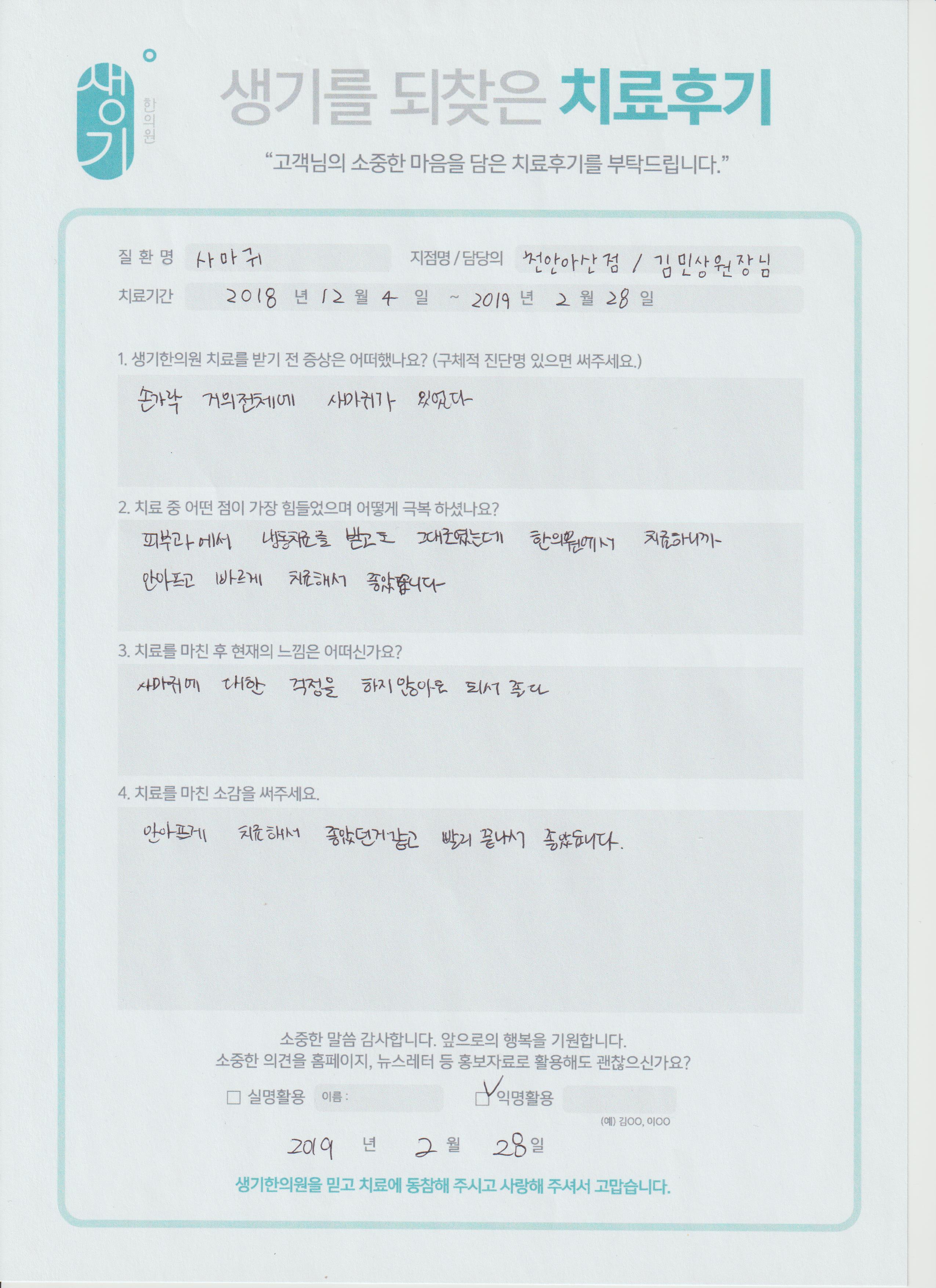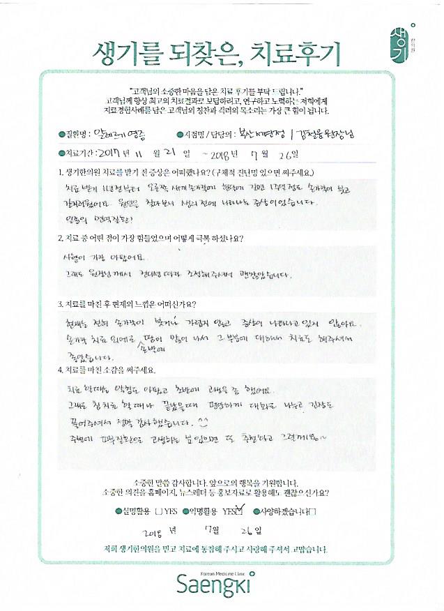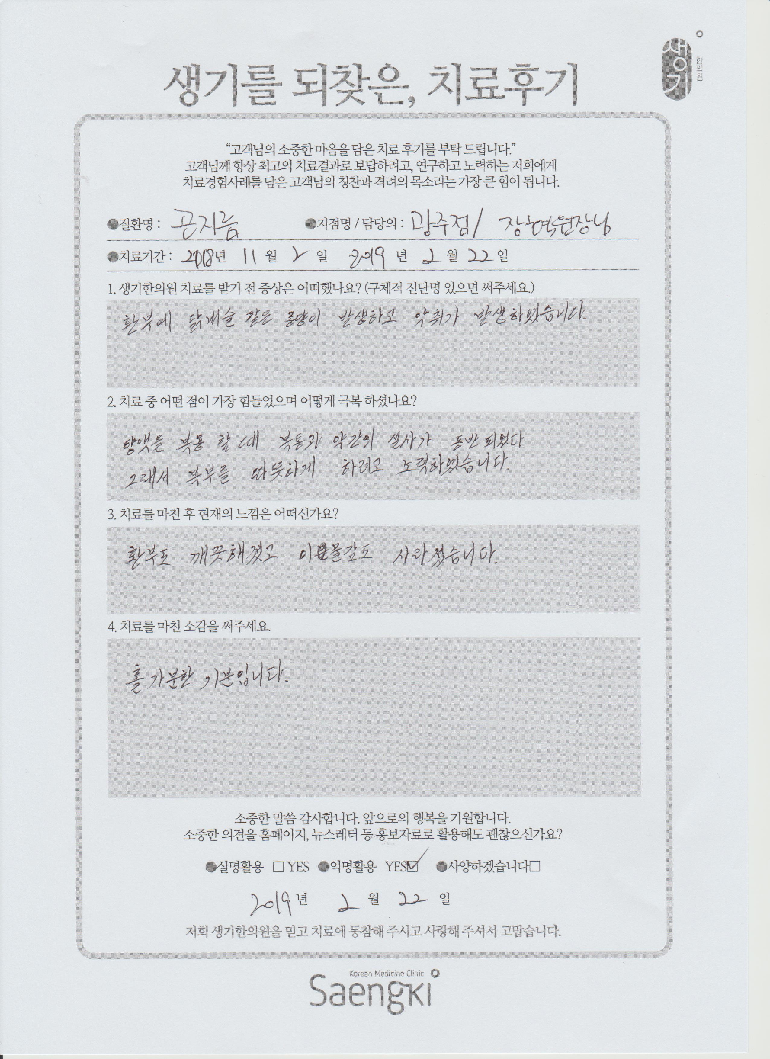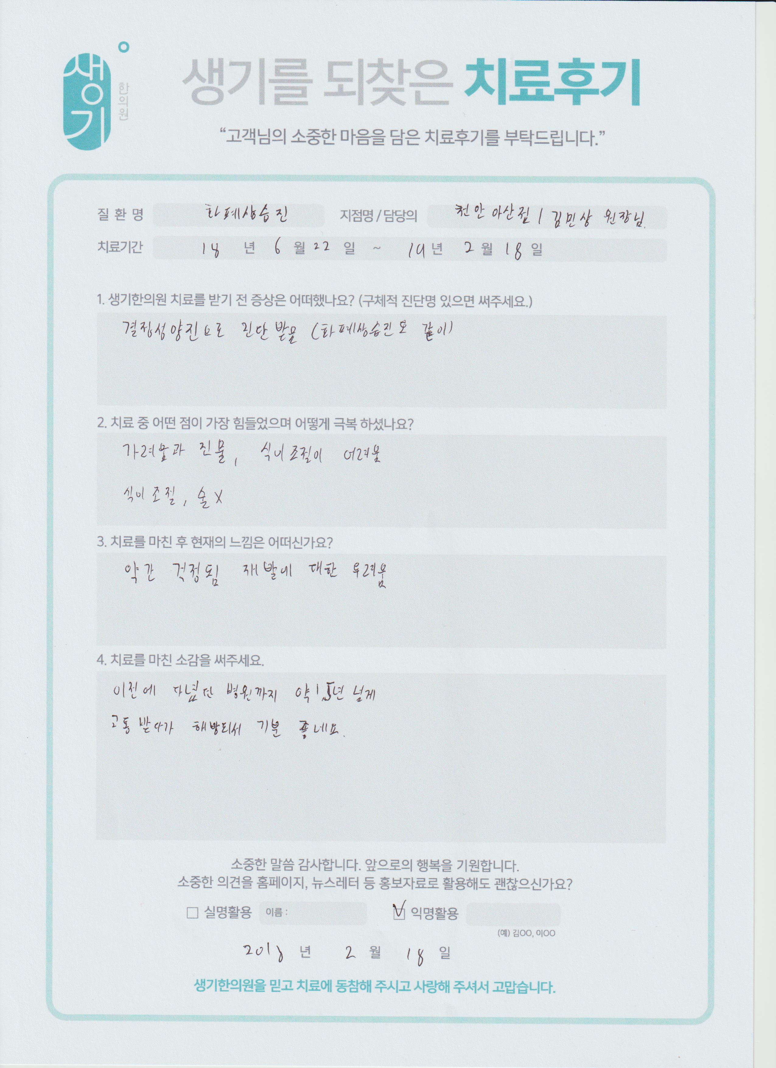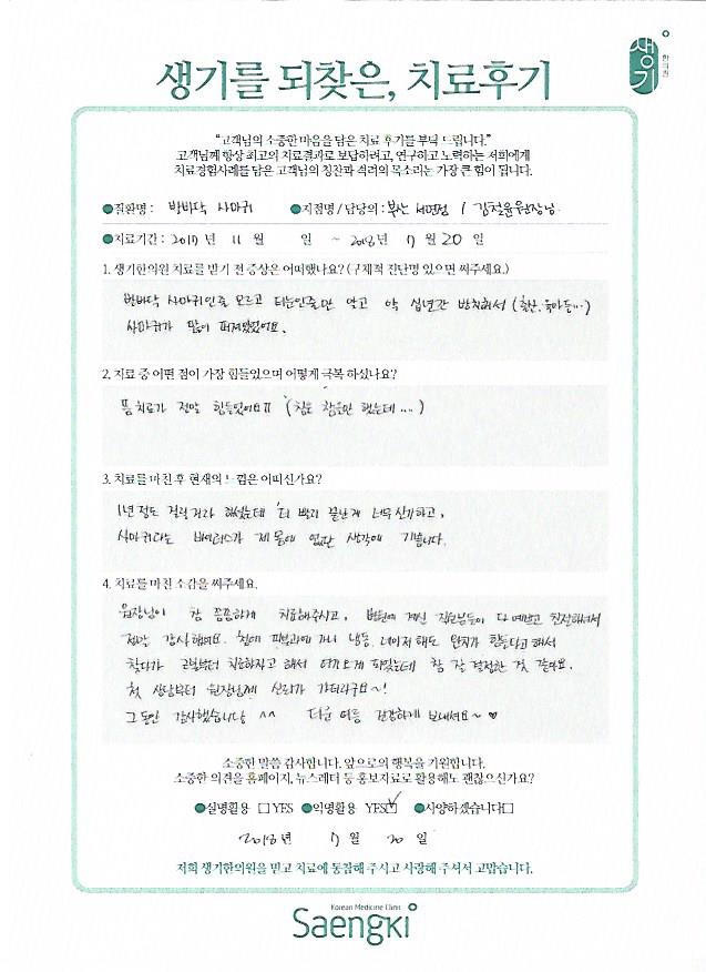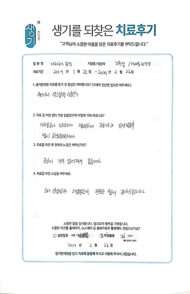 생기한의원과 함께하신 생생한 자필 및 영상 후기를 소개합니다.