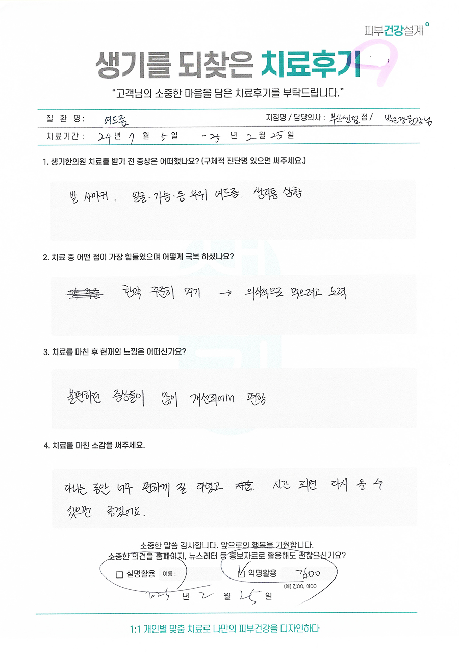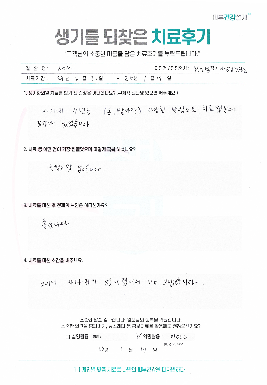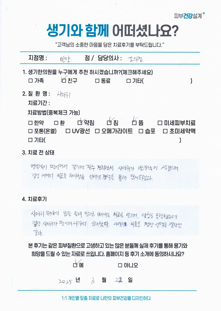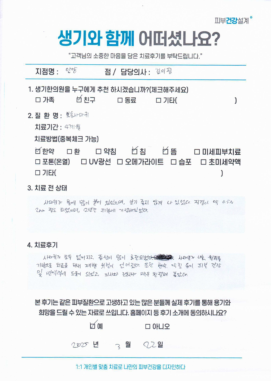 생기한의원과 함께하신 생생한 자필 및 영상 후기를 소개합니다.