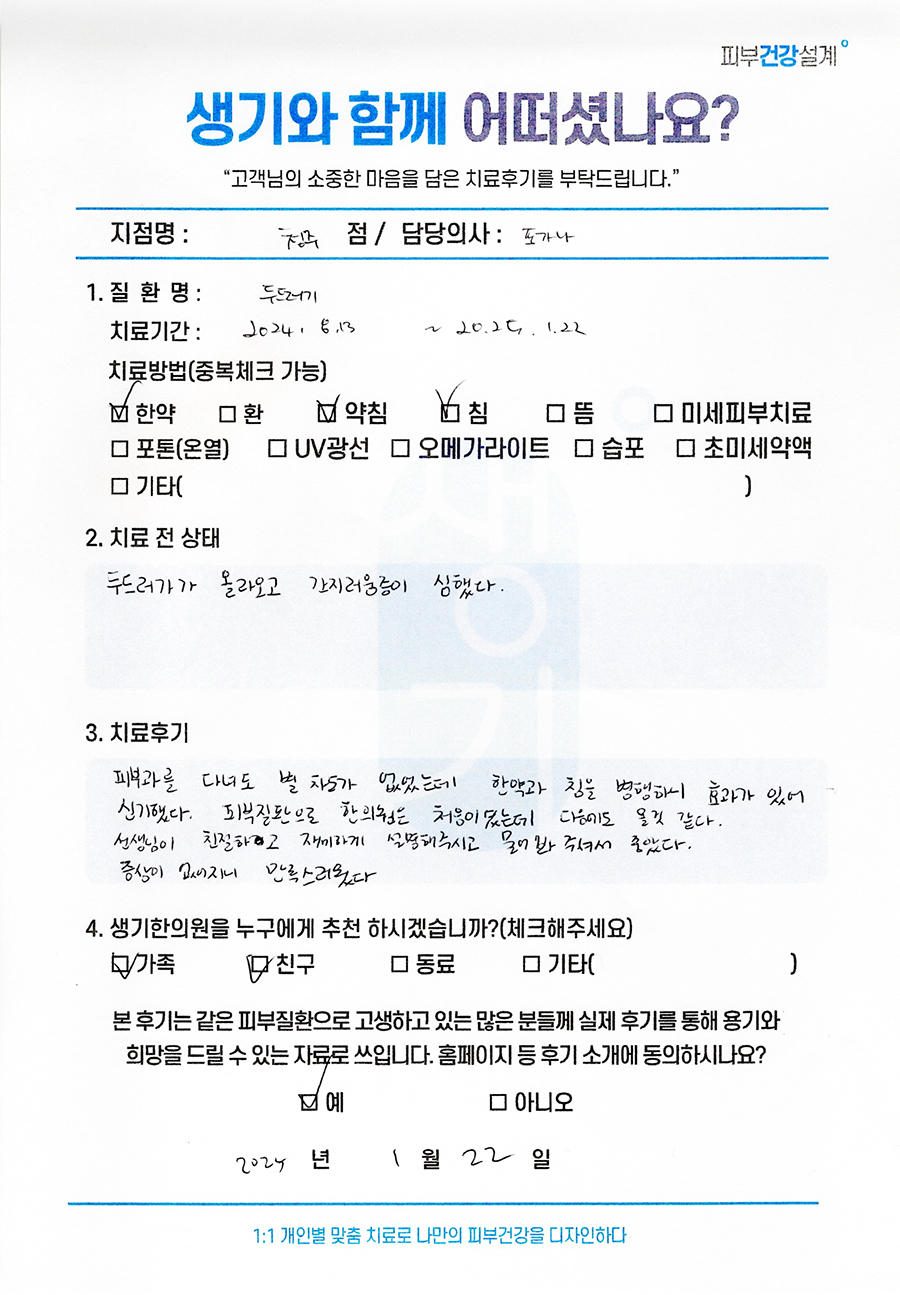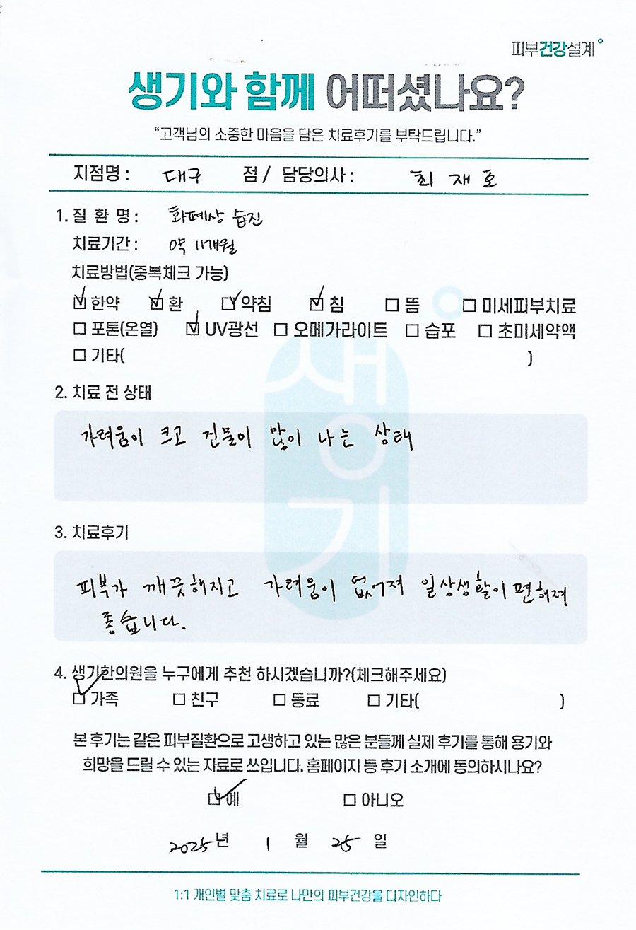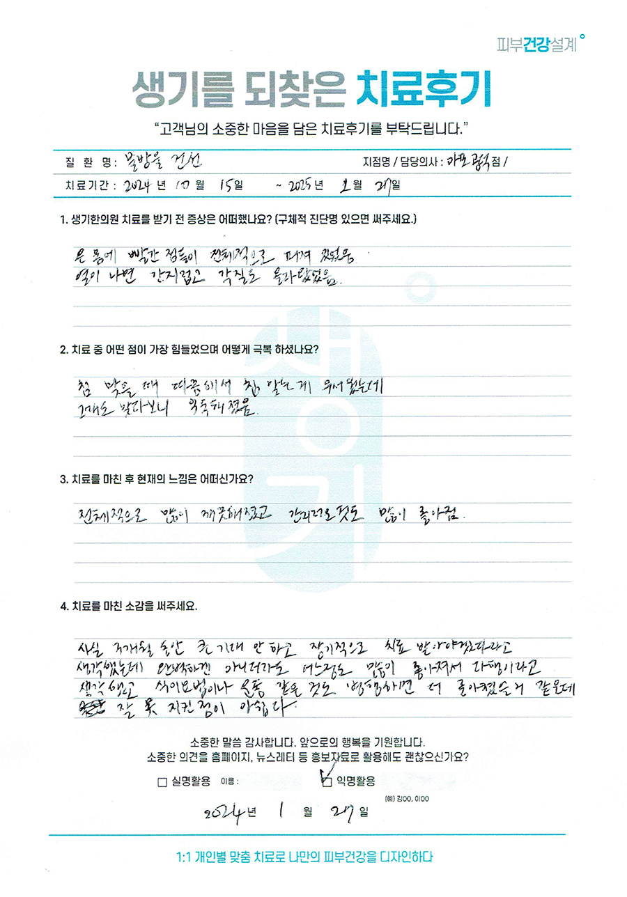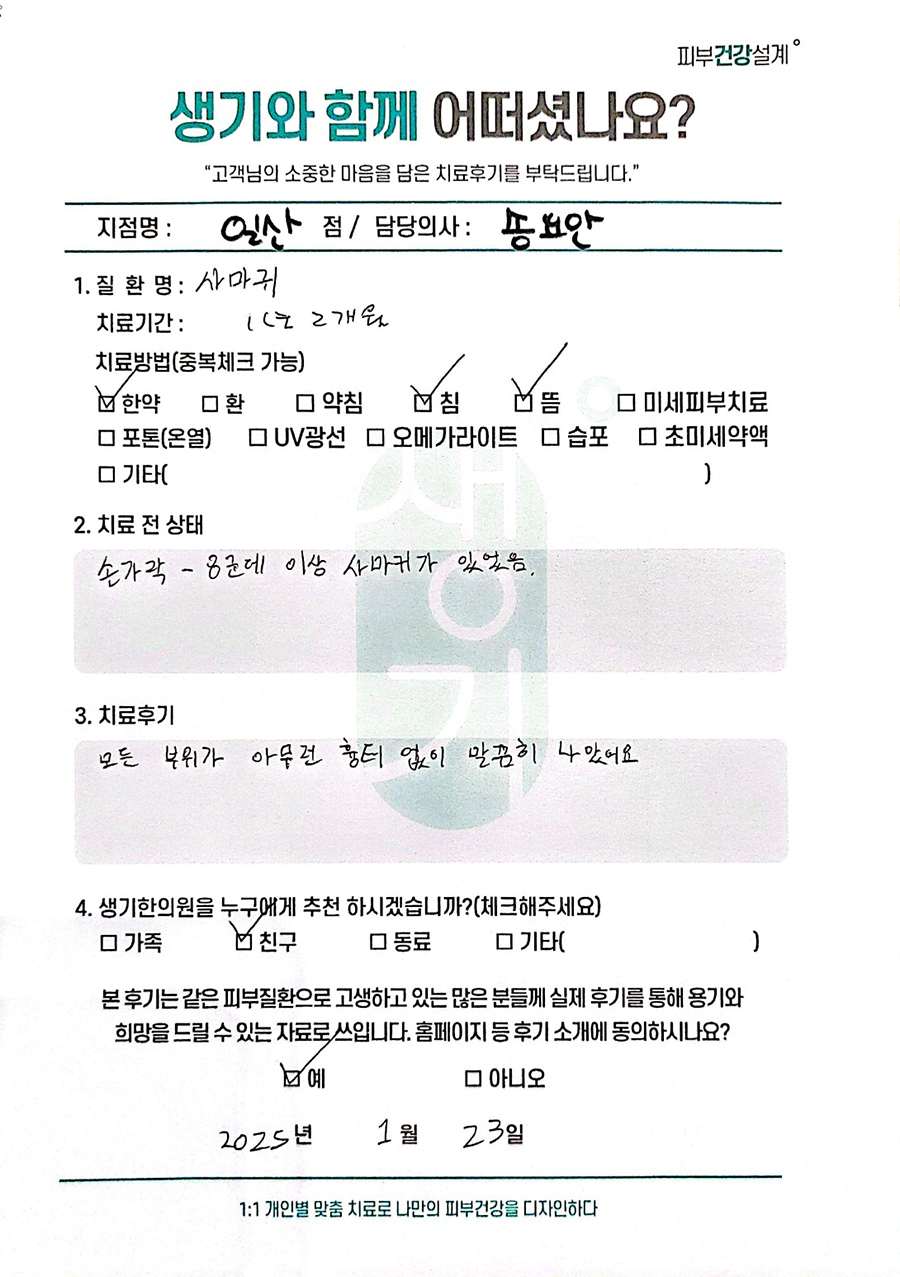 생기한의원과 함께하신 생생한 자필 및 영상 후기를 소개합니다.