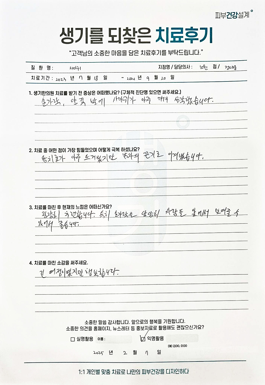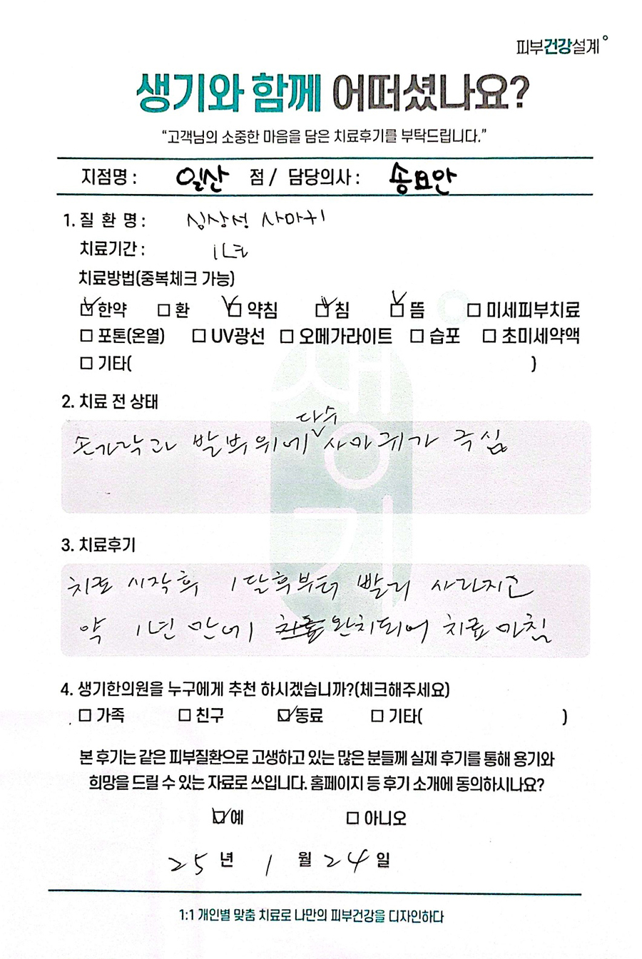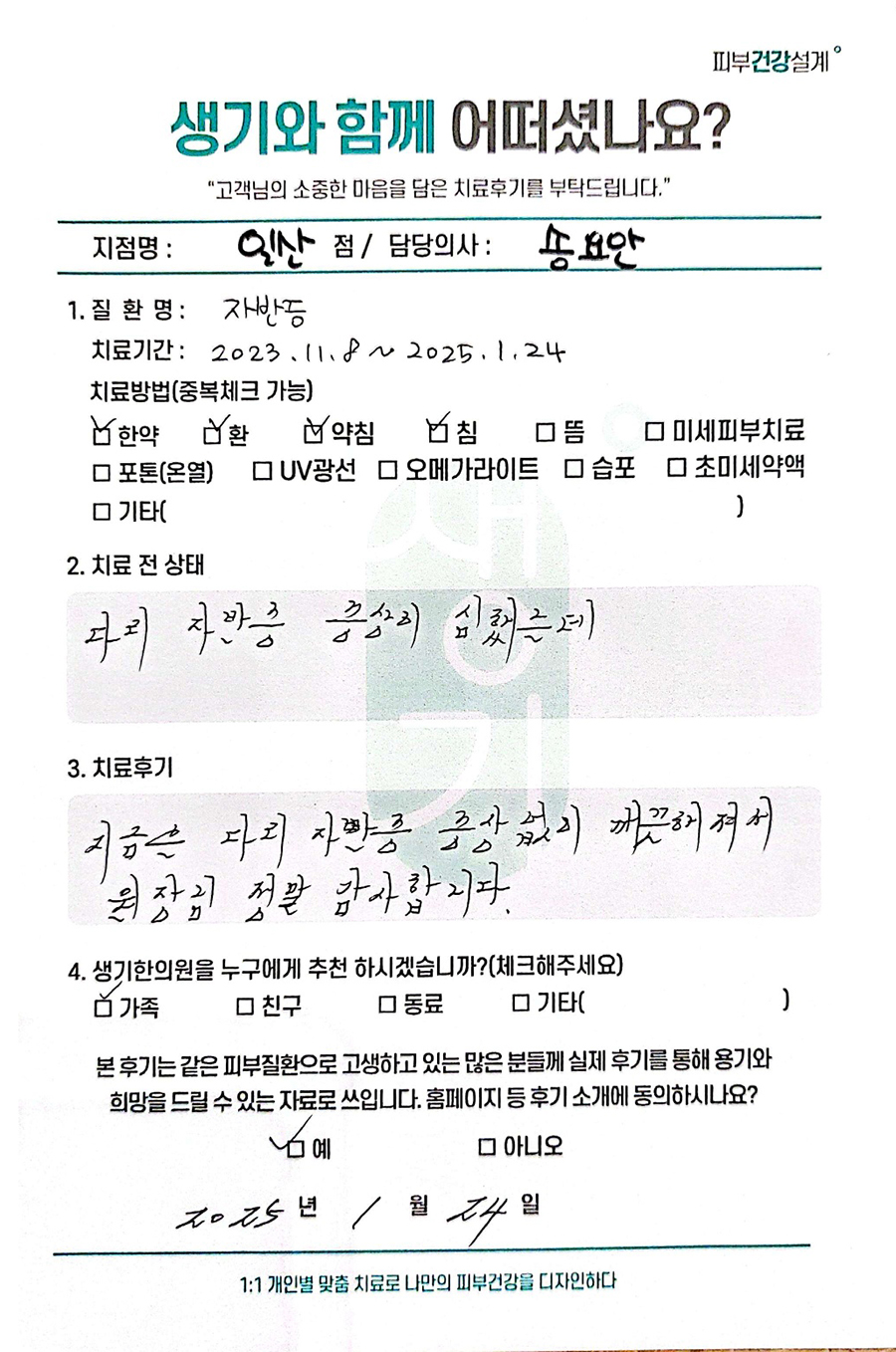 생기한의원과 함께하신 생생한 자필 및 영상 후기를 소개합니다.