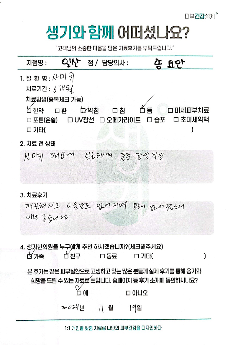 생기한의원과 함께하신 생생한 자필 및 영상 후기를 소개합니다.