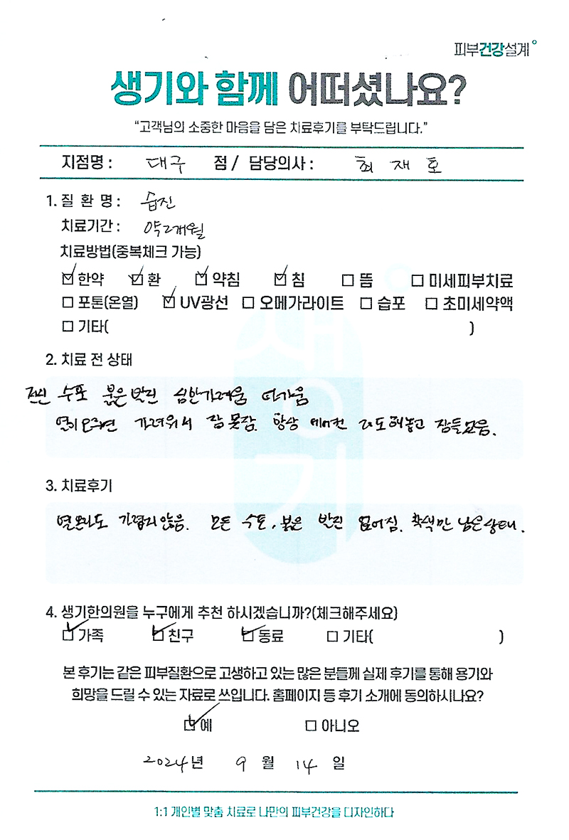 생기한의원과 함께하신 생생한 자필 및 영상 후기를 소개합니다.