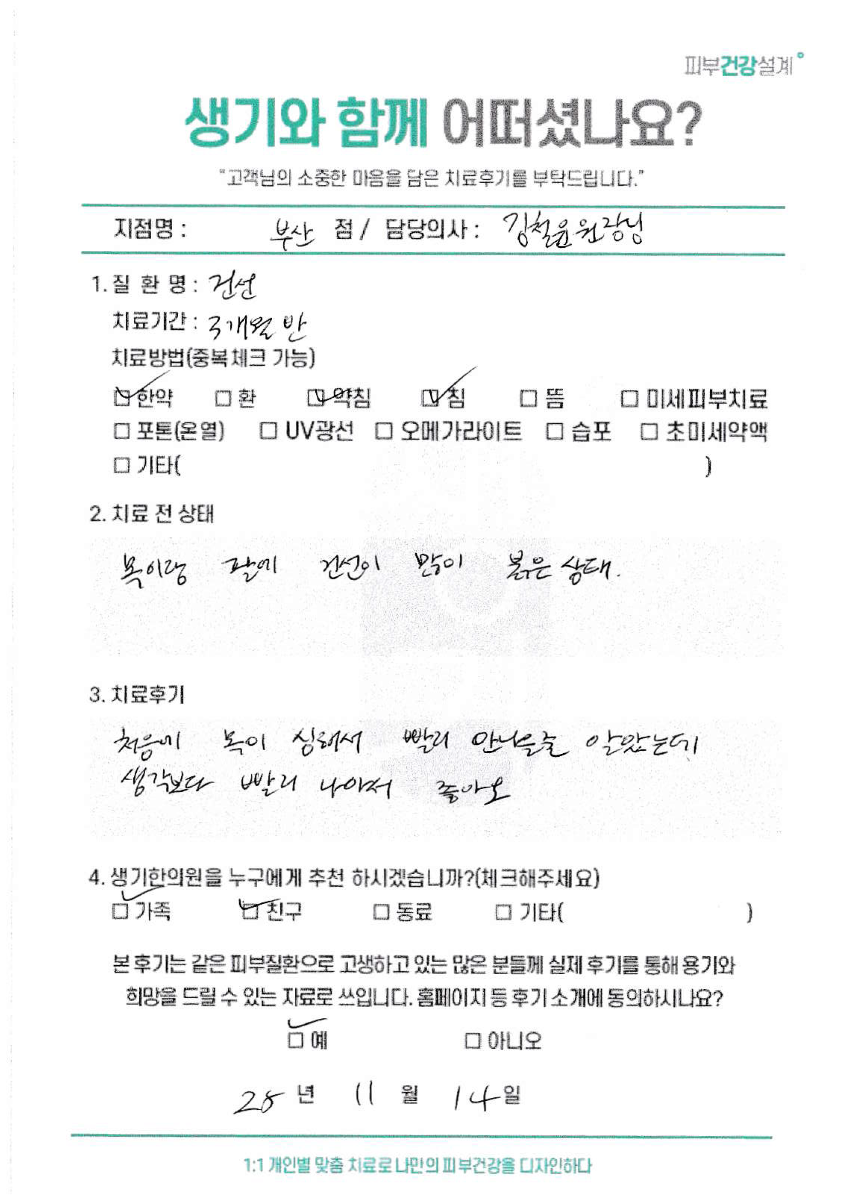 생기한의원과 함께하신 생생한 자필 및 영상 후기를 소개합니다.