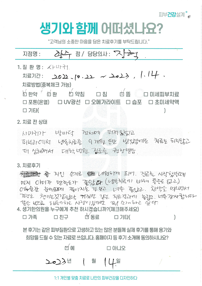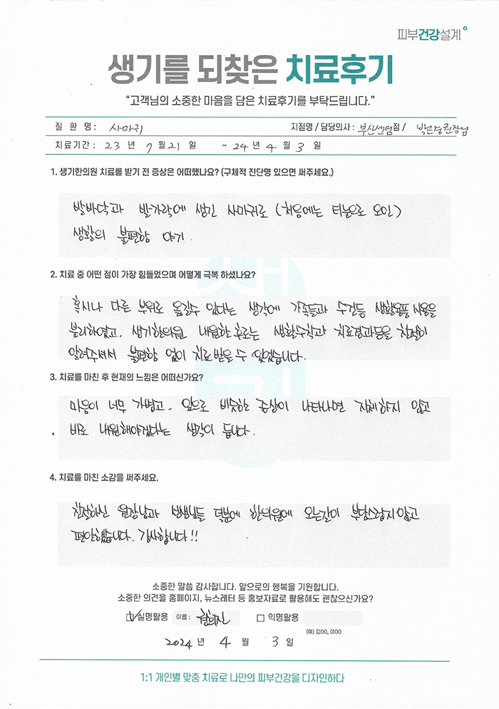 생기한의원과 함께하신 생생한 자필 및 영상 후기를 소개합니다.