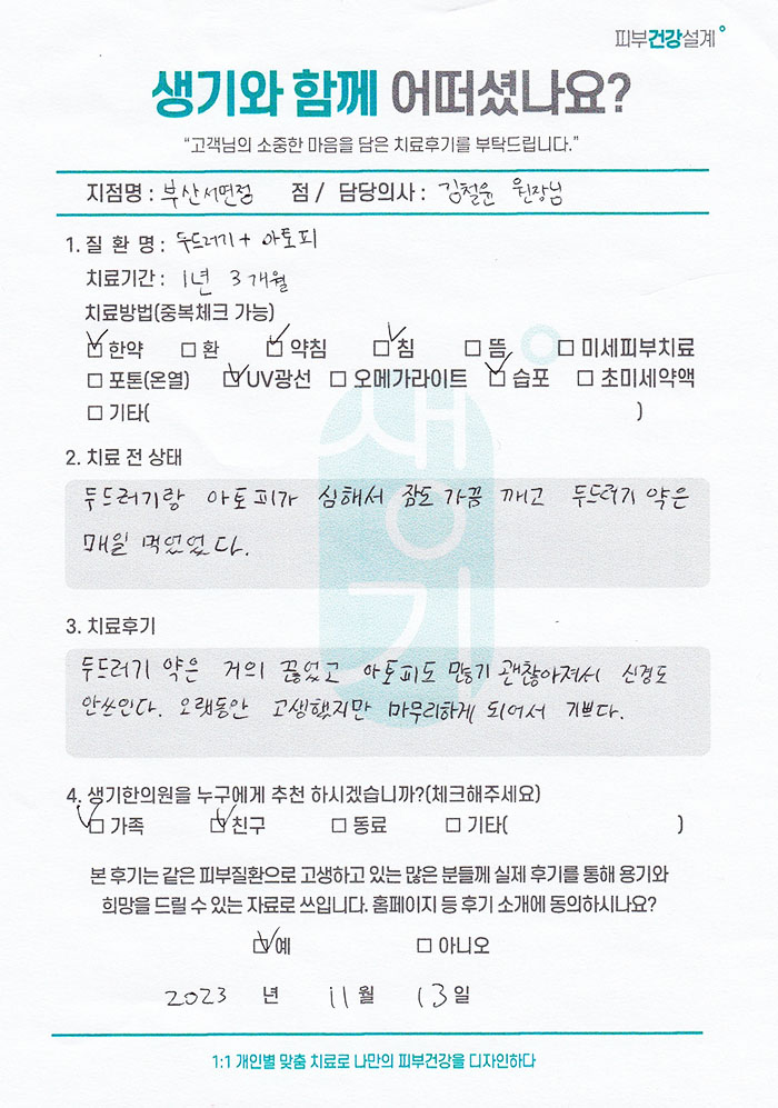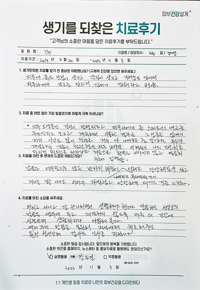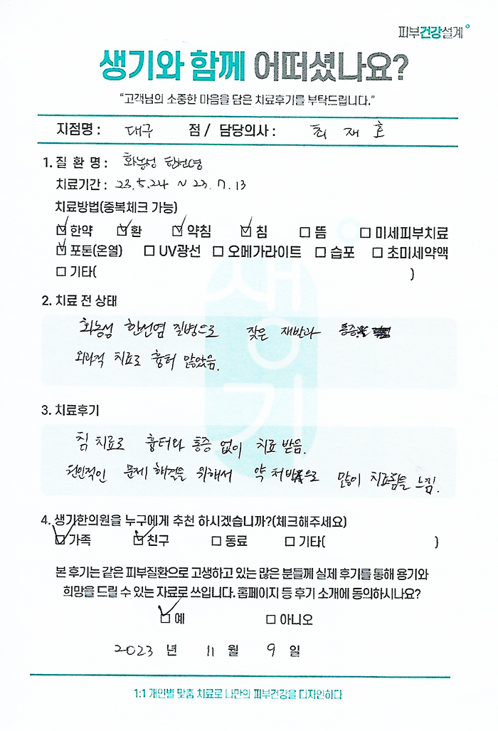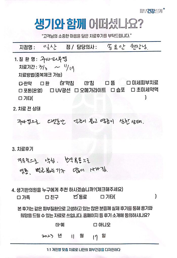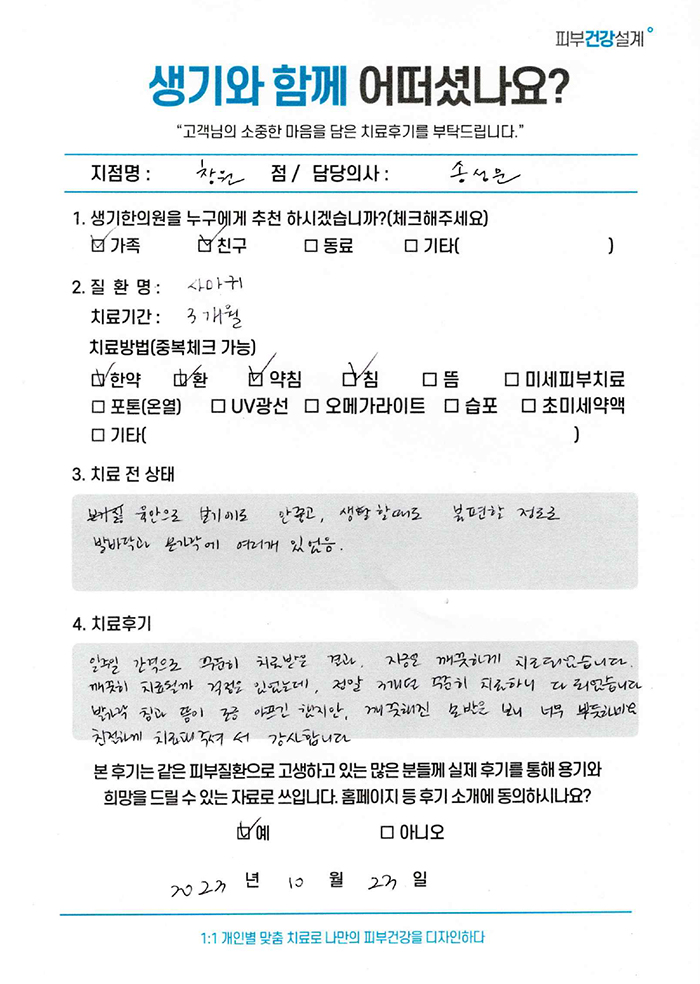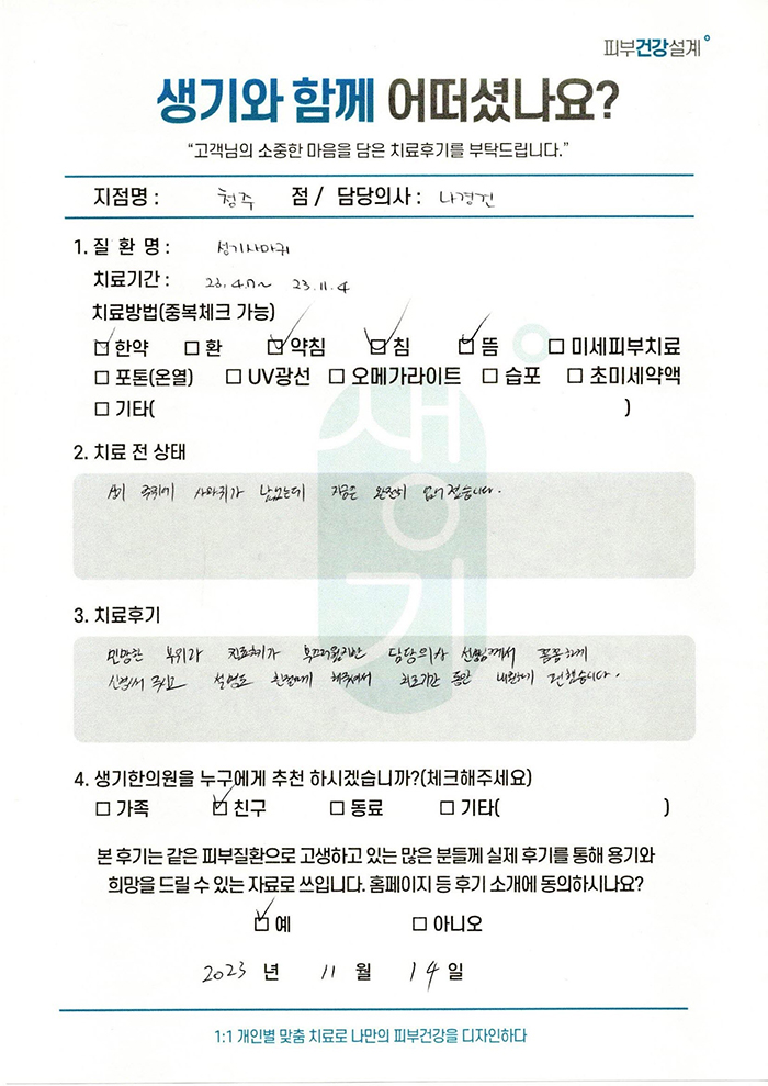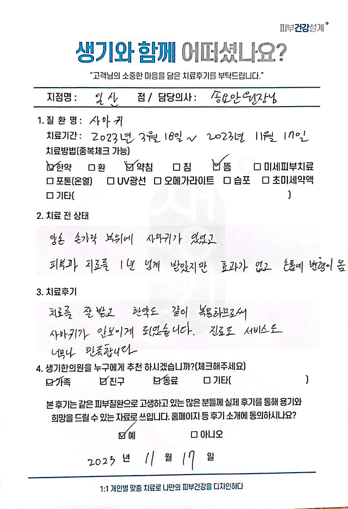 생기한의원과 함께하신 생생한 자필 및 영상 후기를 소개합니다.