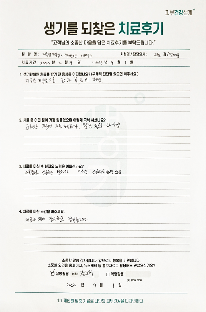 생기한의원과 함께하신 생생한 자필 및 영상 후기를 소개합니다.