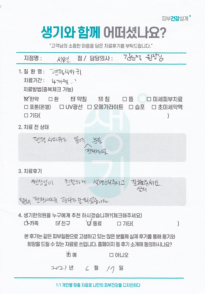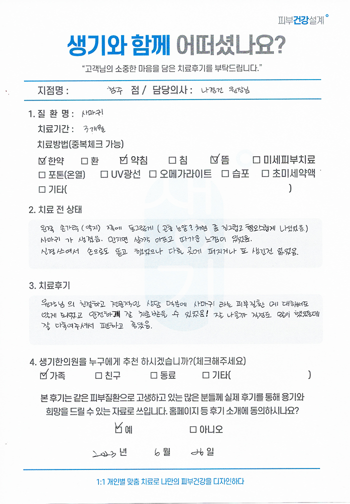 생기한의원과 함께하신 생생한 자필 및 영상 후기를 소개합니다.