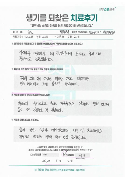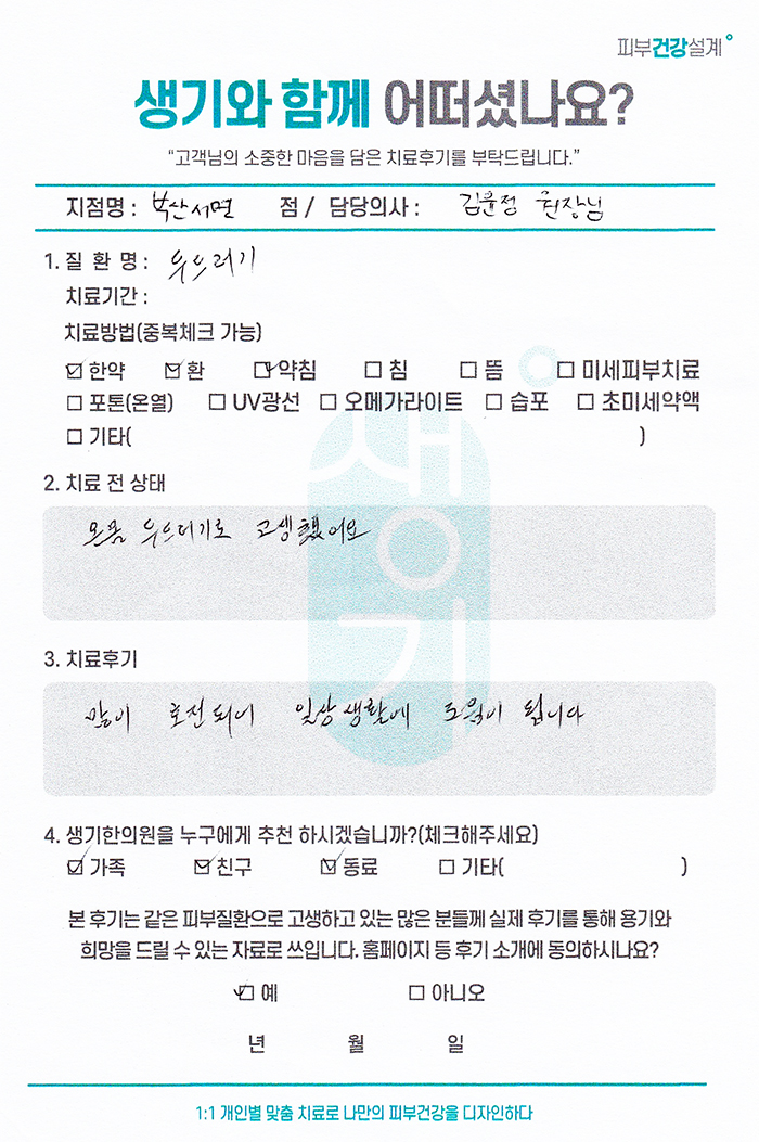 생기한의원과 함께하신 생생한 자필 및 영상 후기를 소개합니다.