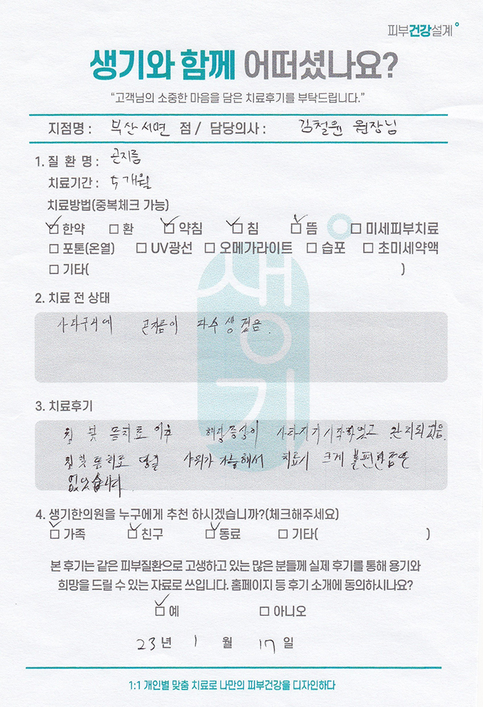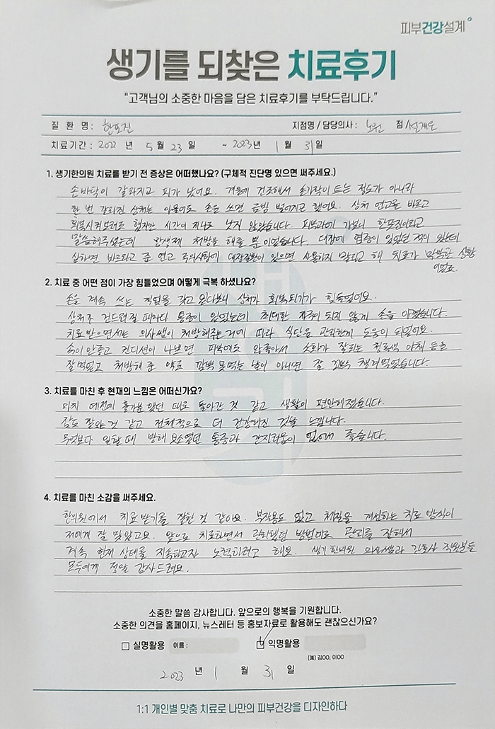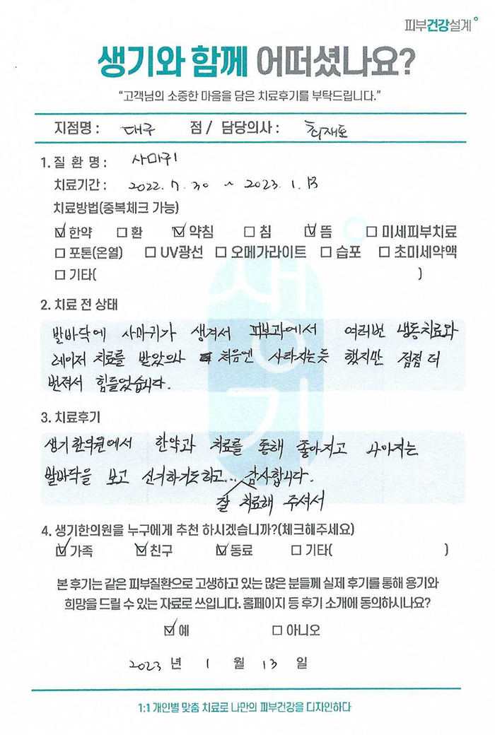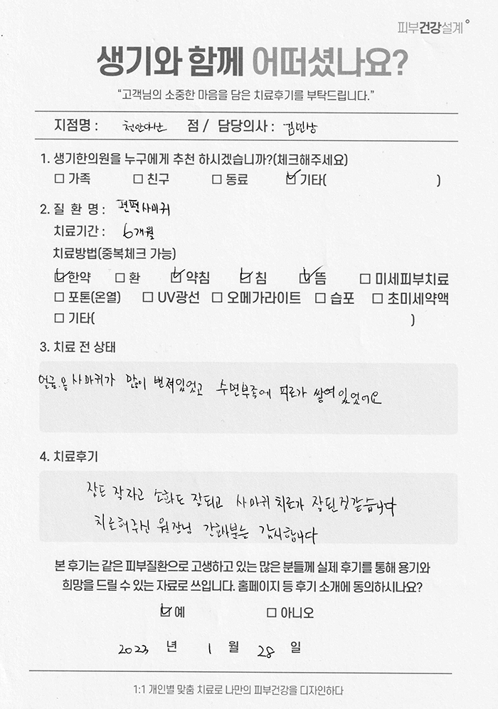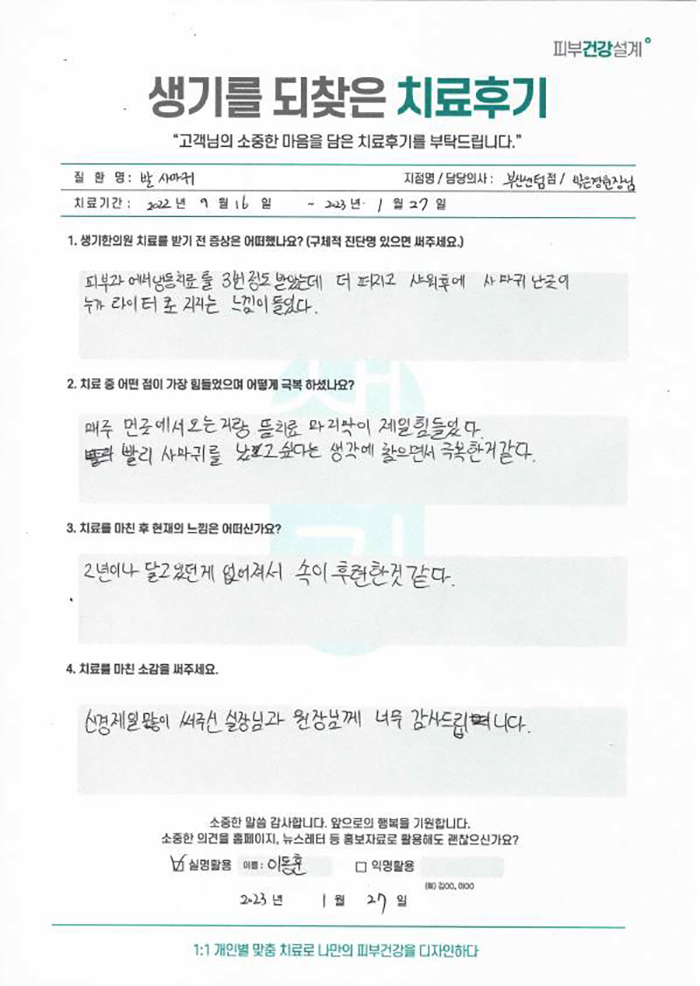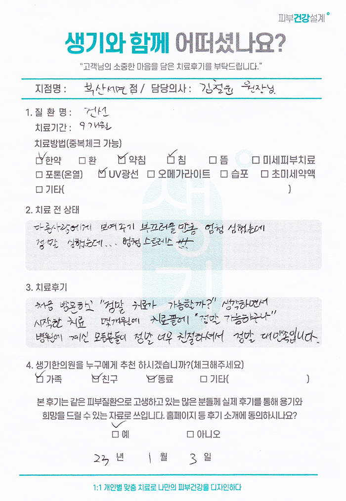 생기한의원과 함께하신 생생한 자필 및 영상 후기를 소개합니다.