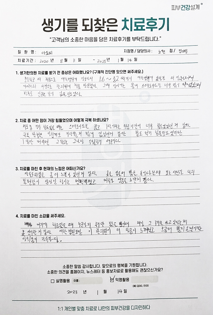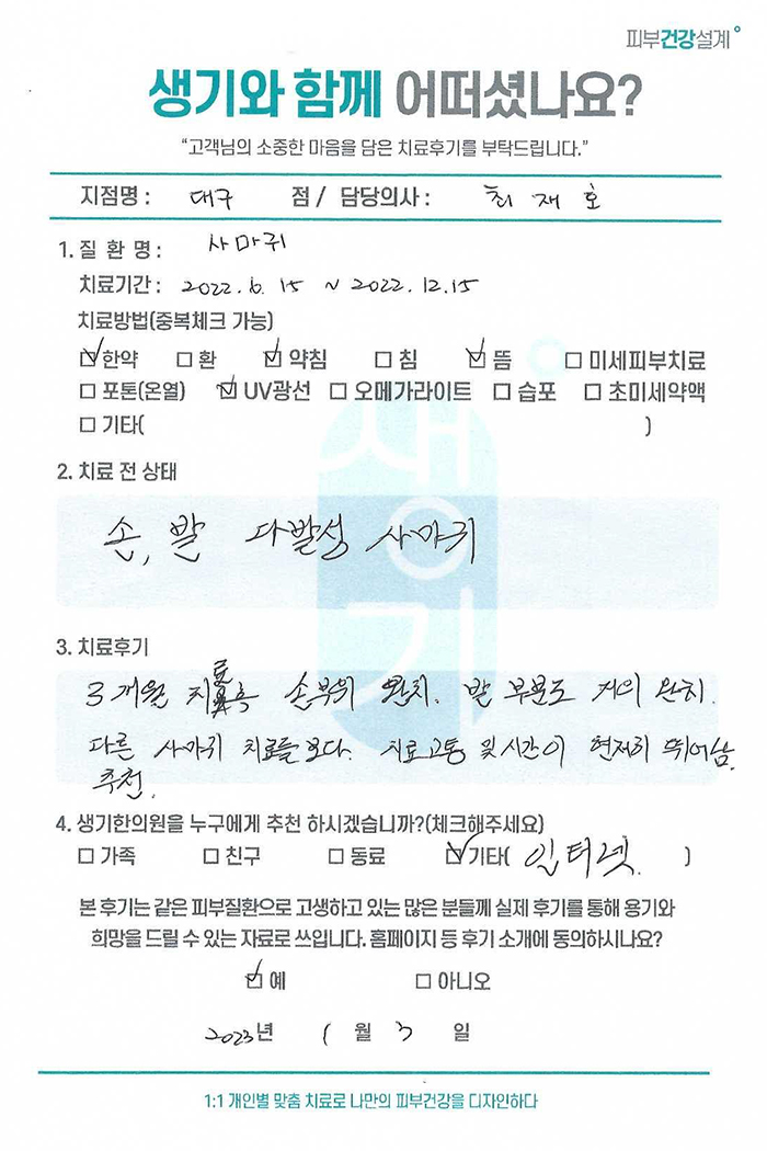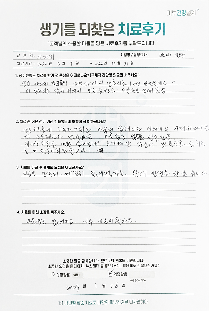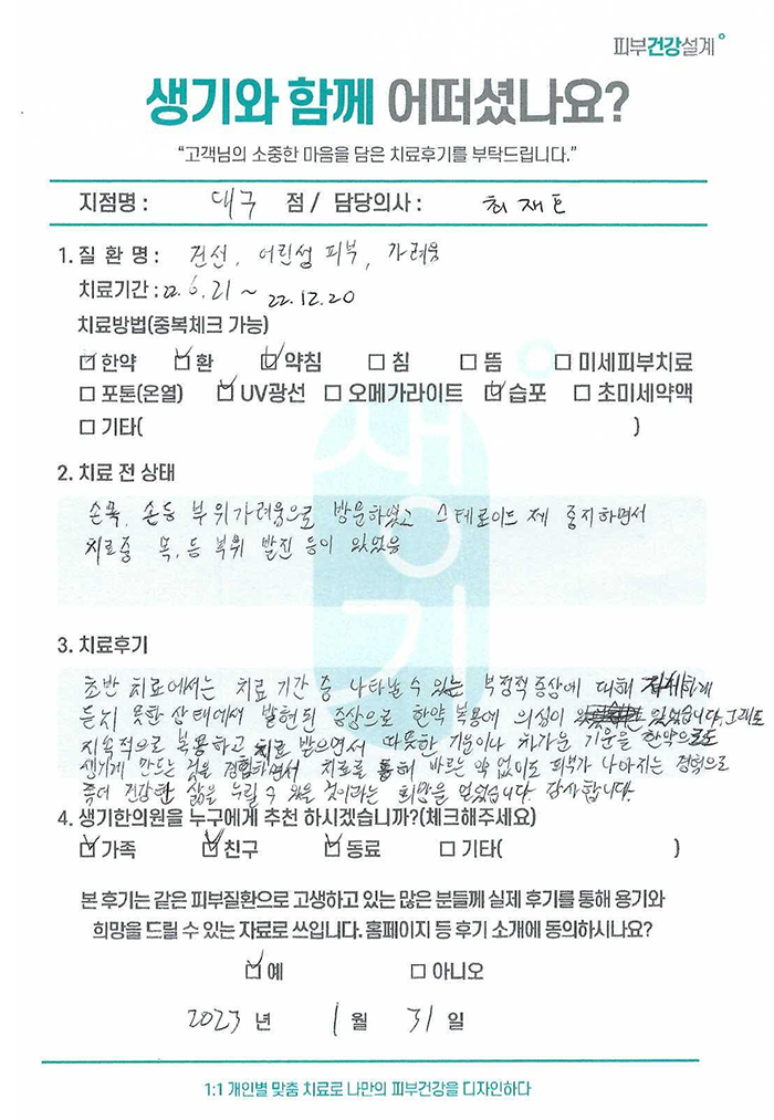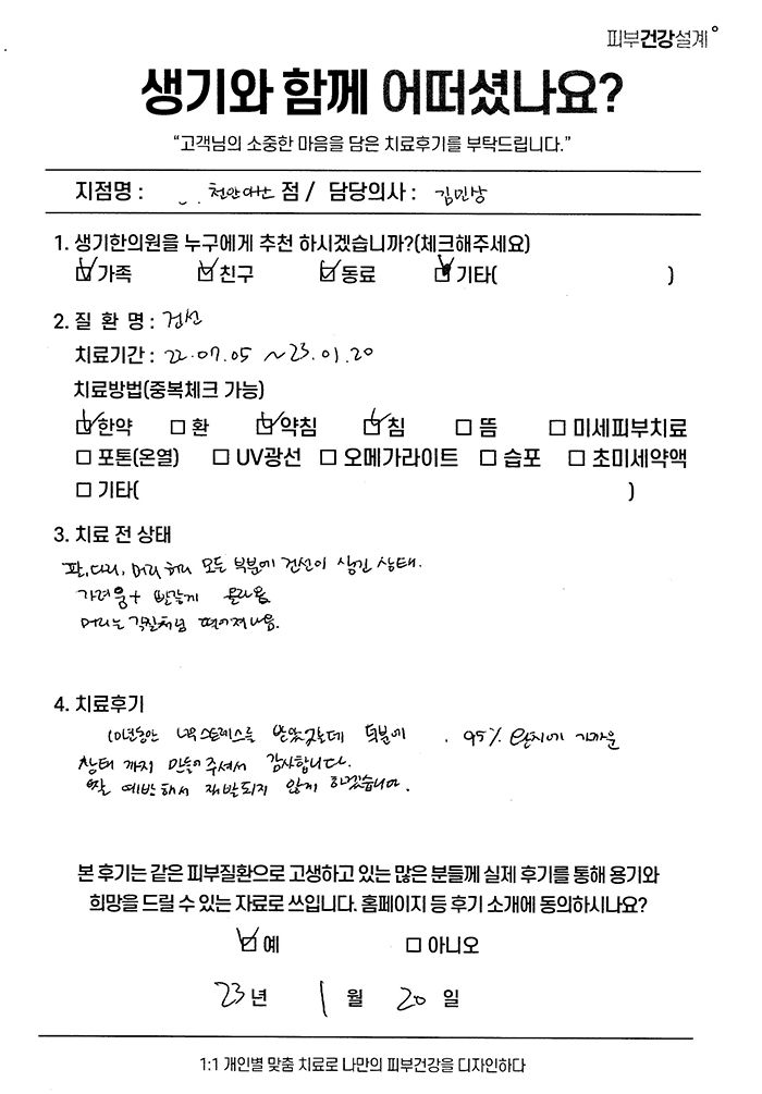 생기한의원과 함께하신 생생한 자필 및 영상 후기를 소개합니다.