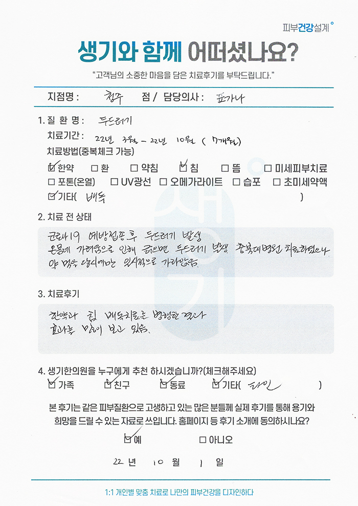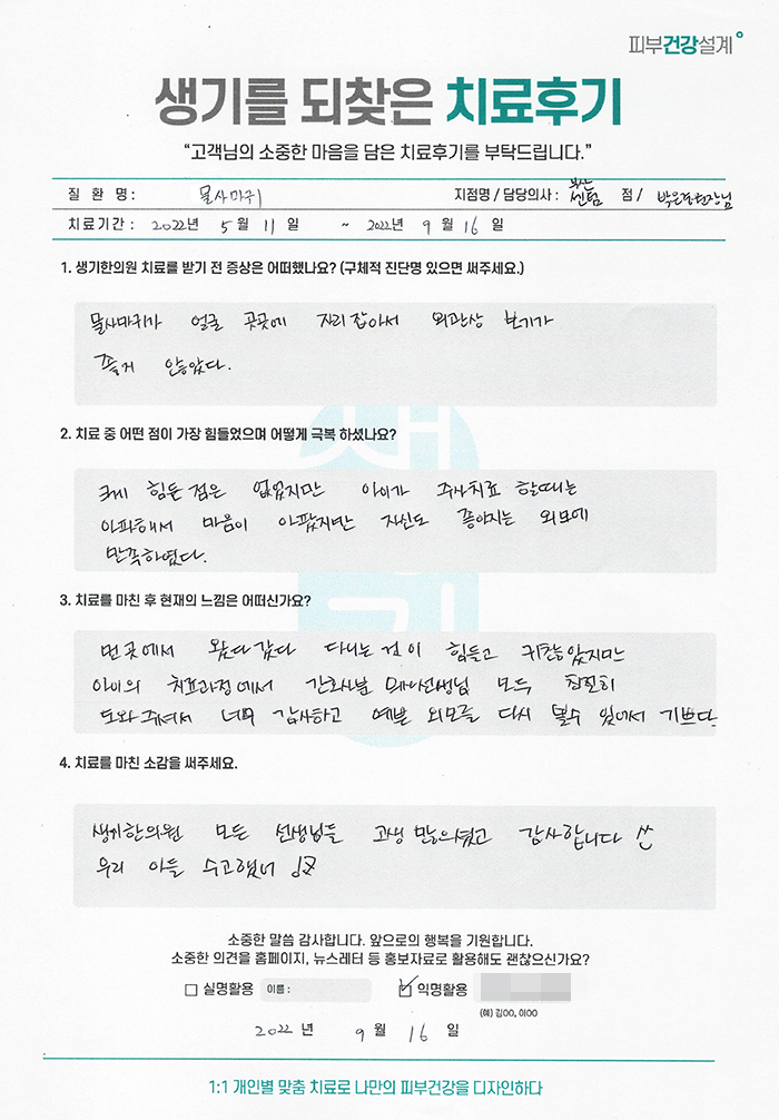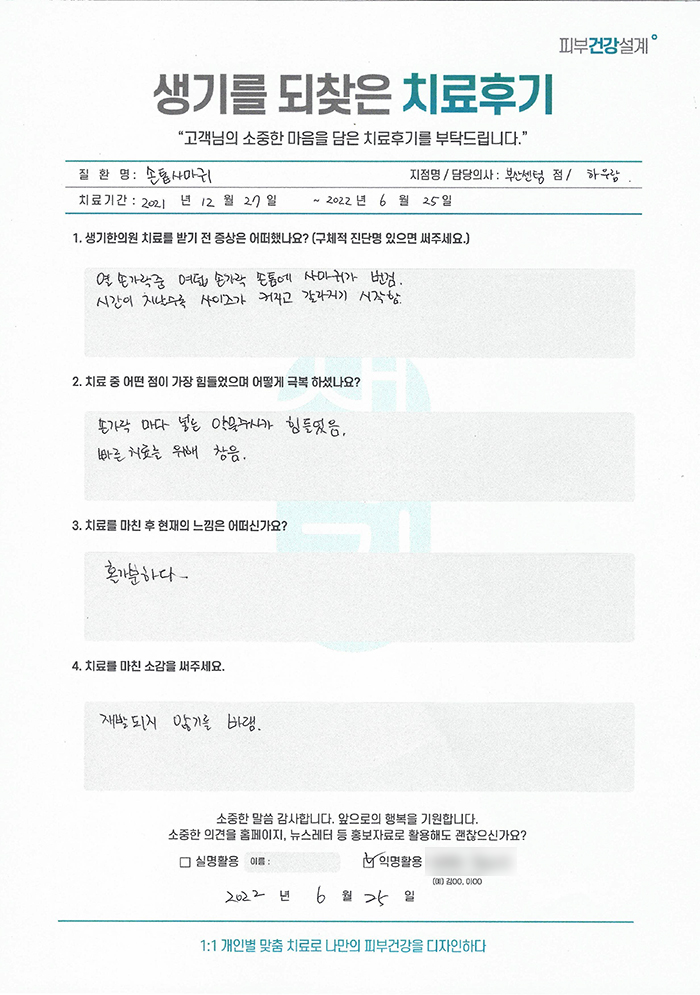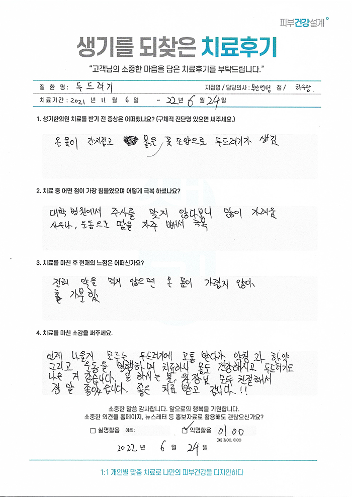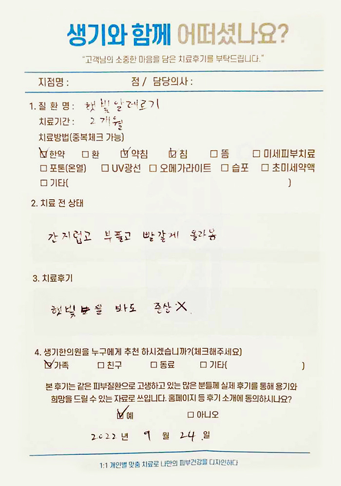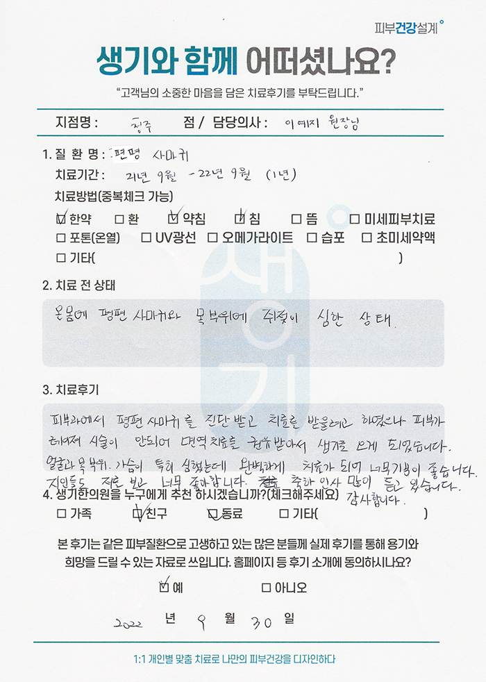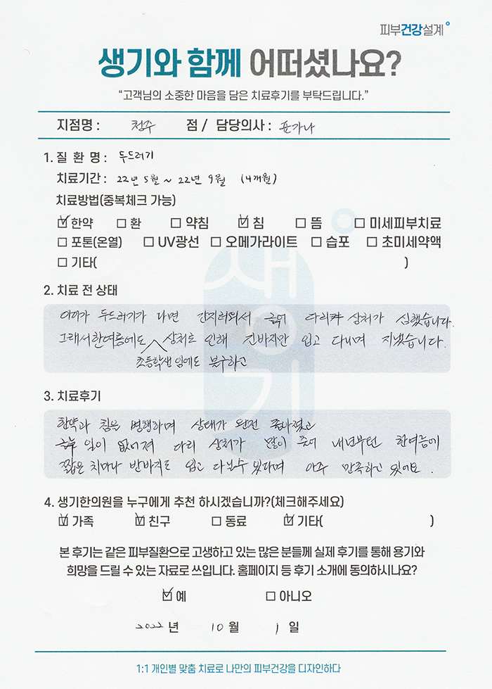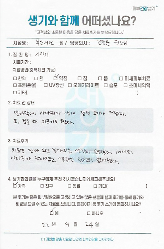 생기한의원과 함께하신 생생한 자필 및 영상 후기를 소개합니다.