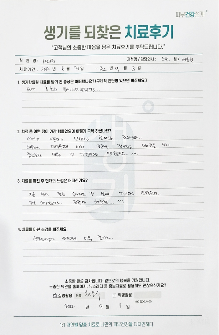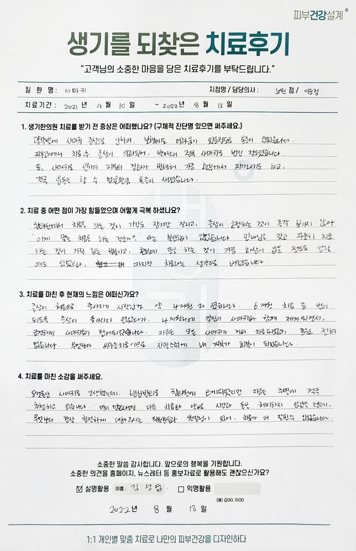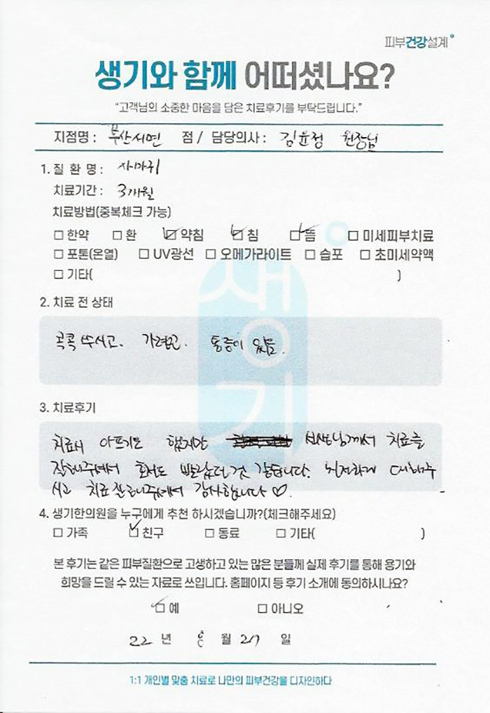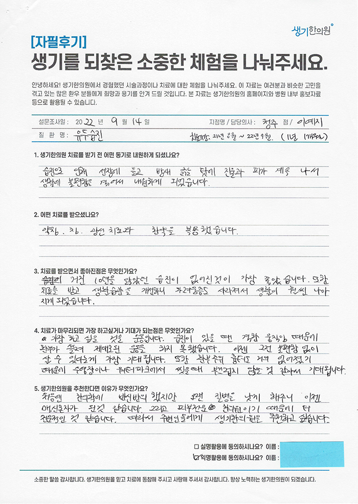 생기한의원과 함께하신 생생한 자필 및 영상 후기를 소개합니다.