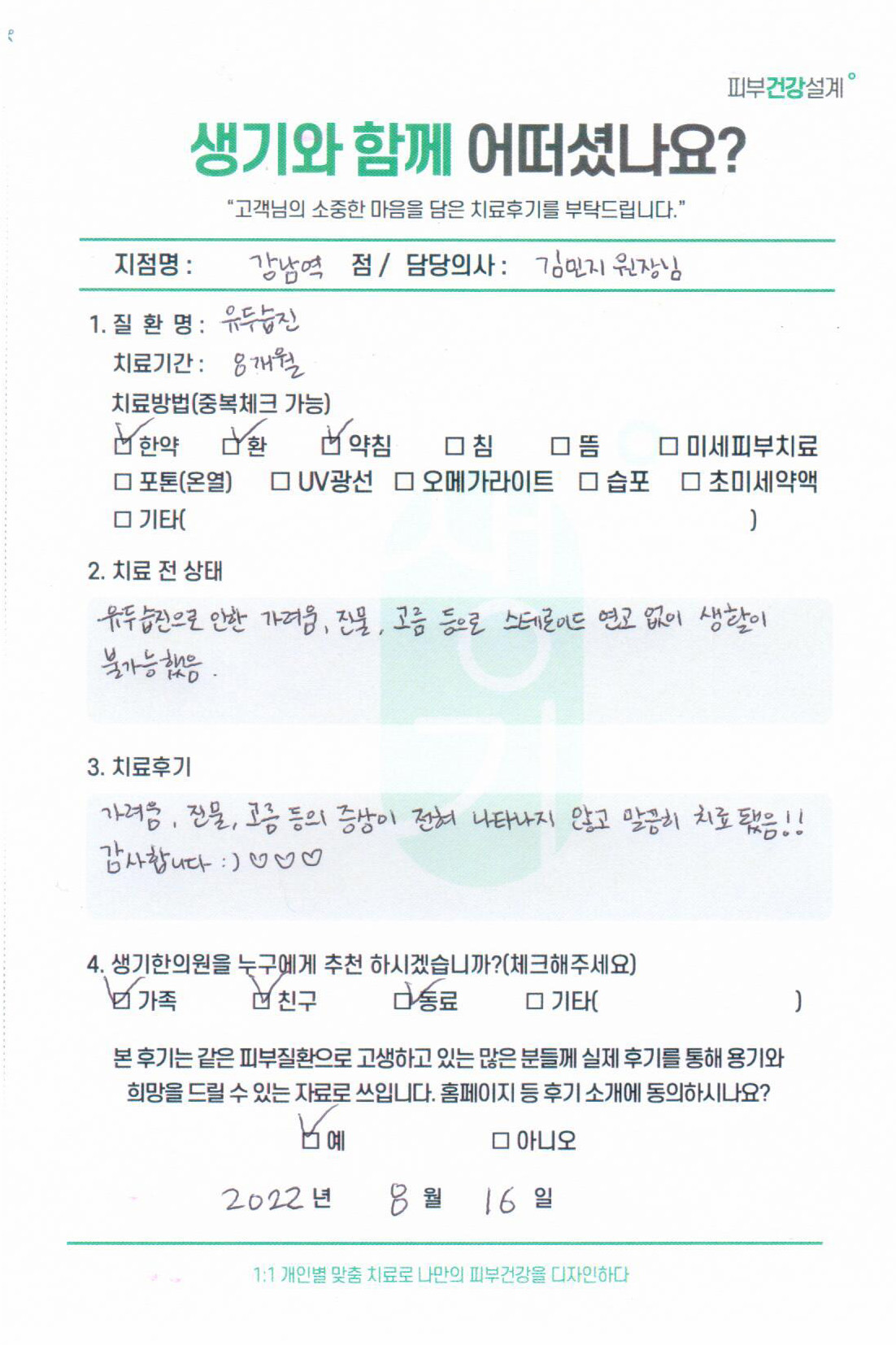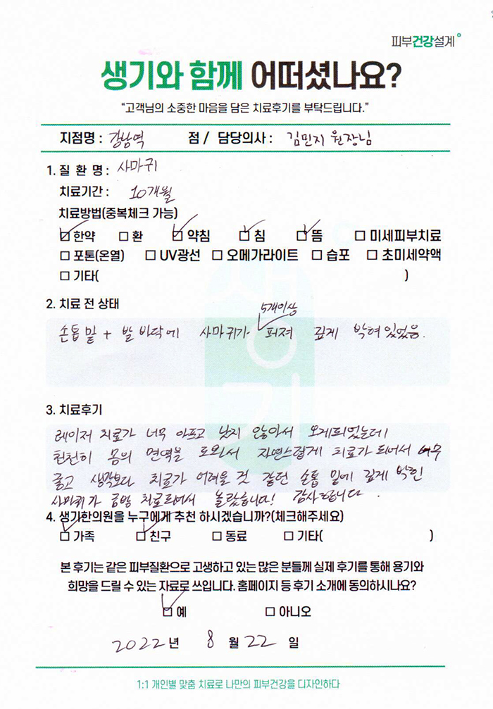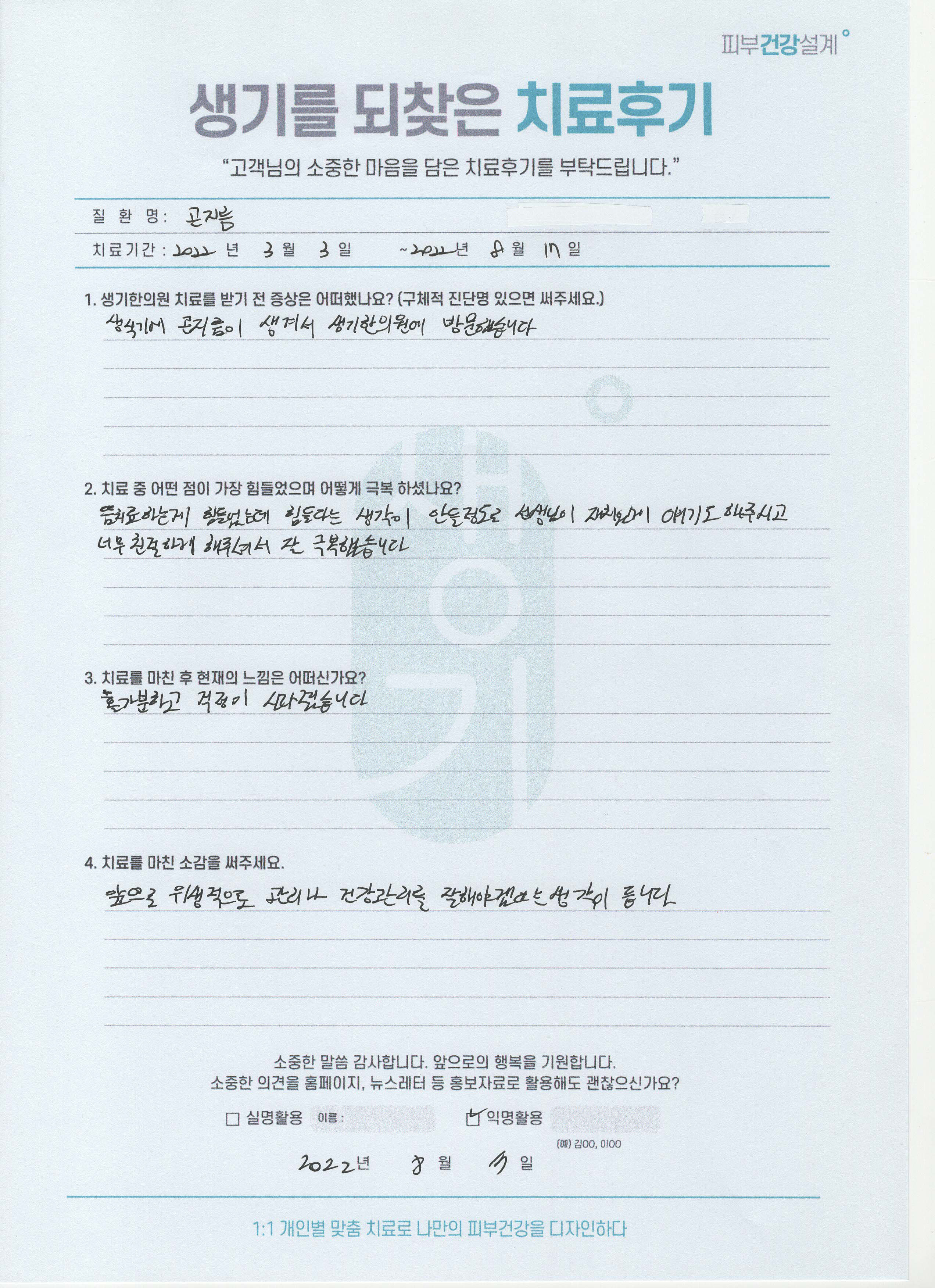 생기한의원과 함께하신 생생한 자필 및 영상 후기를 소개합니다.