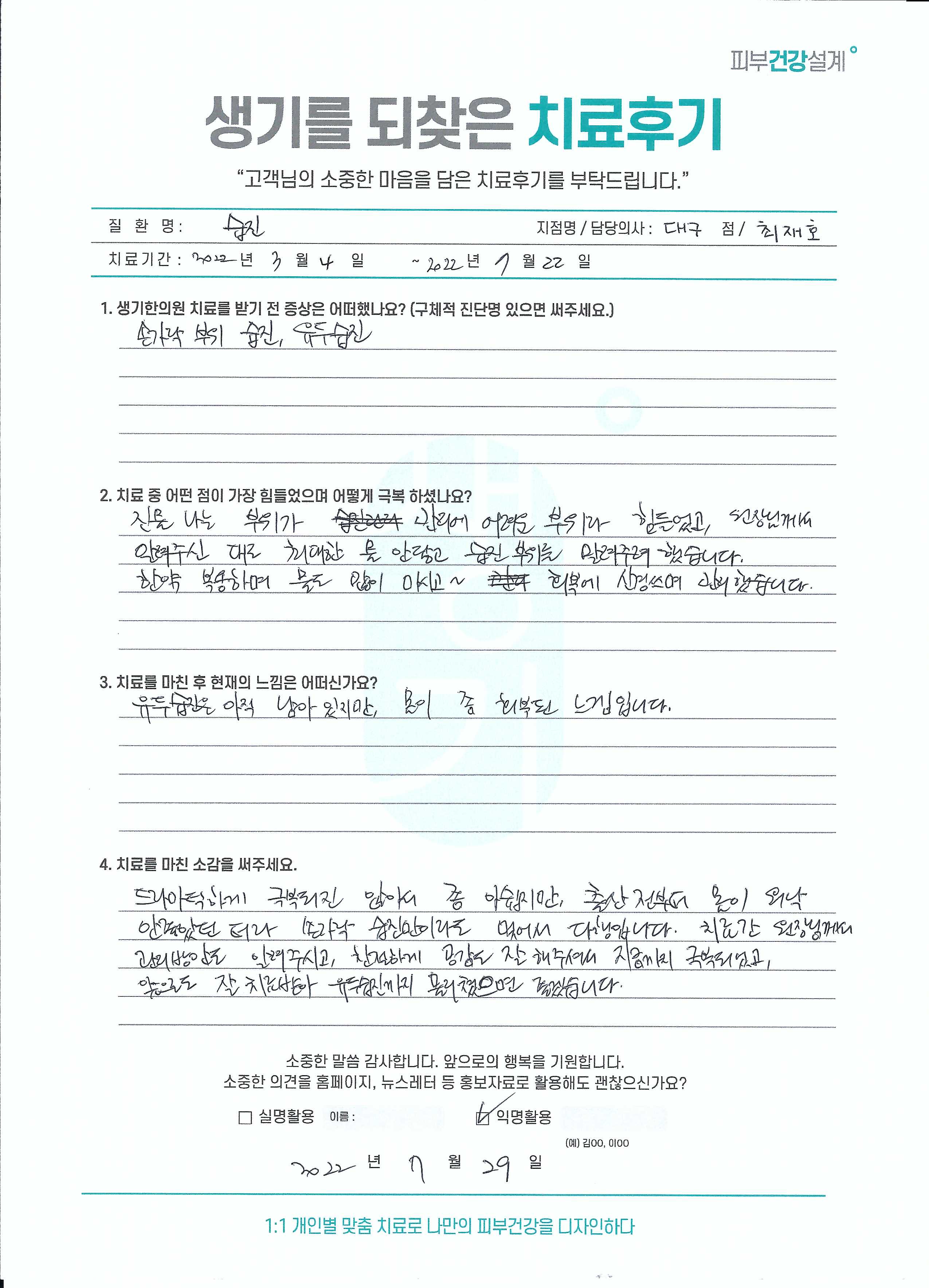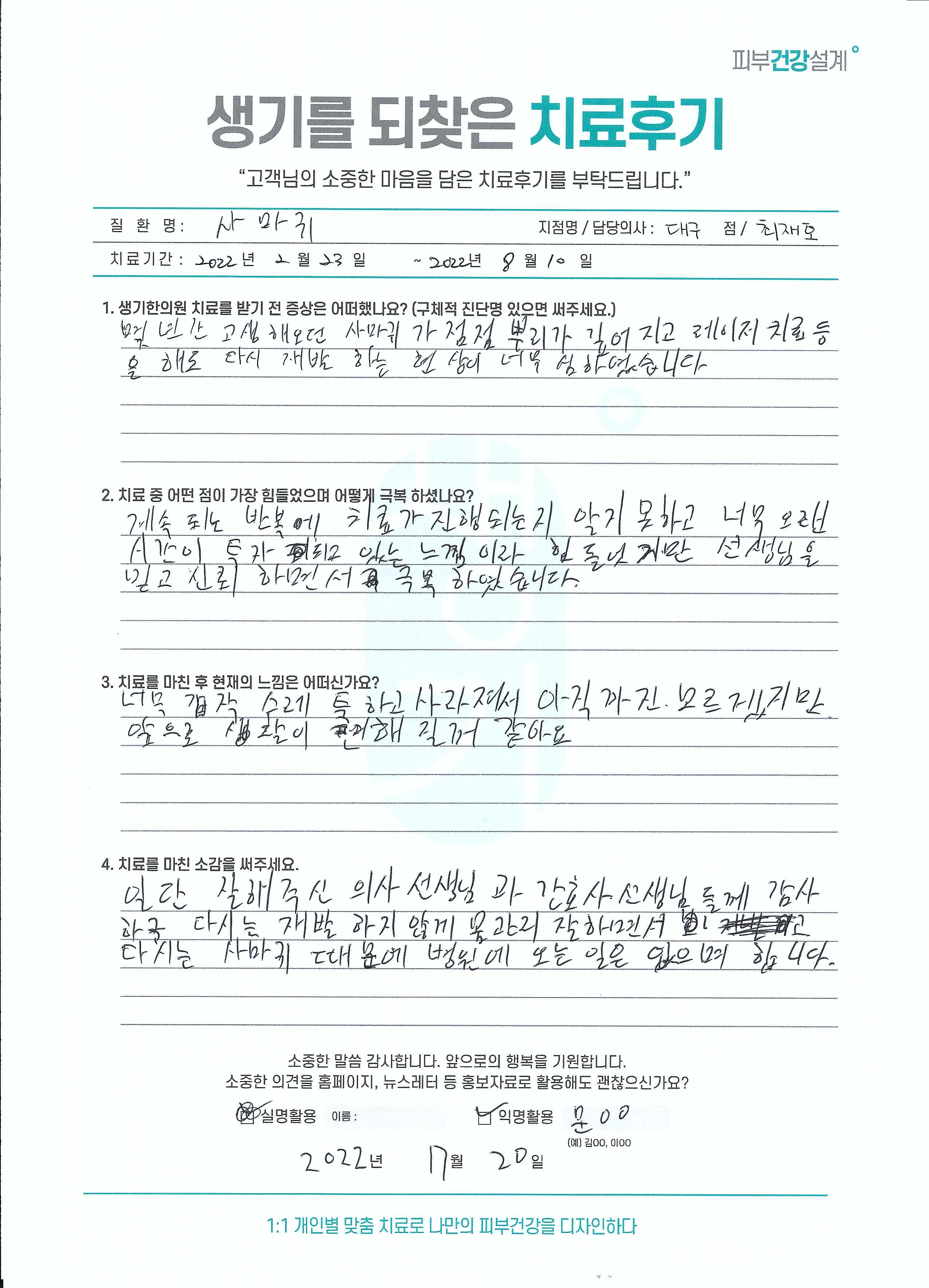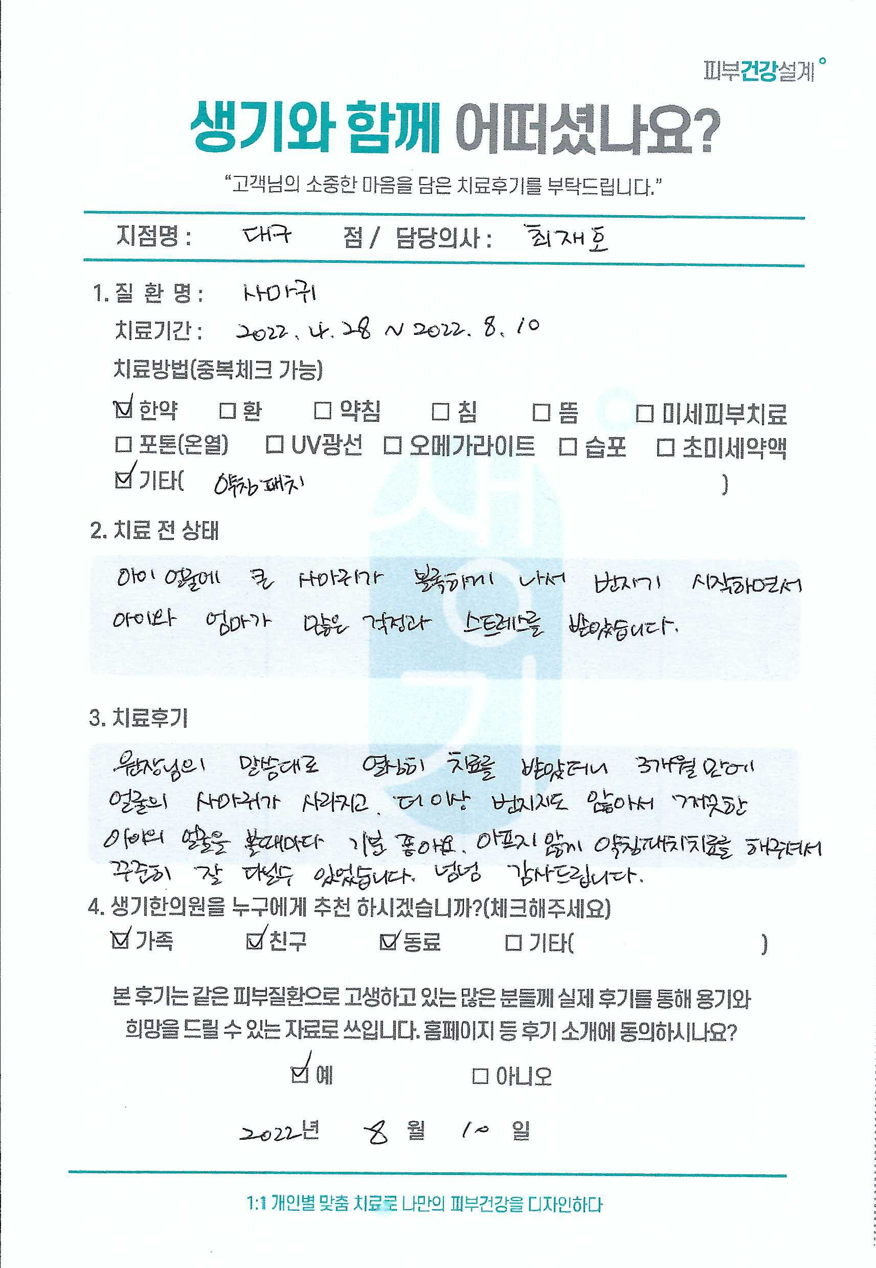 생기한의원과 함께하신 생생한 자필 및 영상 후기를 소개합니다.