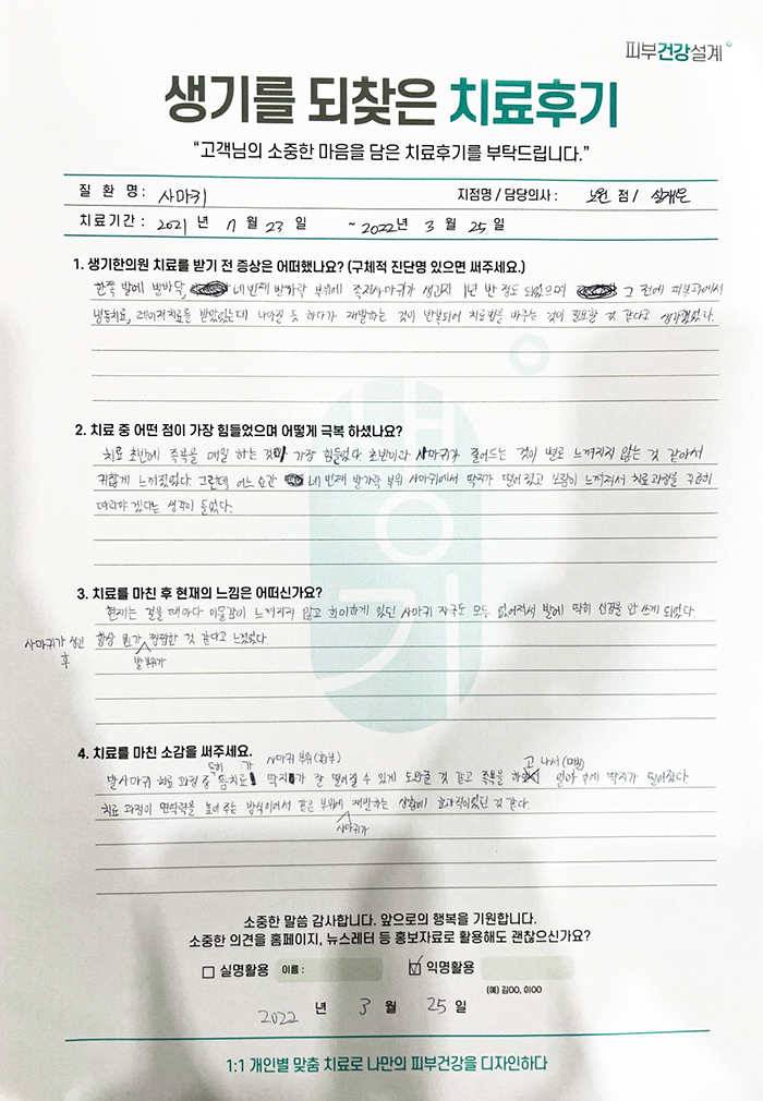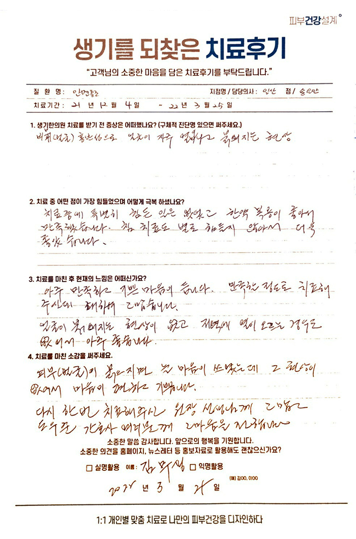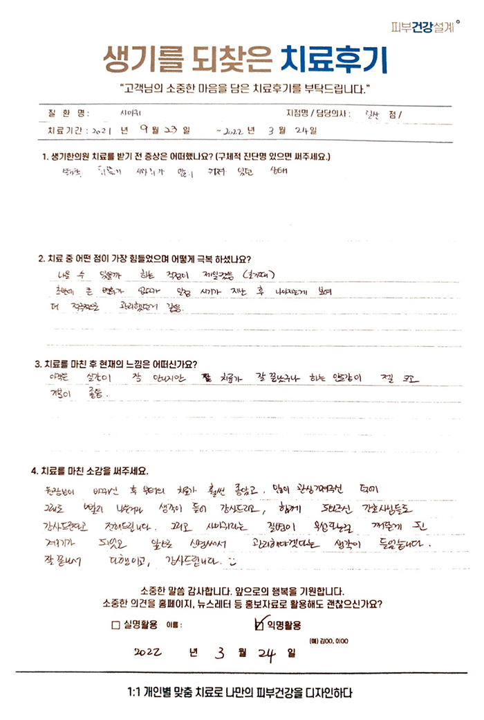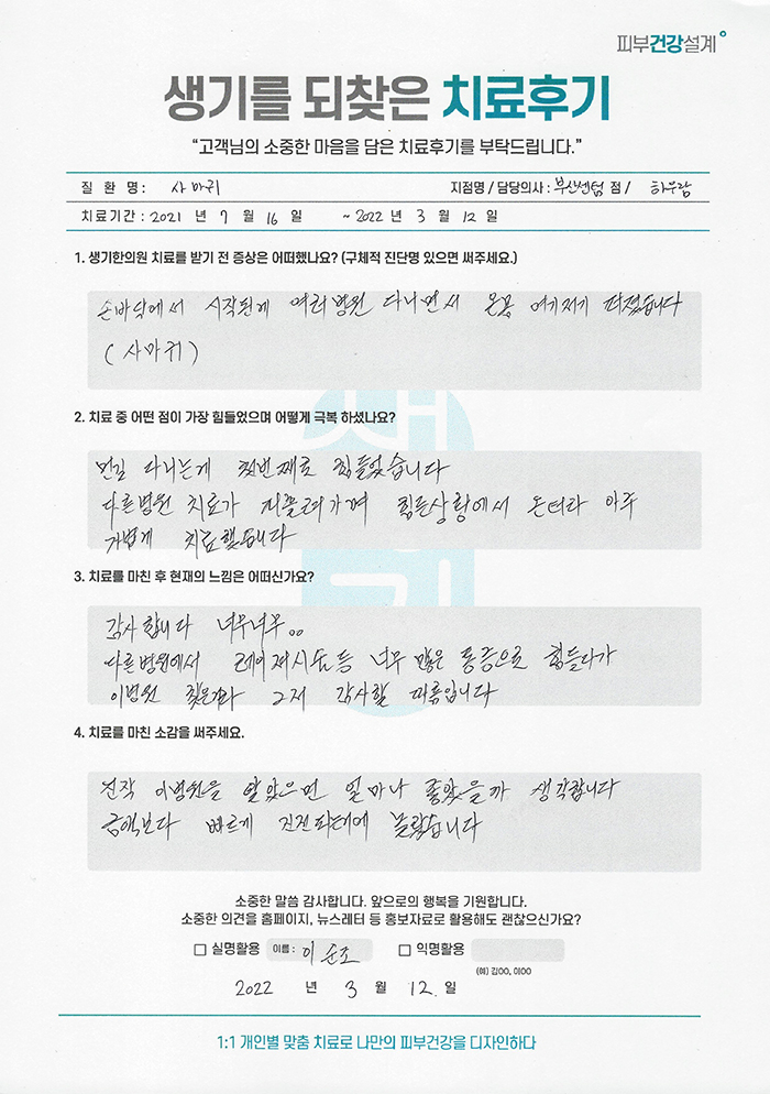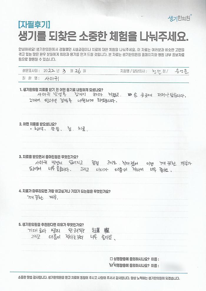 생기한의원과 함께하신 생생한 자필 및 영상 후기를 소개합니다.