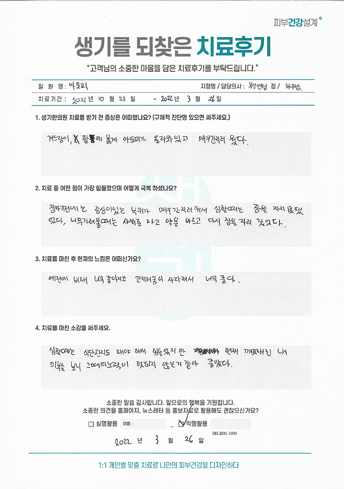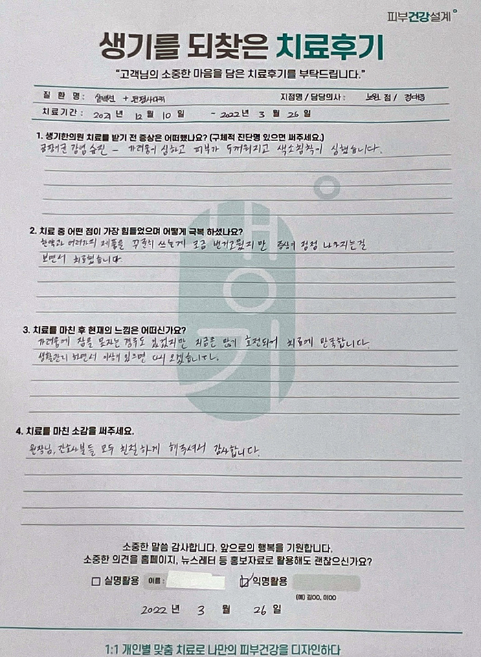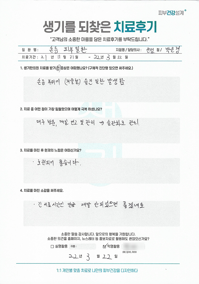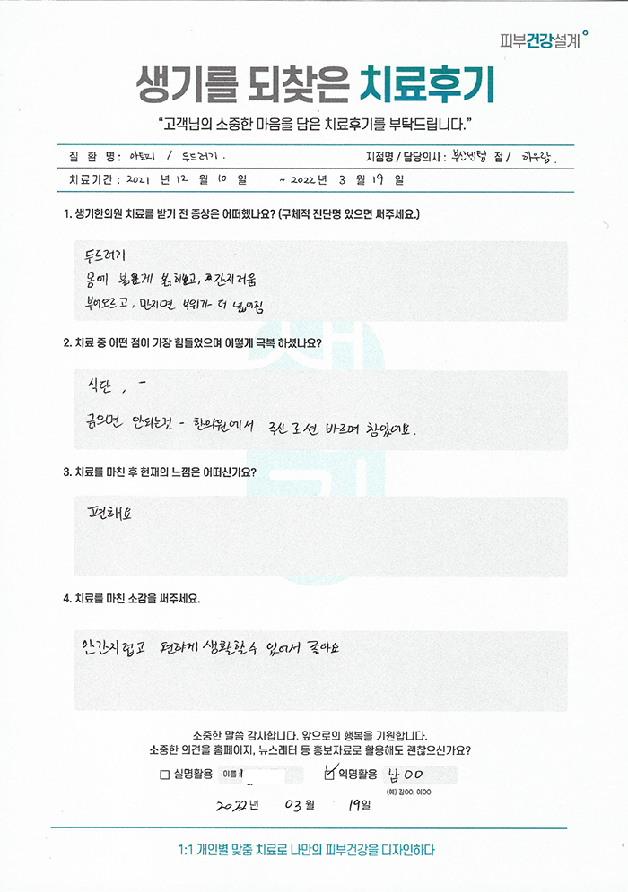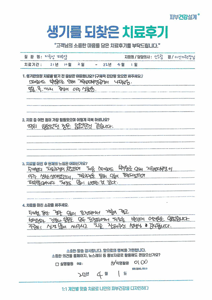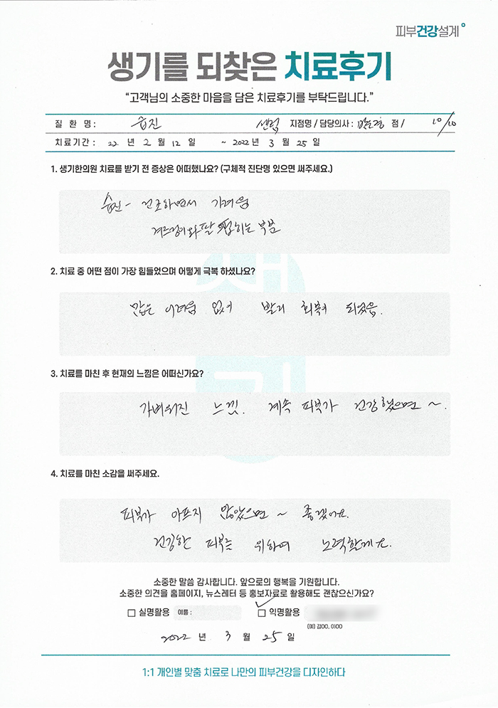 생기한의원과 함께하신 생생한 자필 및 영상 후기를 소개합니다.