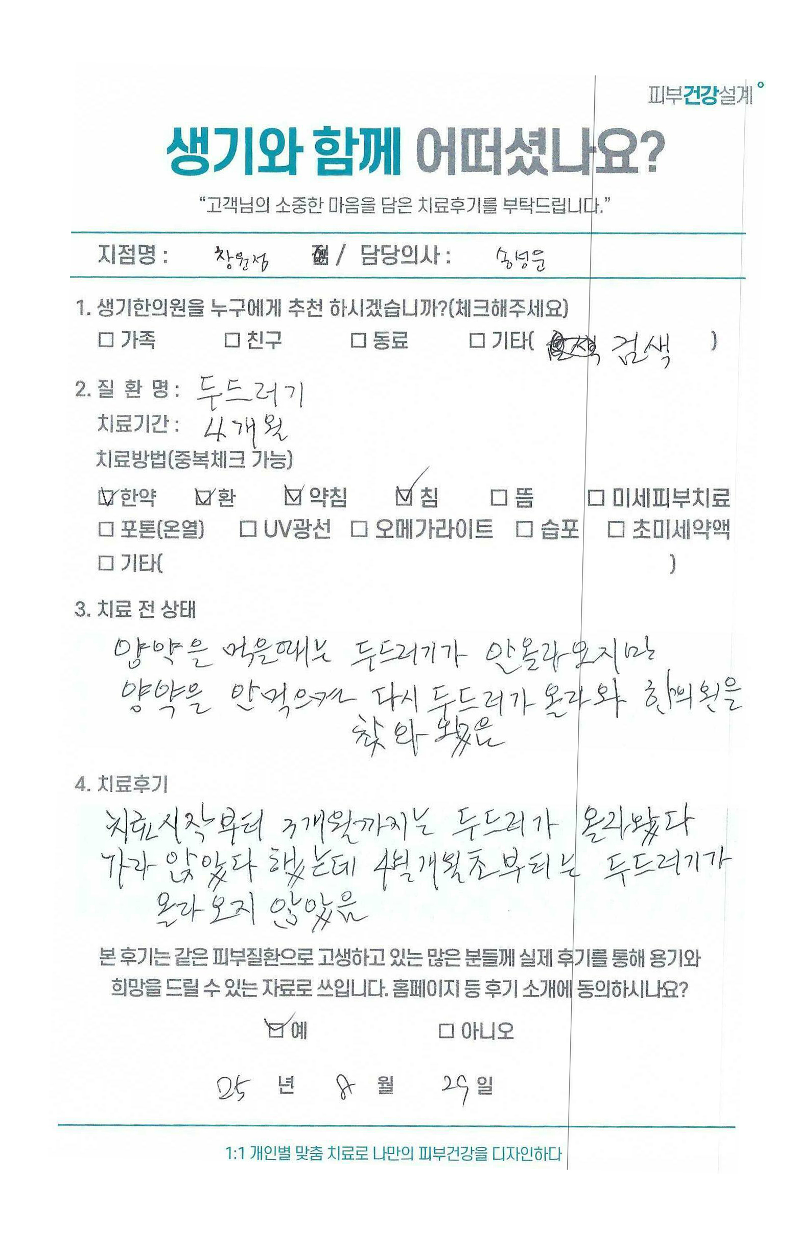 생기한의원과 함께하신 생생한 자필 및 영상 후기를 소개합니다.