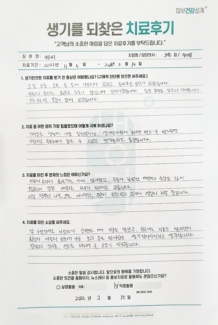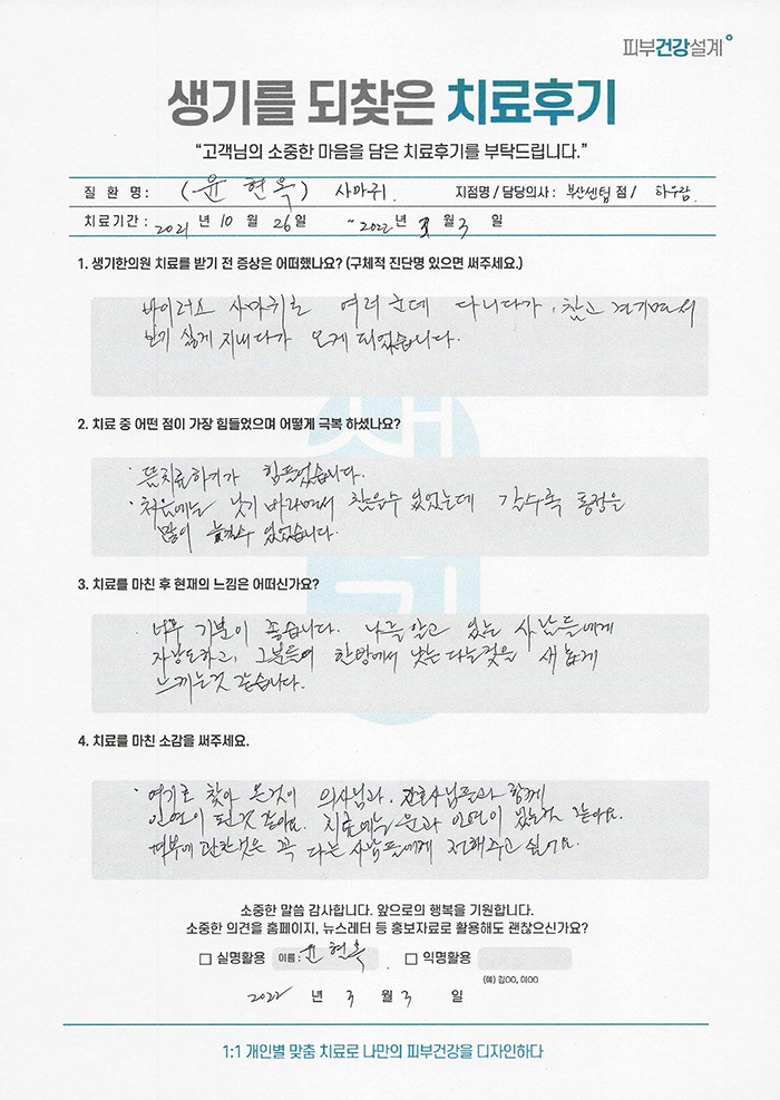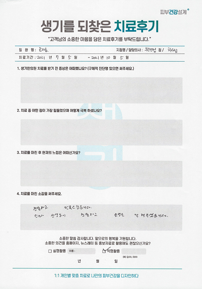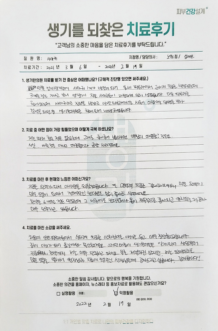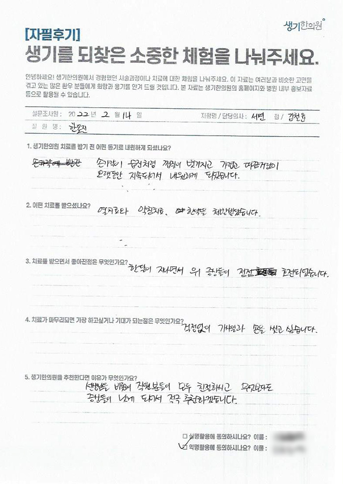생기한의원과 함께하신 생생한 자필 및 영상 후기를 소개합니다.