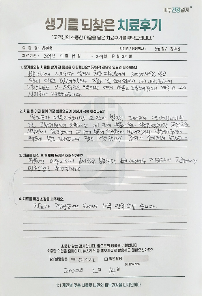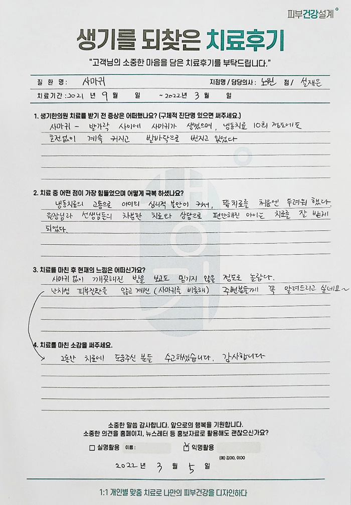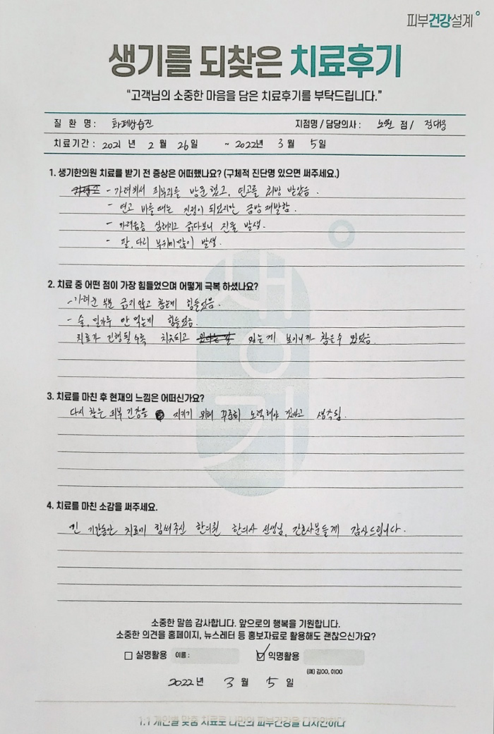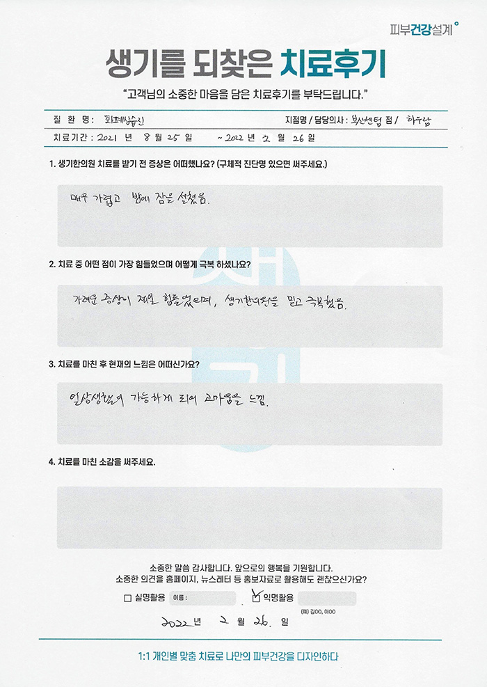생기한의원과 함께하신 생생한 자필 및 영상 후기를 소개합니다.