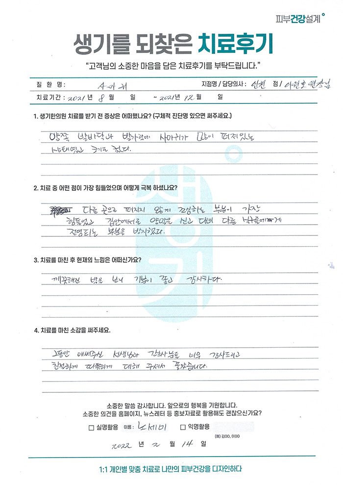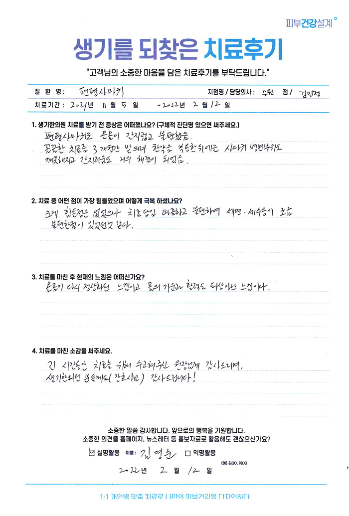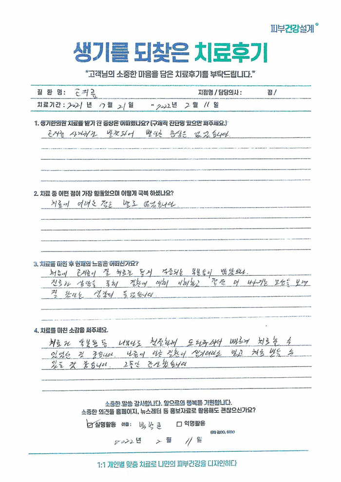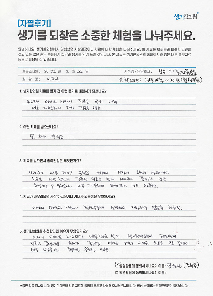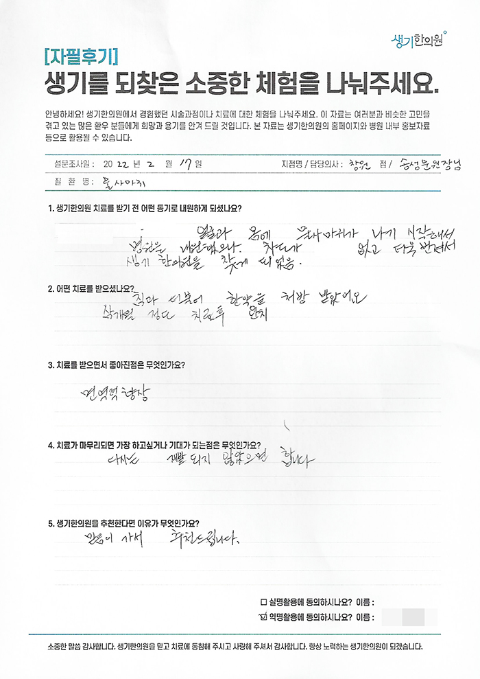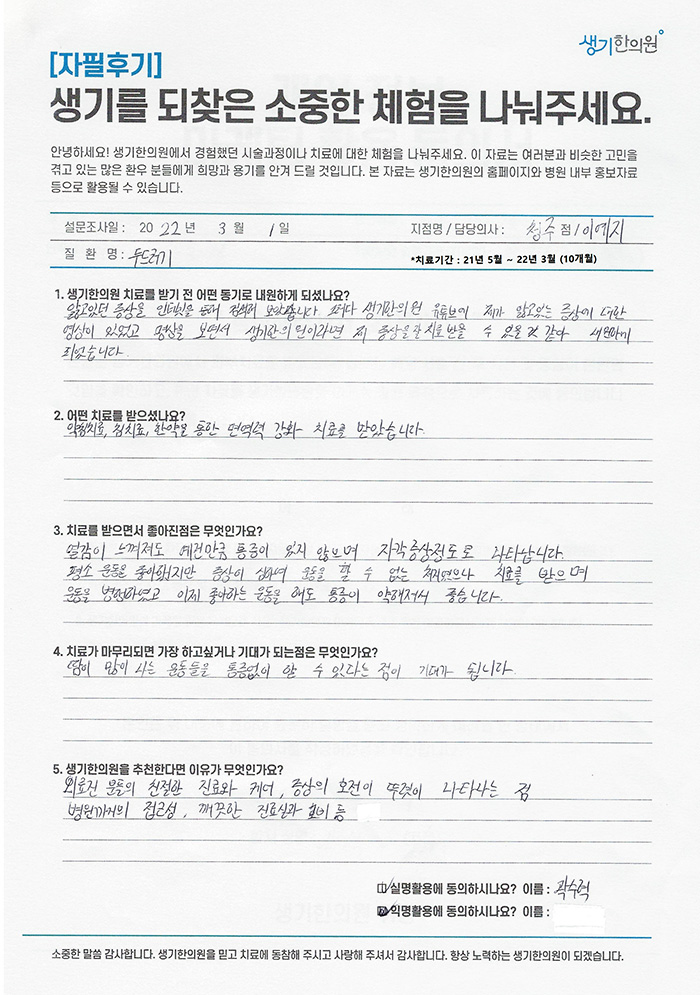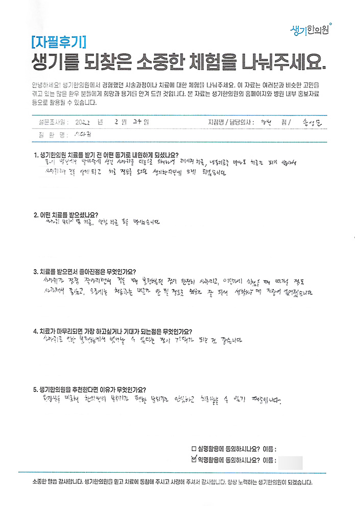 생기한의원과 함께하신 생생한 자필 및 영상 후기를 소개합니다.