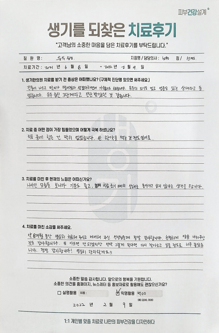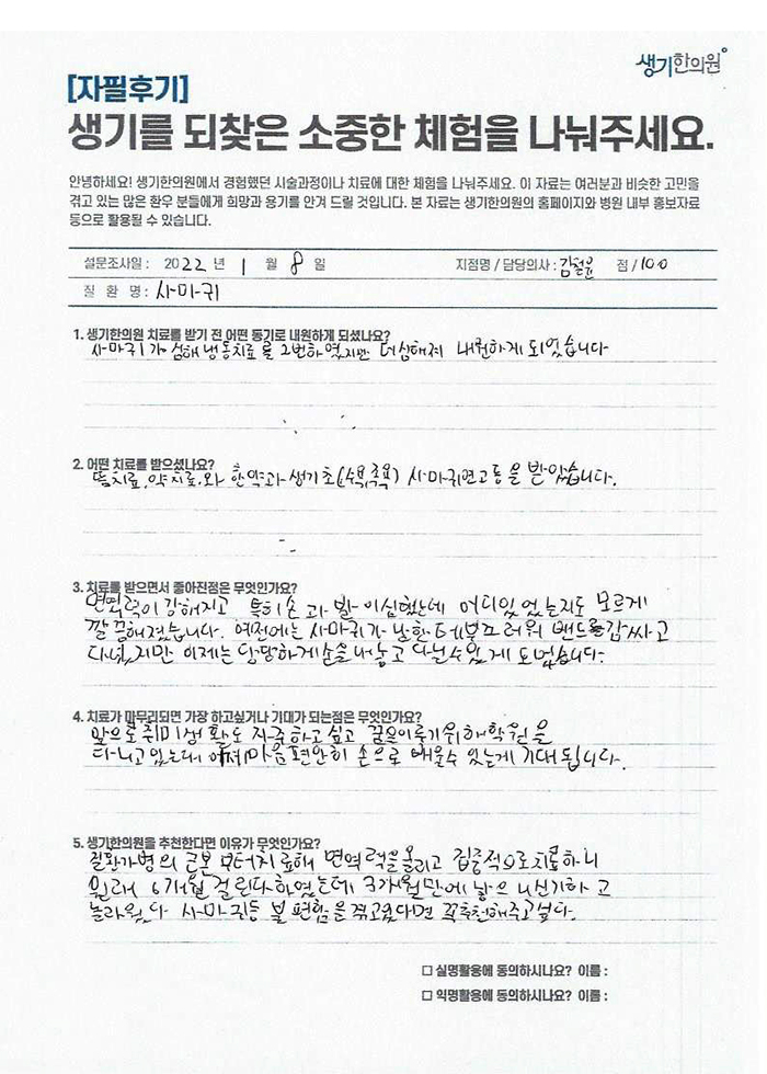생기한의원과 함께하신 생생한 자필 및 영상 후기를 소개합니다.