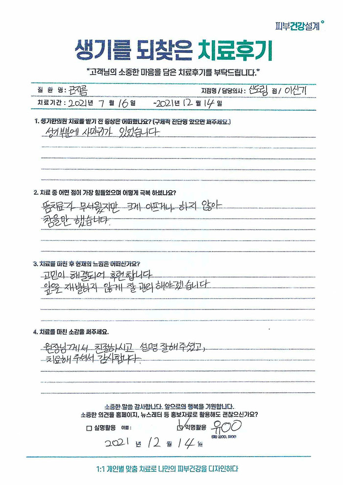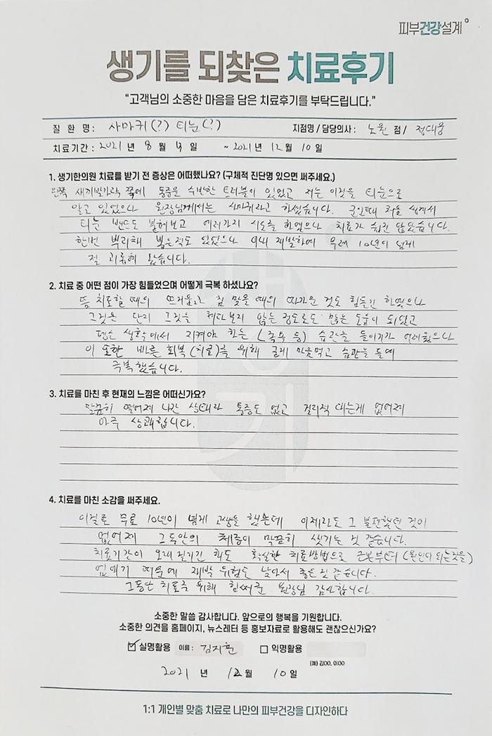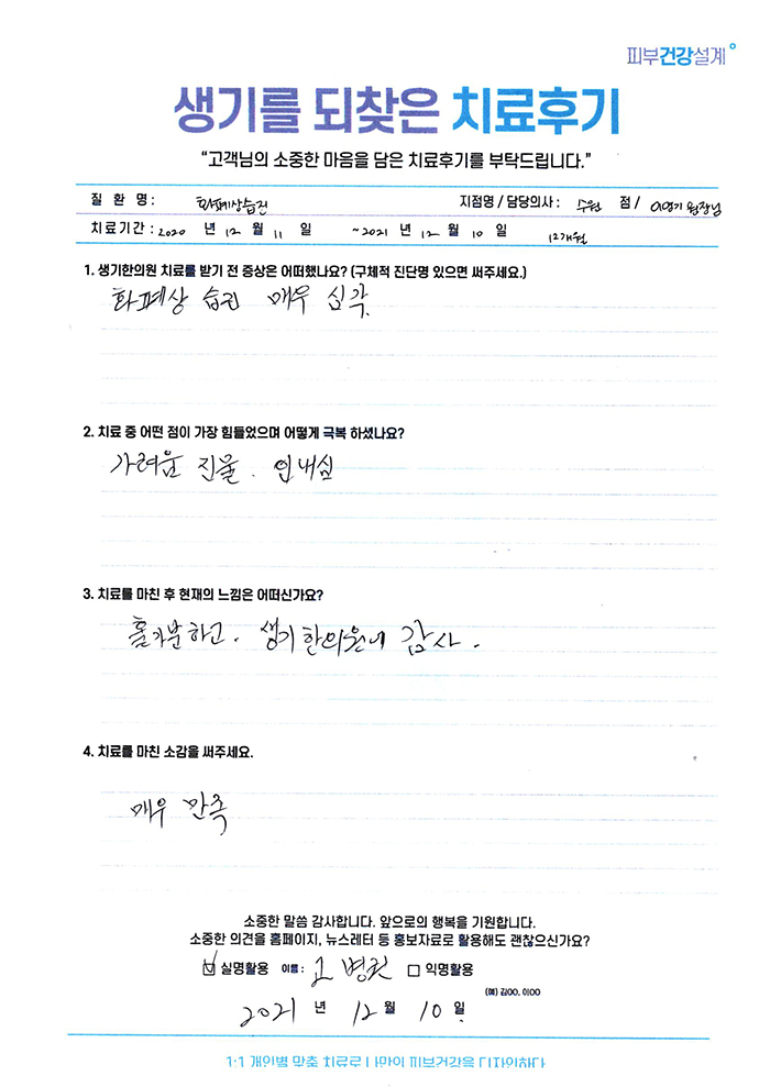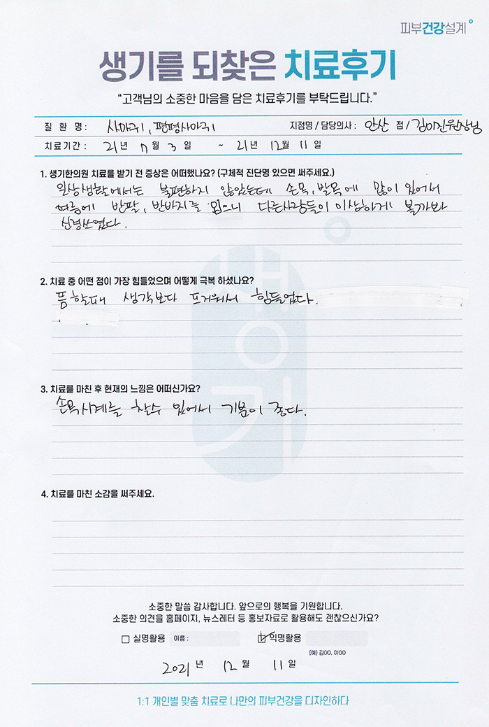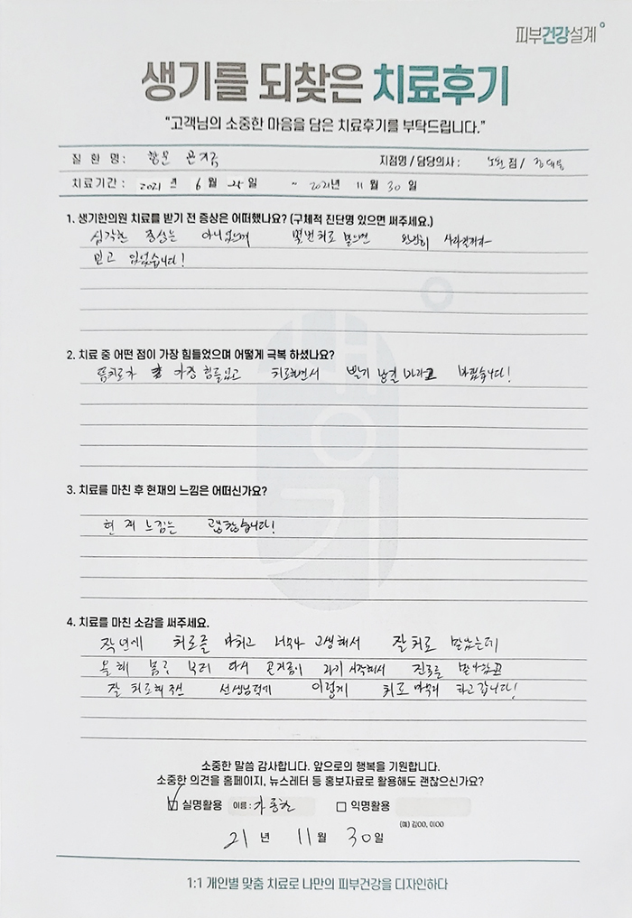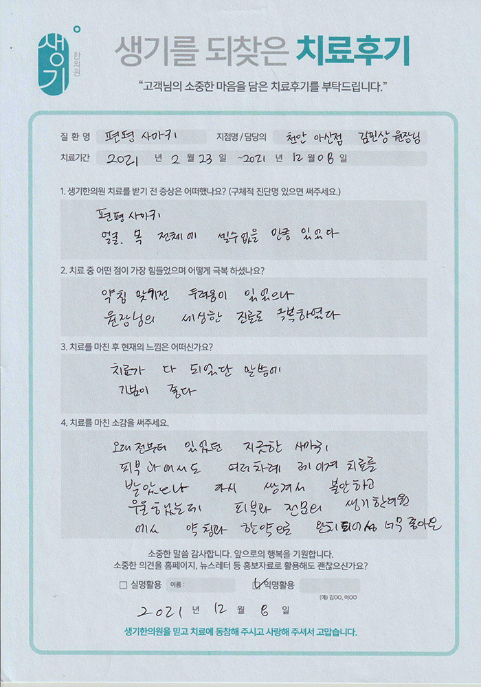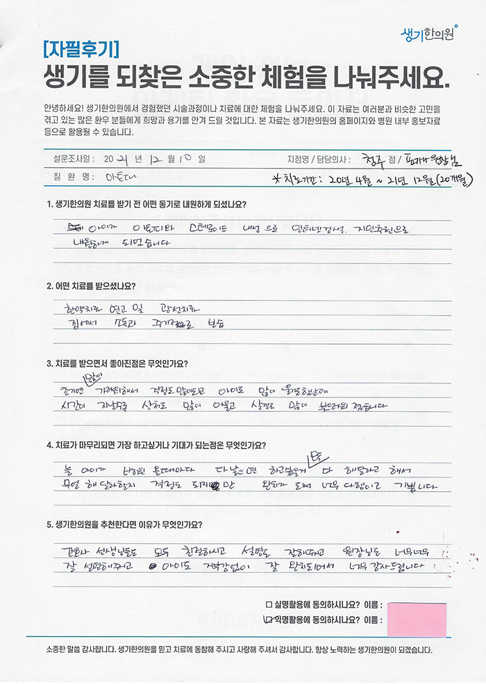 생기한의원과 함께하신 생생한 자필 및 영상 후기를 소개합니다.