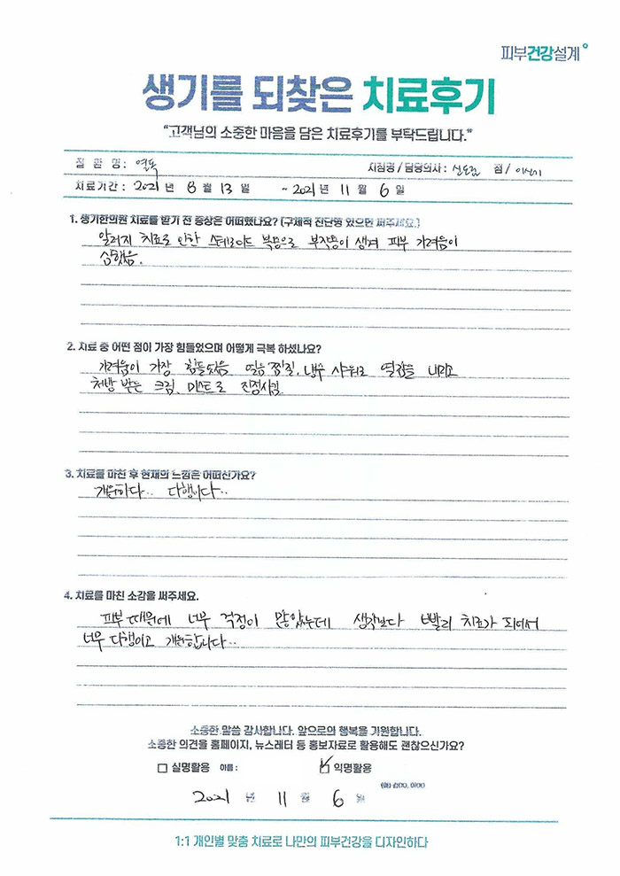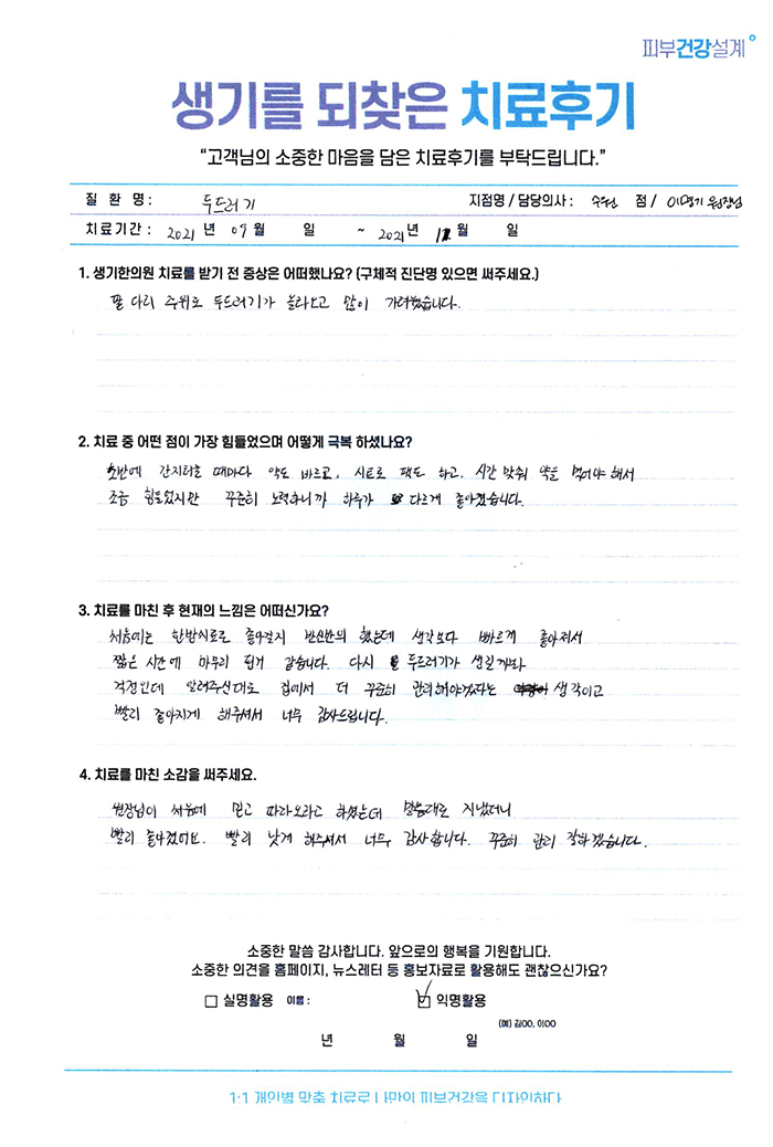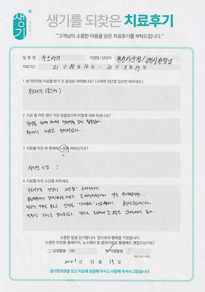 생기한의원과 함께하신 생생한 자필 및 영상 후기를 소개합니다.
