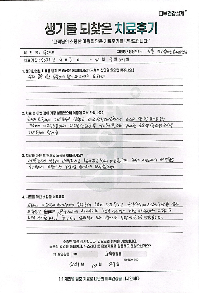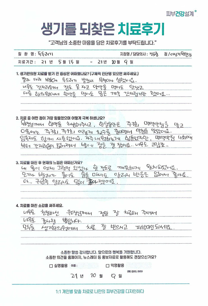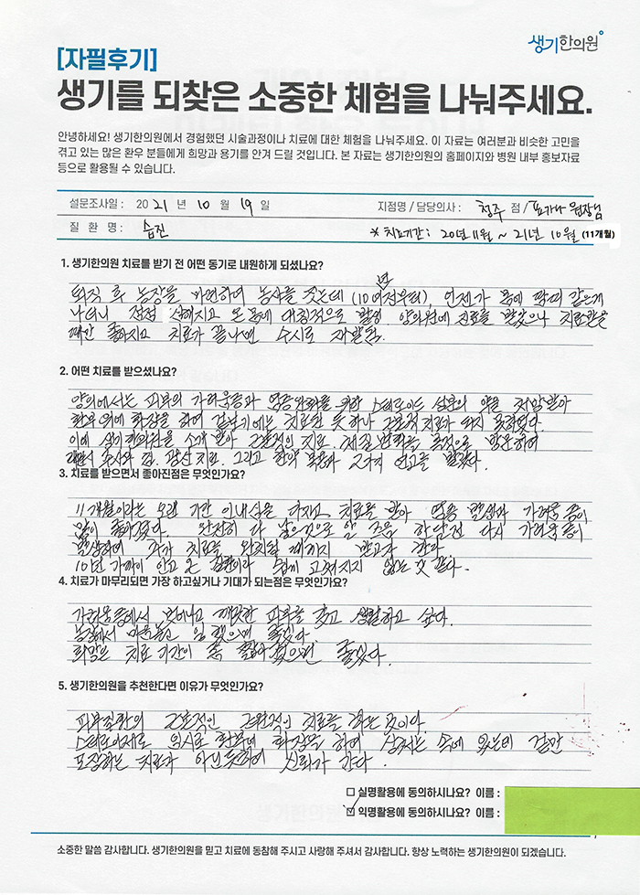 생기한의원과 함께하신 생생한 자필 및 영상 후기를 소개합니다.