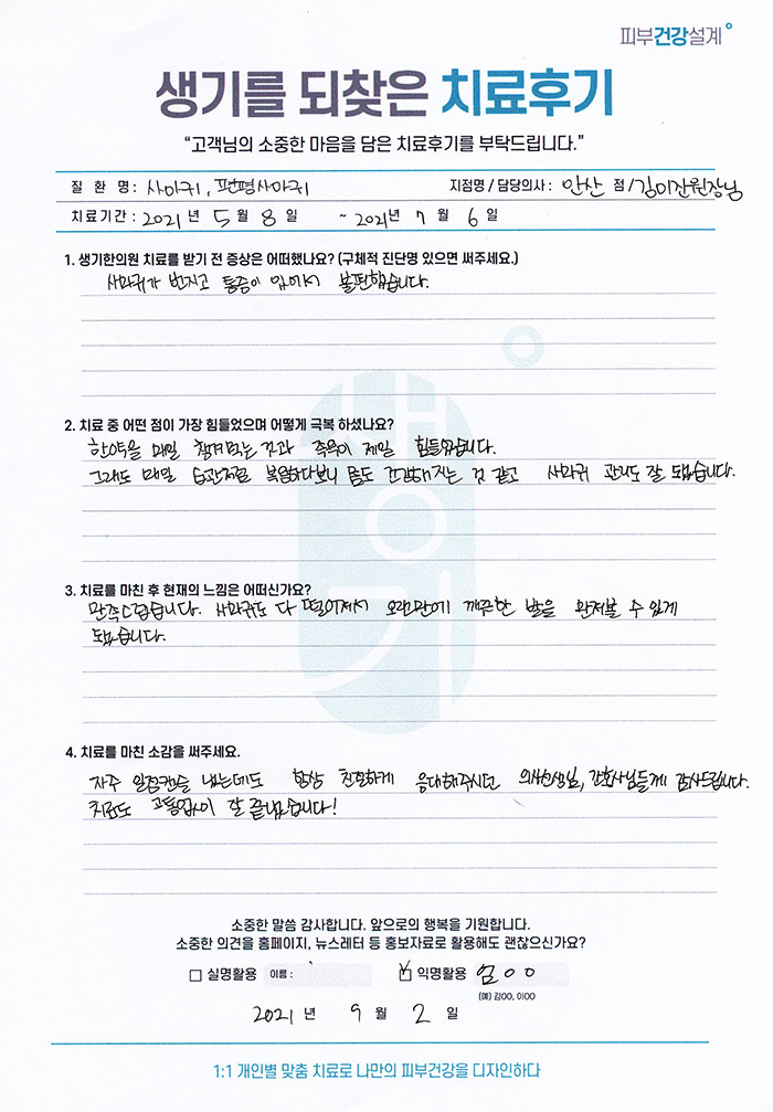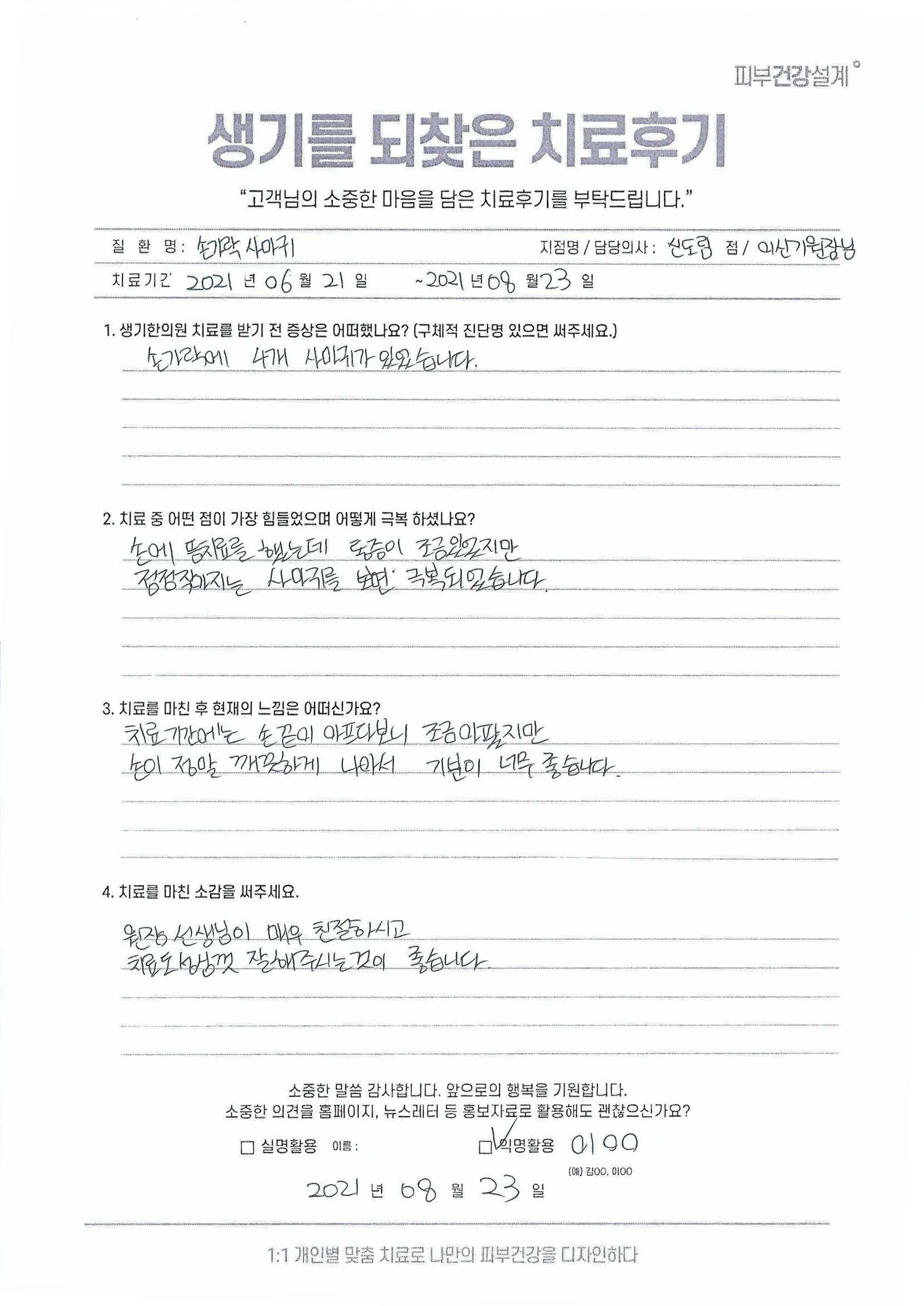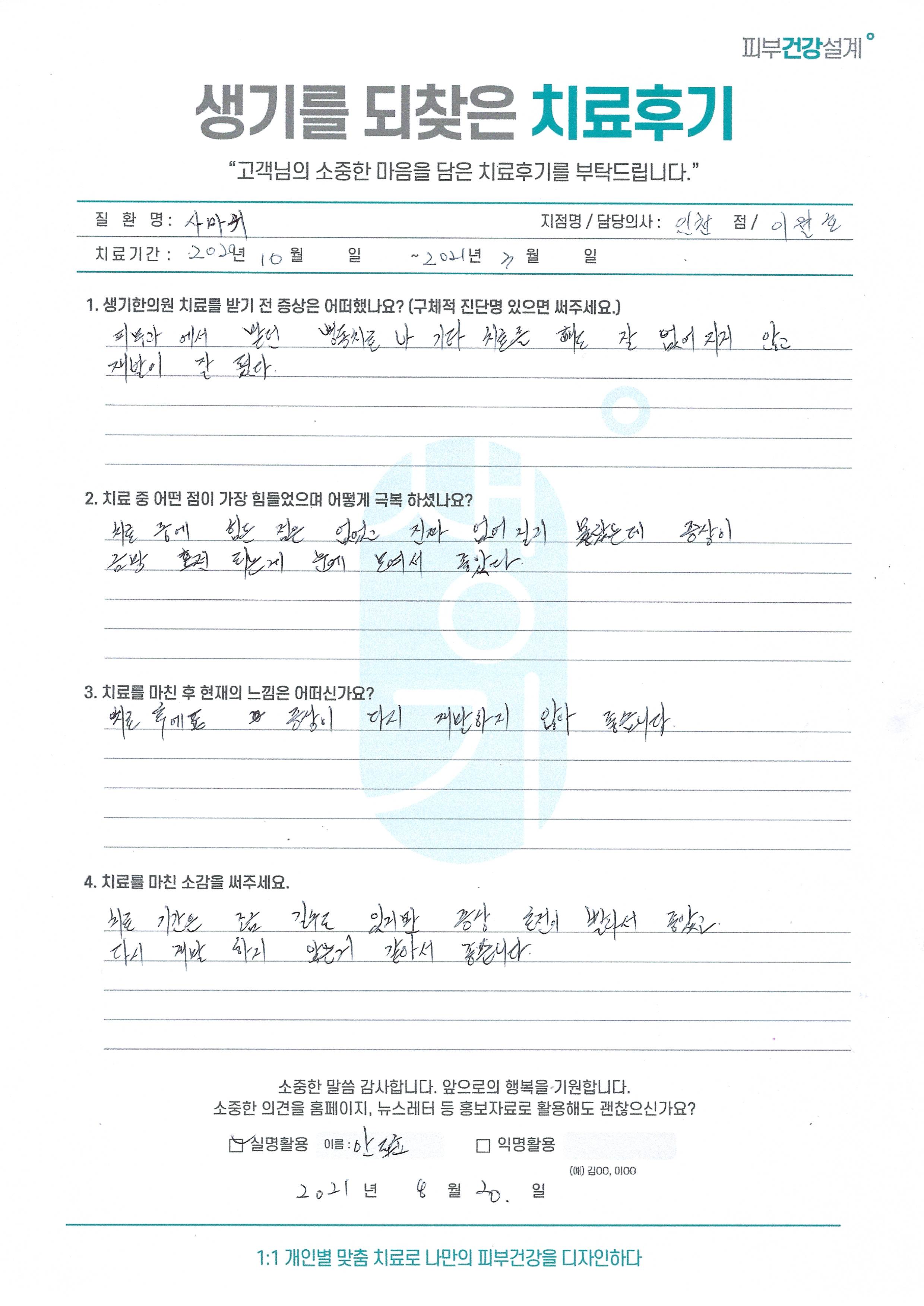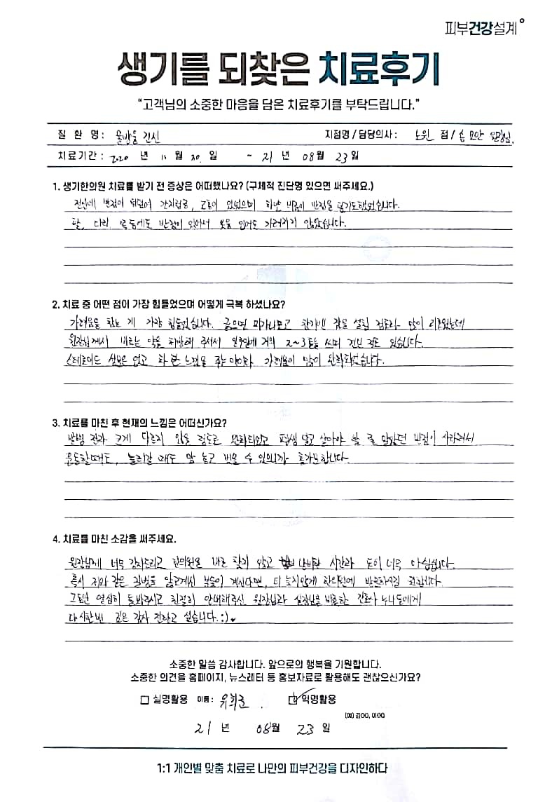 생기한의원과 함께하신 생생한 자필 및 영상 후기를 소개합니다.