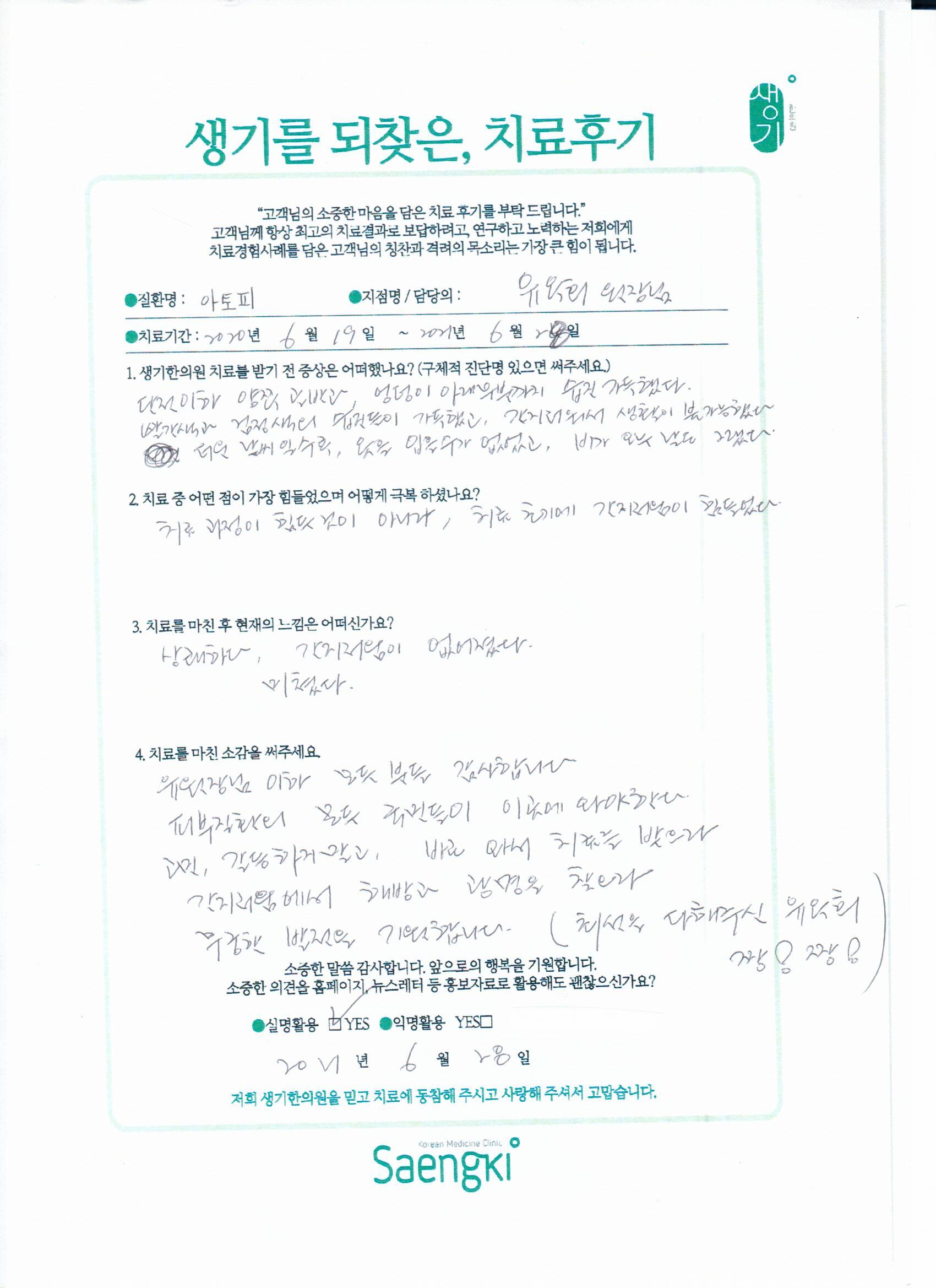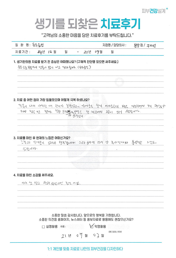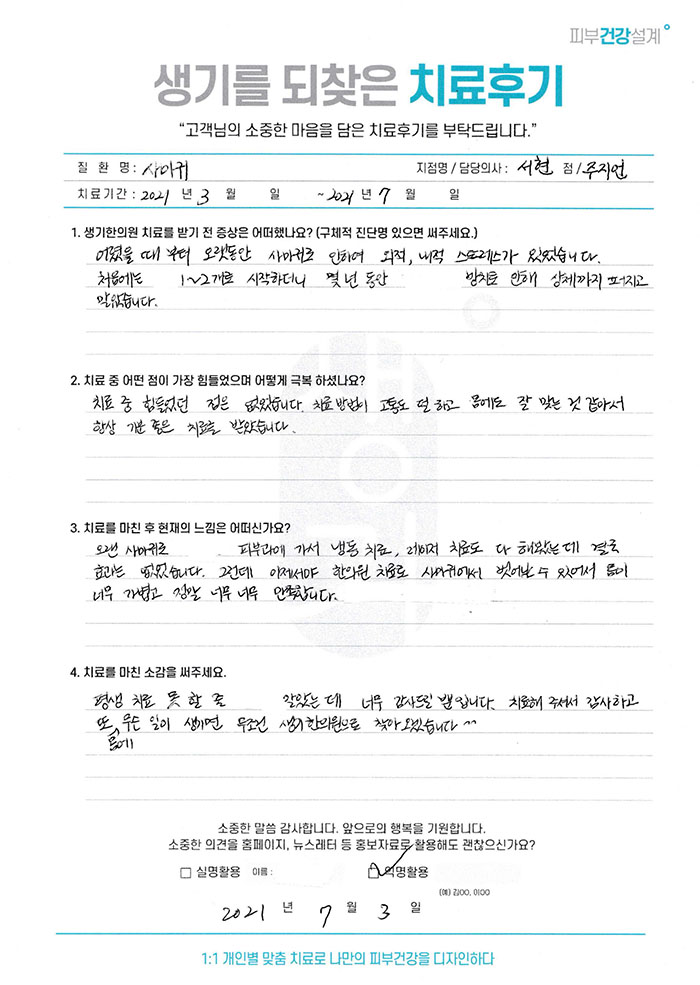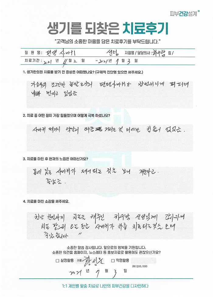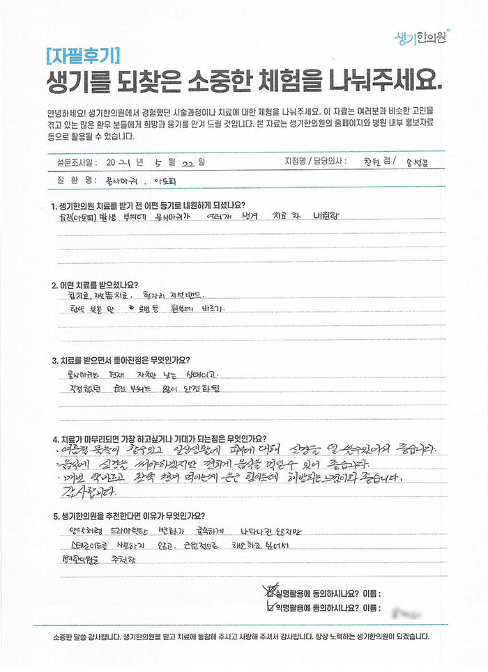 생기한의원과 함께하신 생생한 자필 및 영상 후기를 소개합니다.