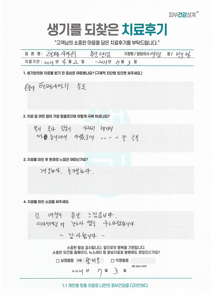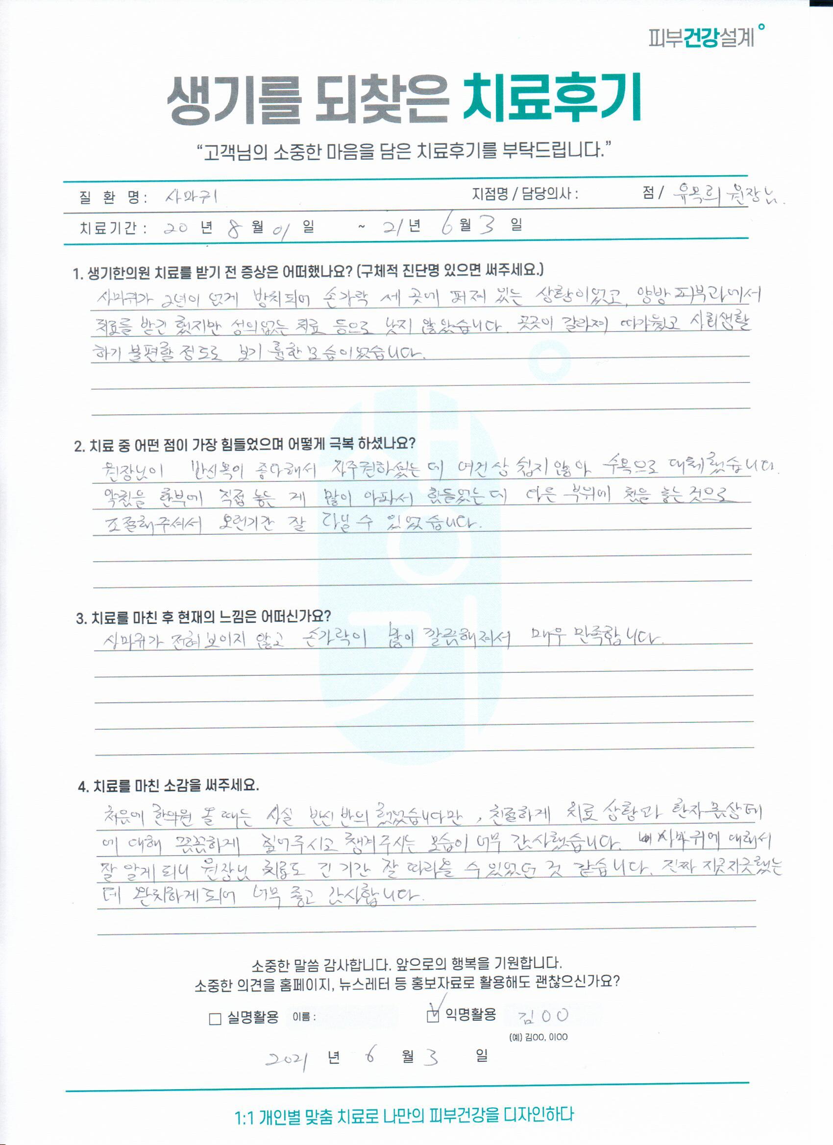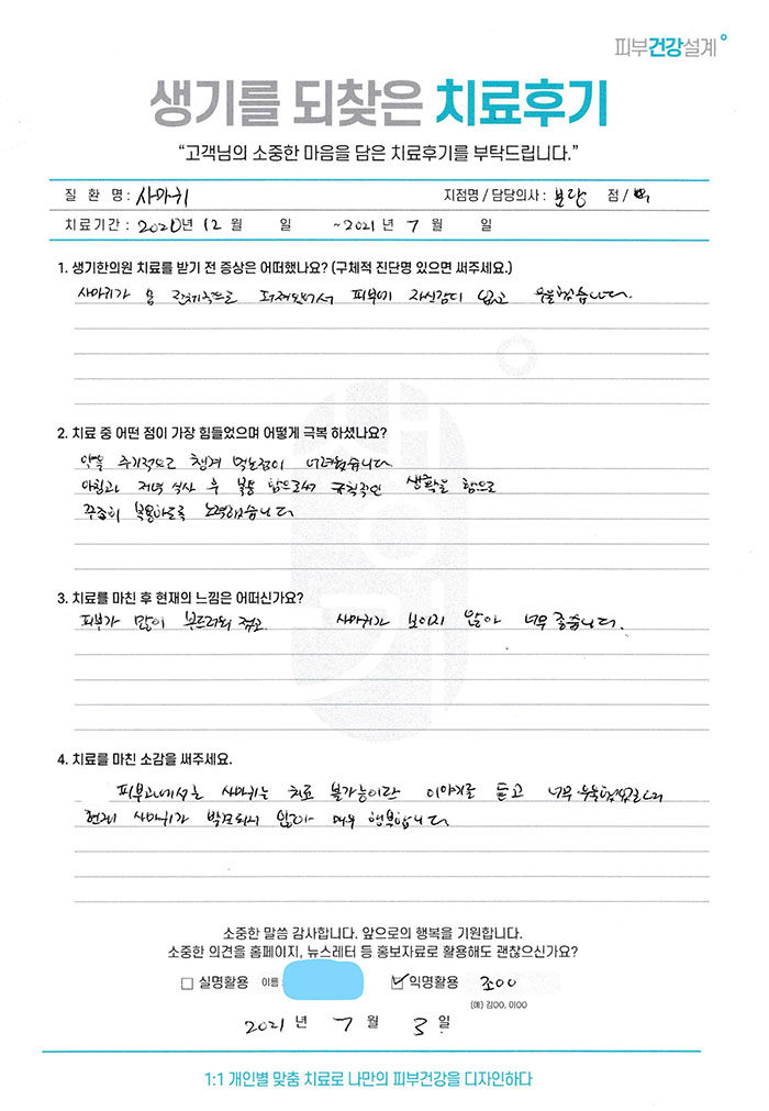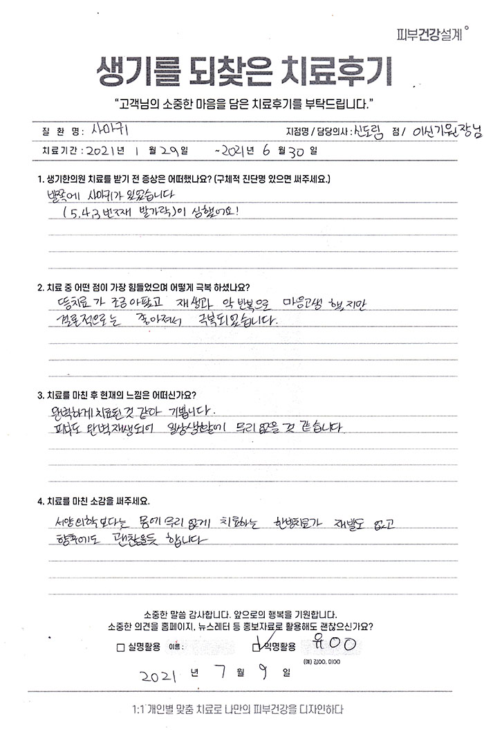 생기한의원과 함께하신 생생한 자필 및 영상 후기를 소개합니다.