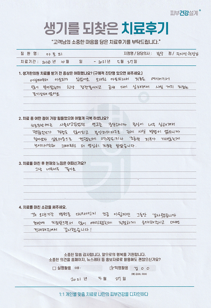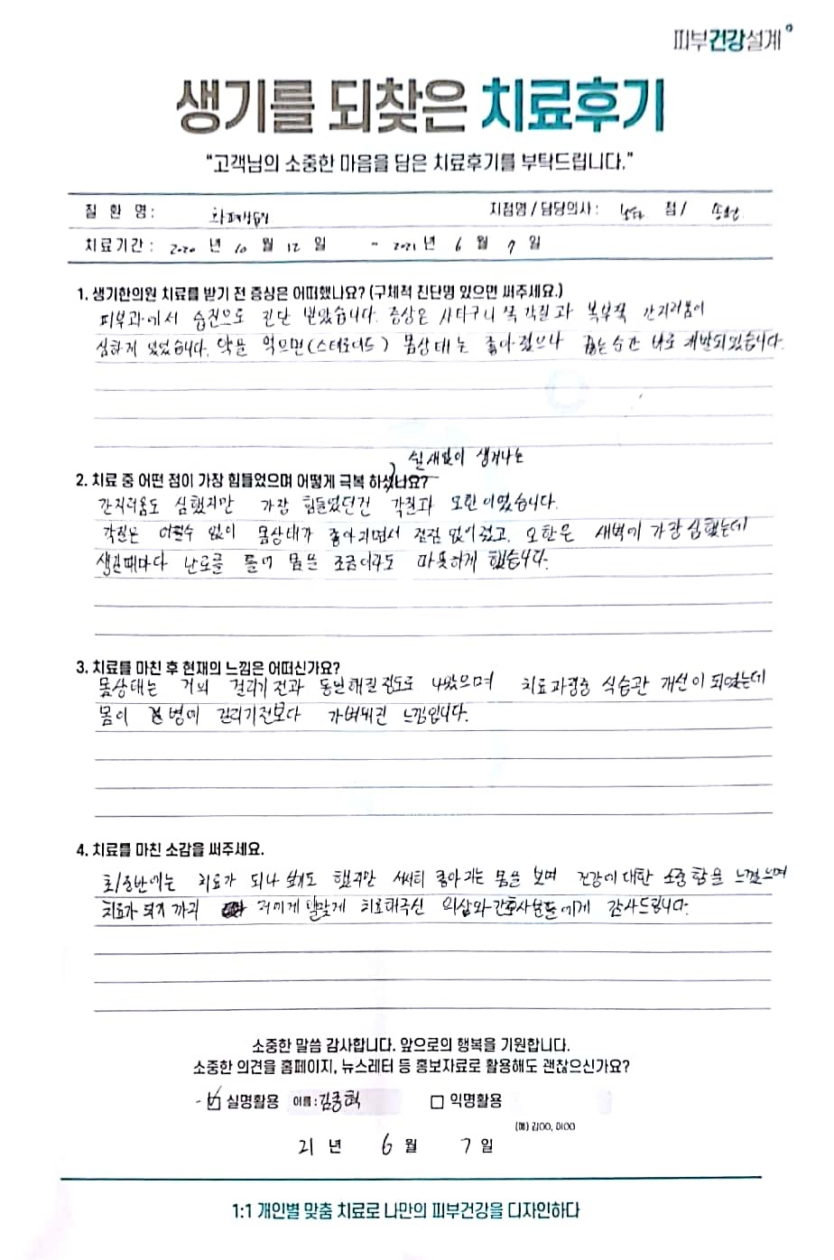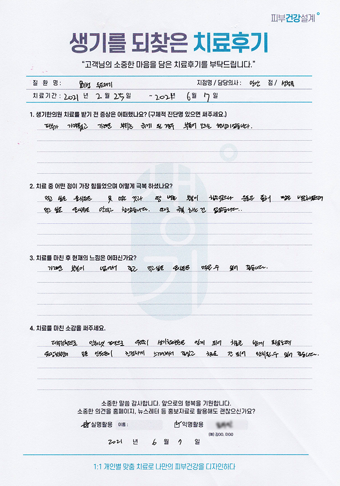 생기한의원과 함께하신 생생한 자필 및 영상 후기를 소개합니다.