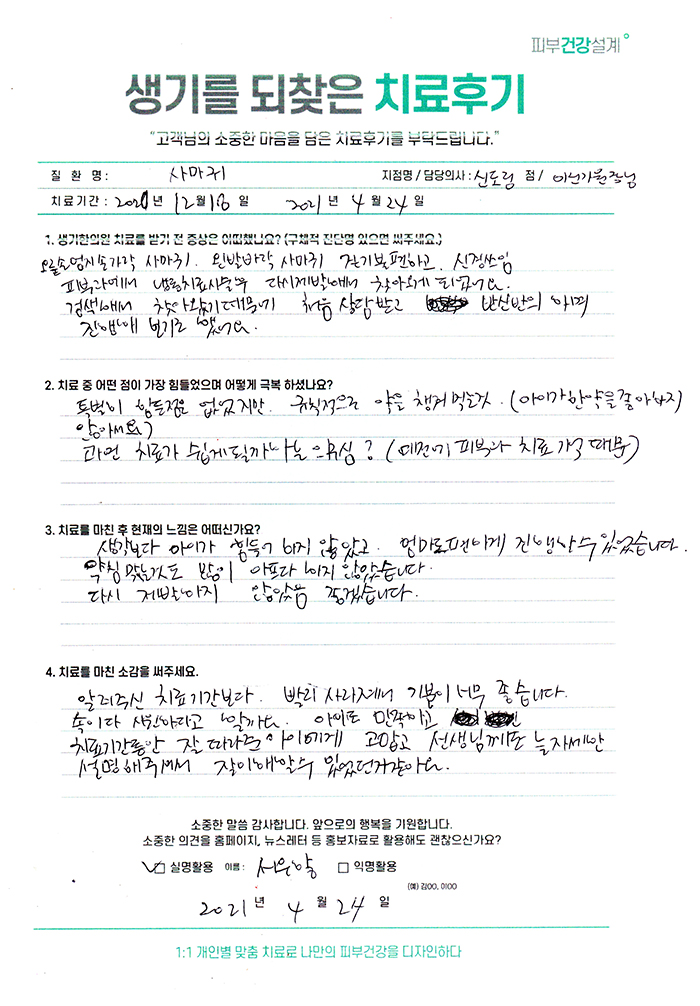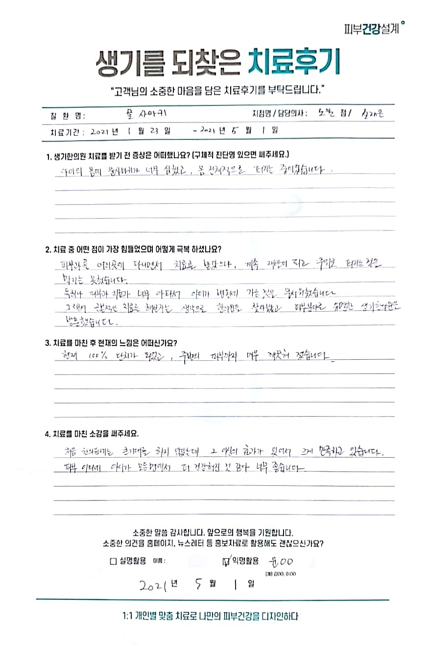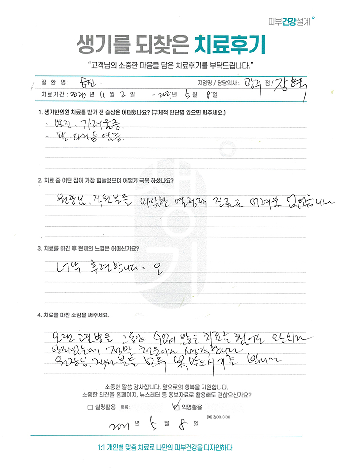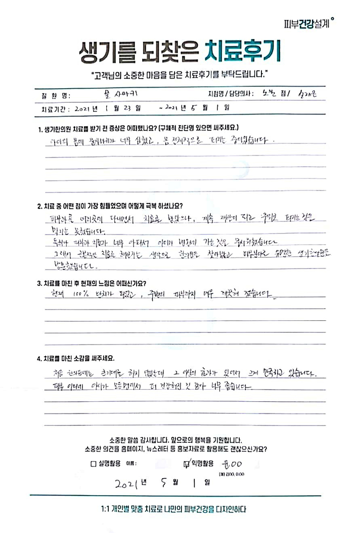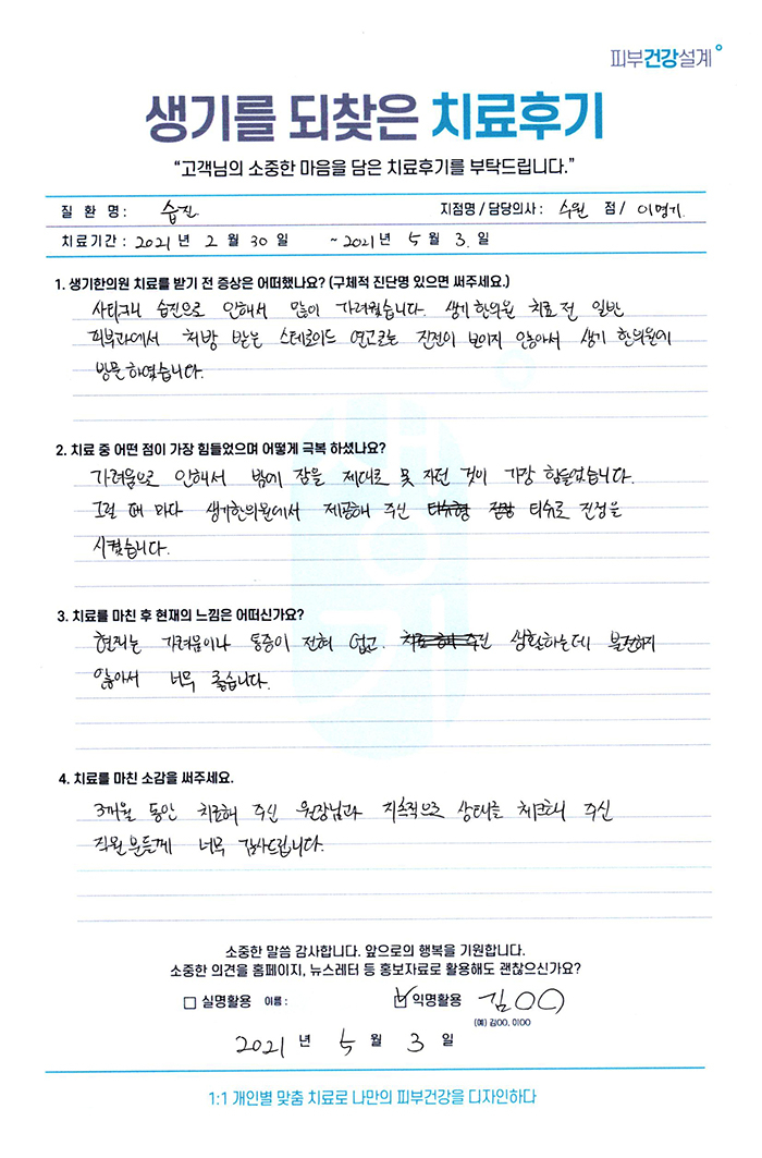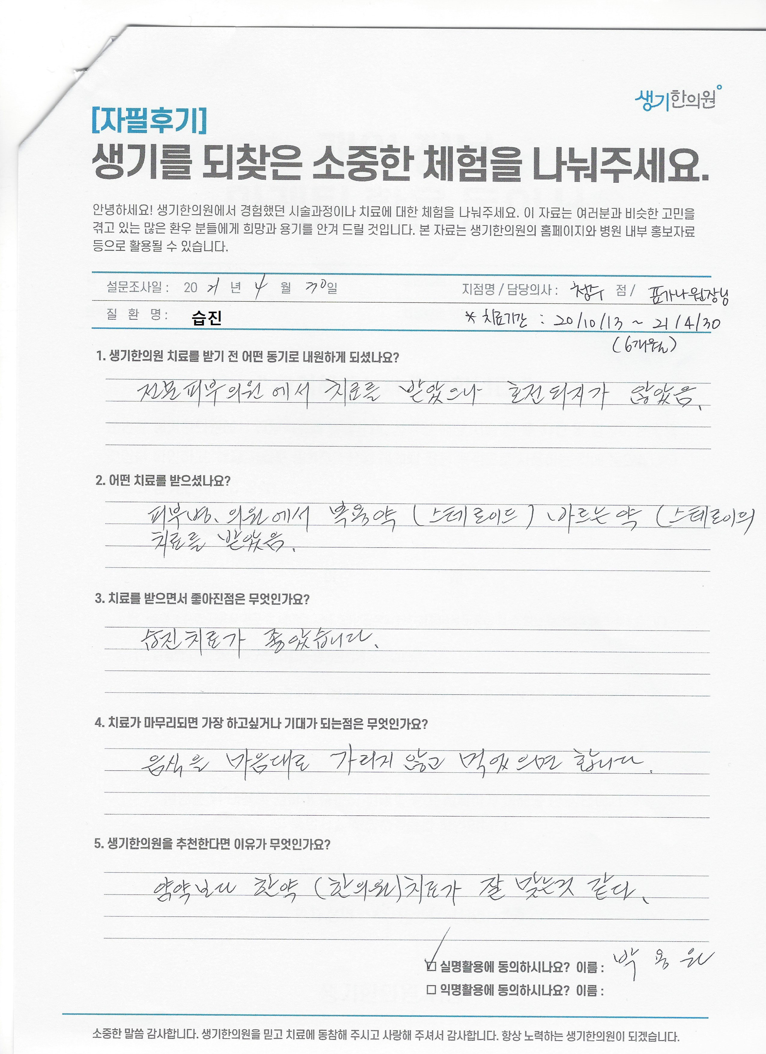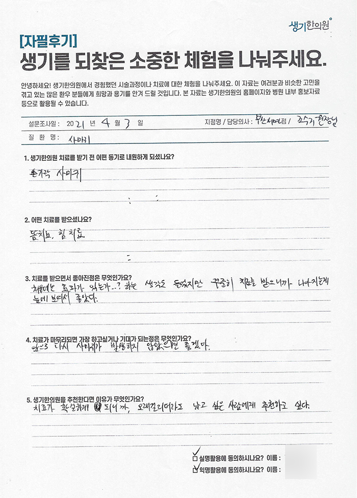 생기한의원과 함께하신 생생한 자필 및 영상 후기를 소개합니다.