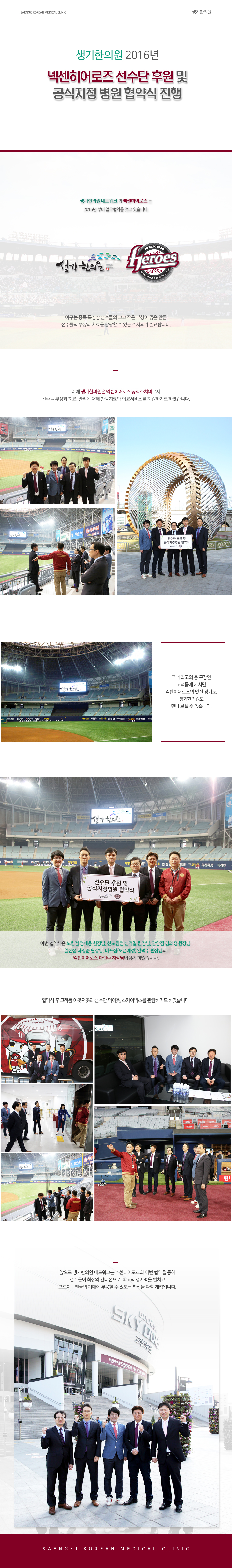 생기한의원, 2016년 넥센히어로즈 선수단 후원 ..