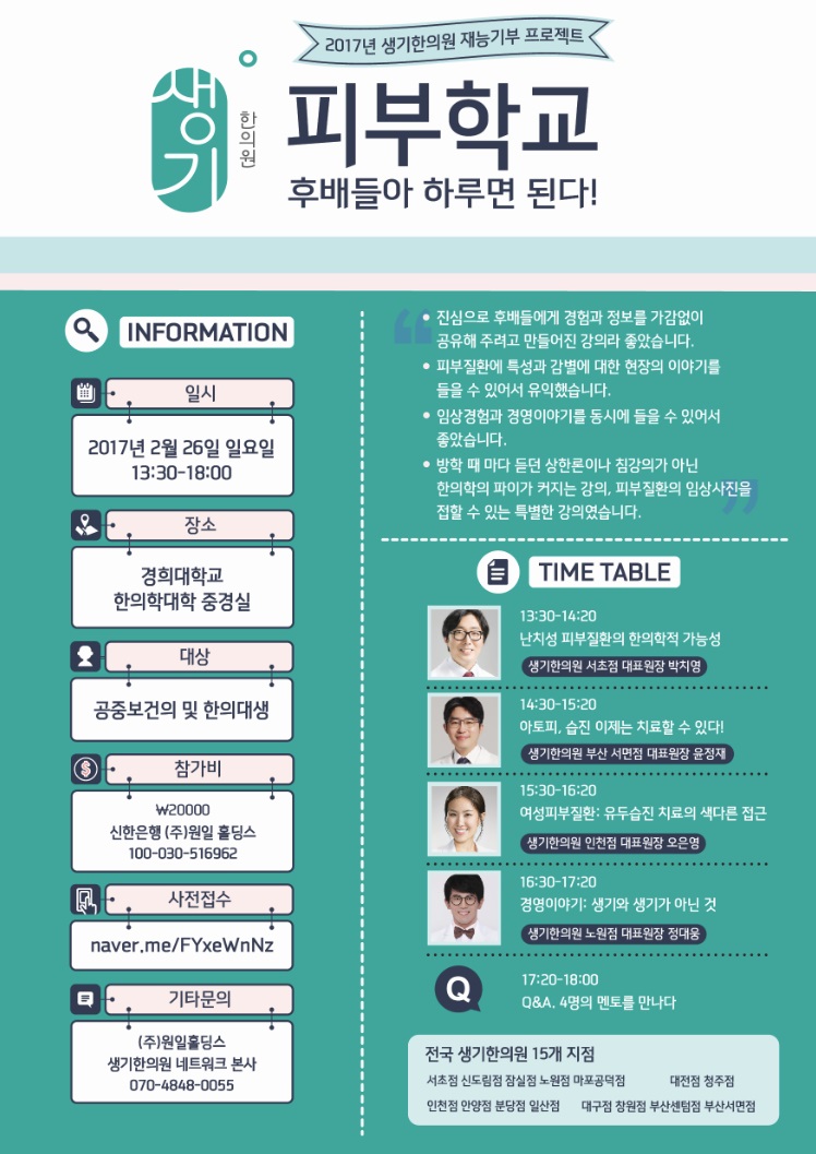 2017년 생기한의원 재능기부 프로젝트 피부학교 ..