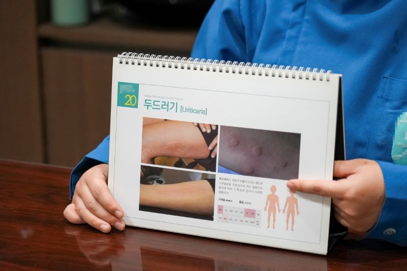 두드러기가 언제, 어떤 상황에서 심해지는지도 꼼꼼하게 여쭤봅니다.